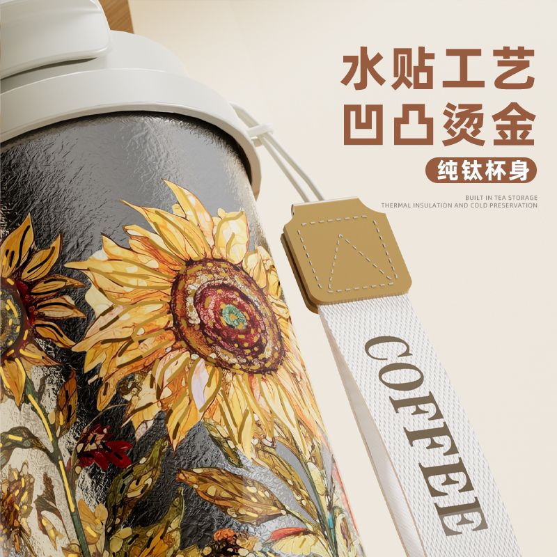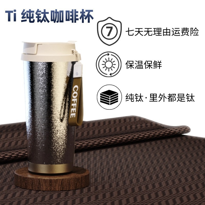 高颜值纯钛咖啡杯女生办公双饮吸管杯男车载保温杯学生礼品商务杯
