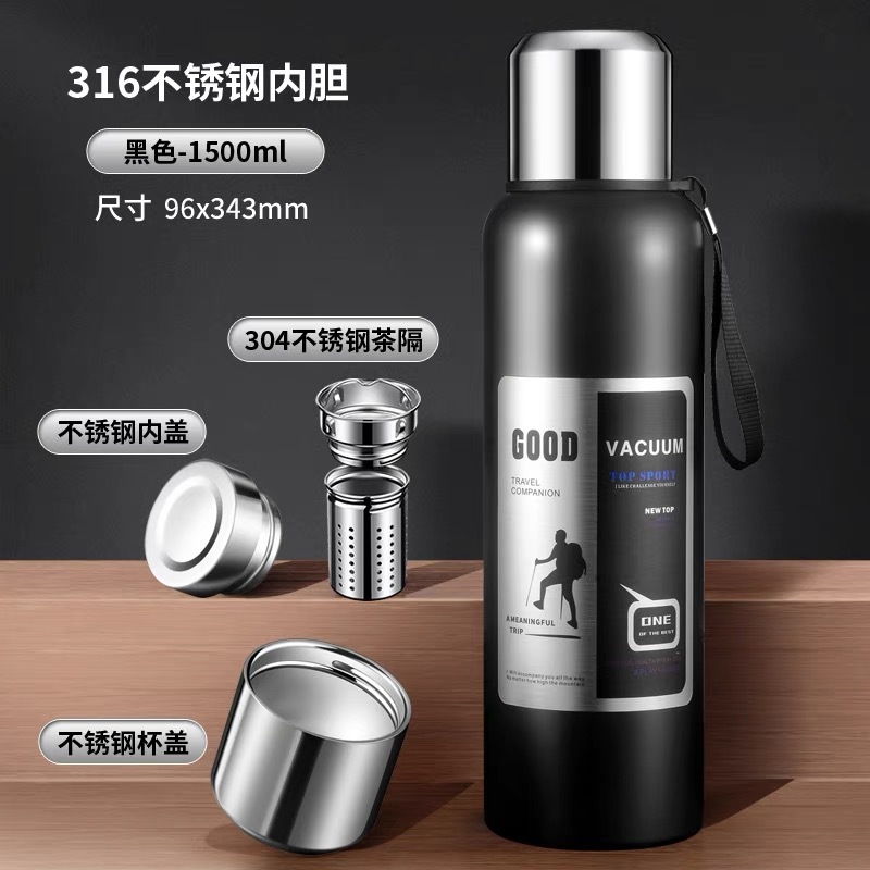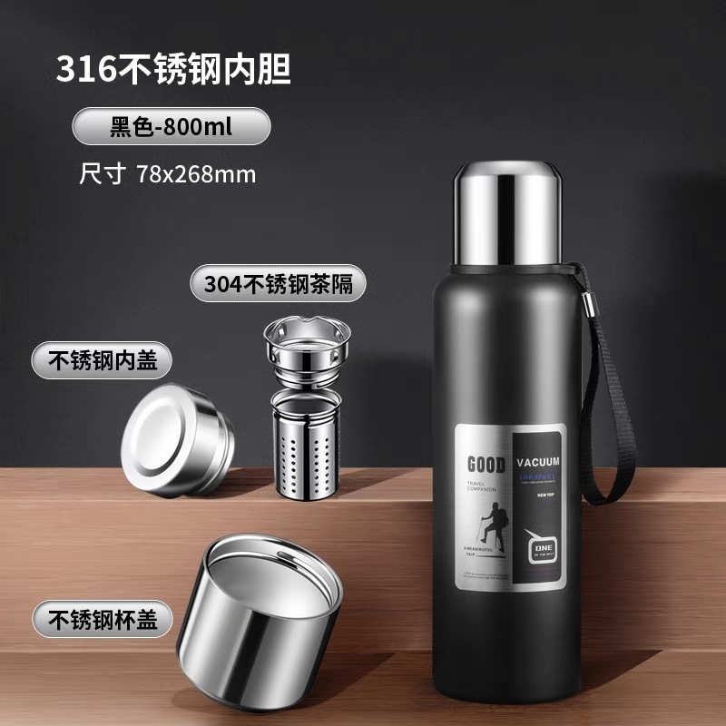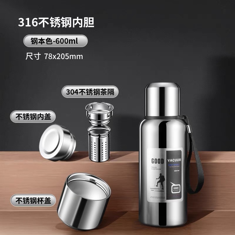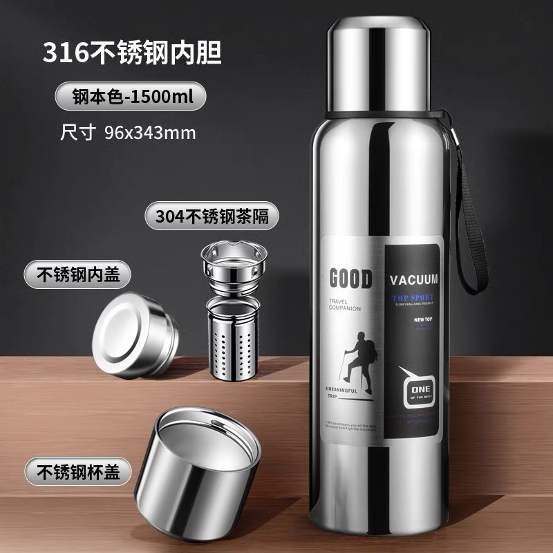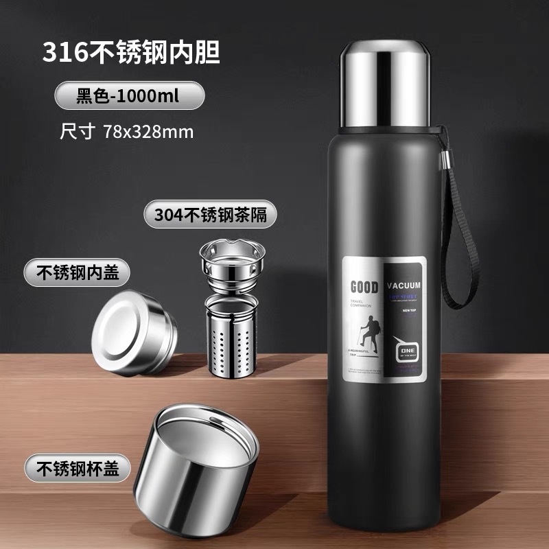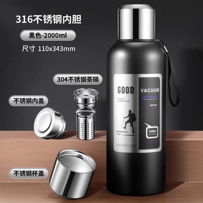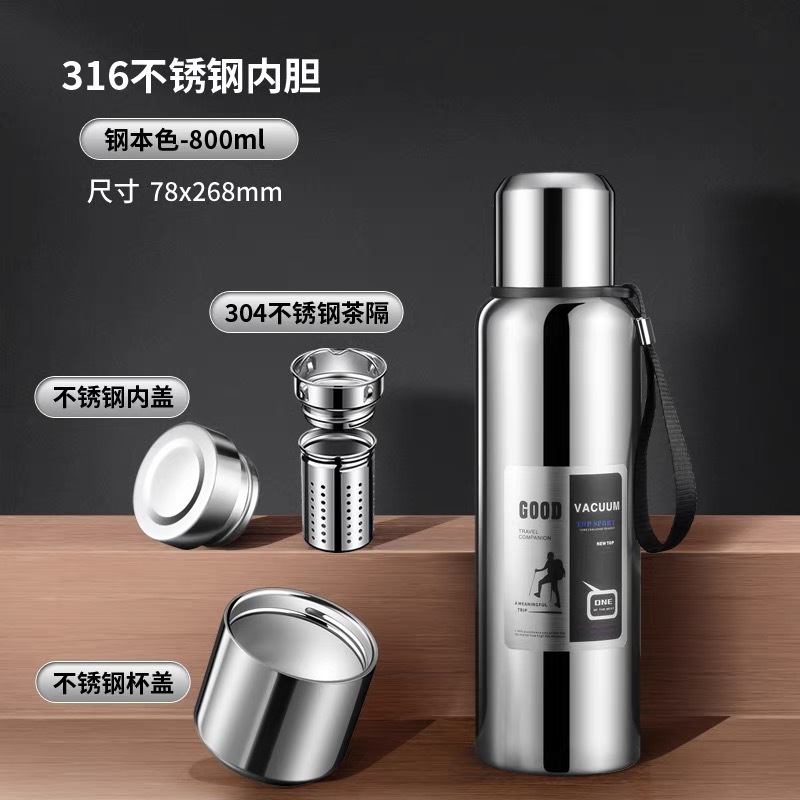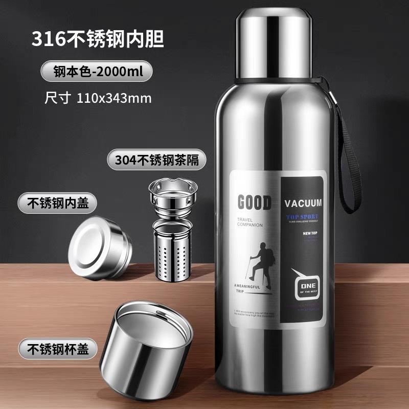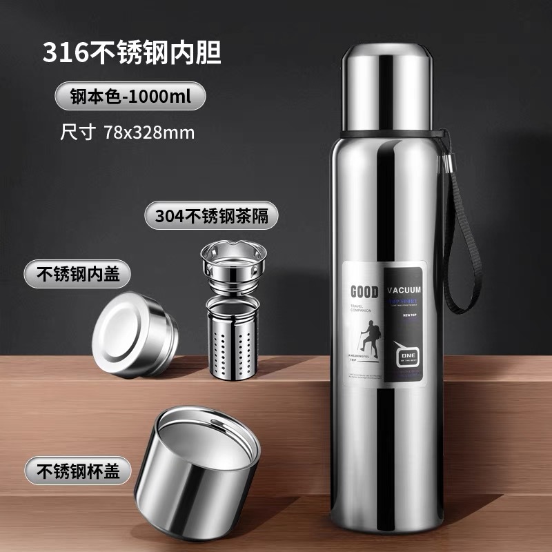 大容量全钢保温杯316不锈钢户外运动便携真空水壶茶水分离保温壶