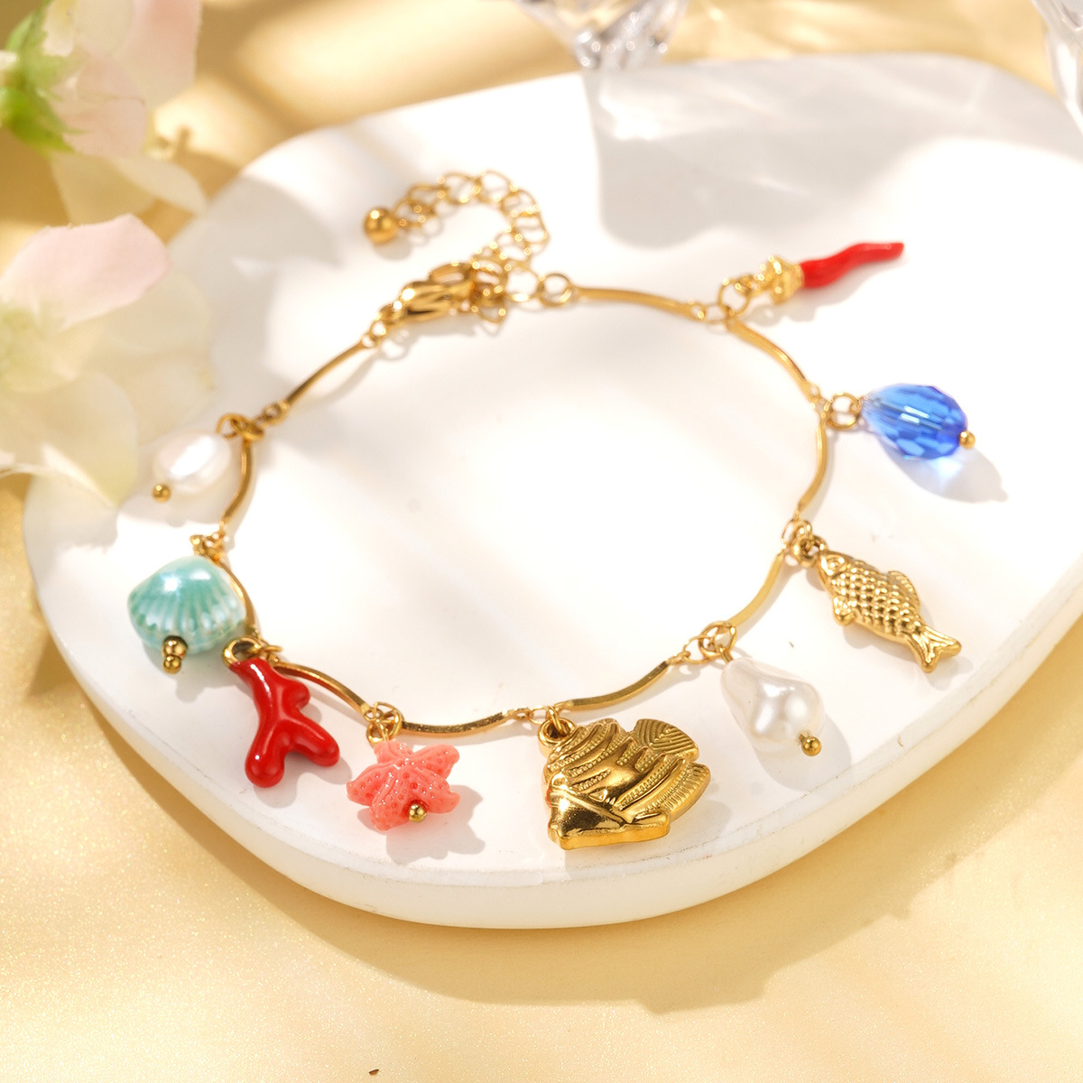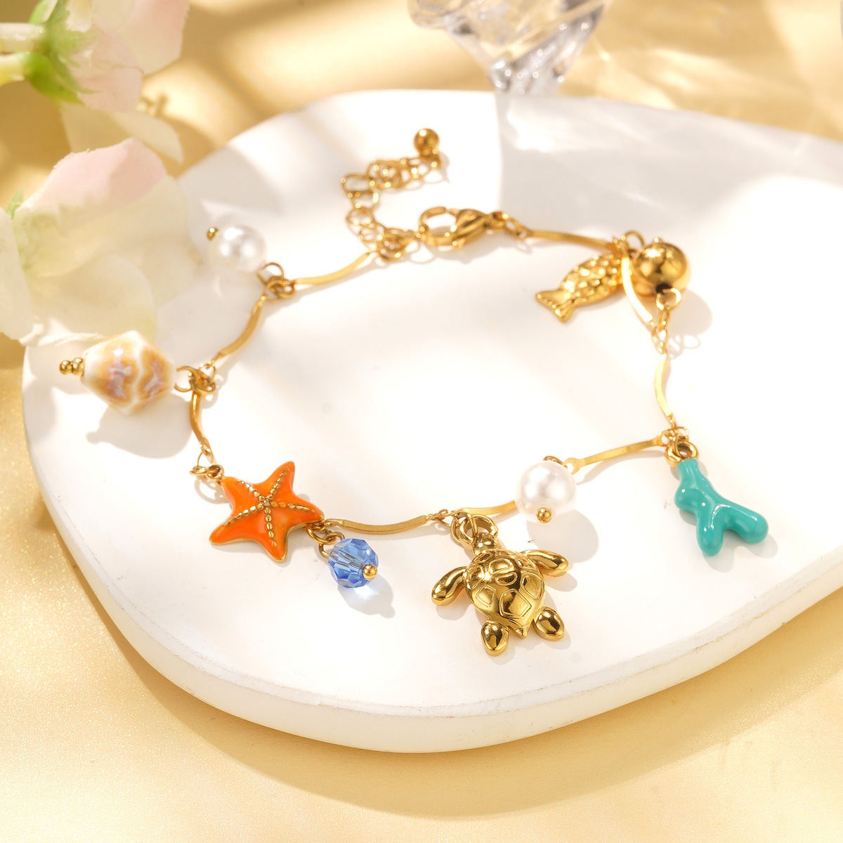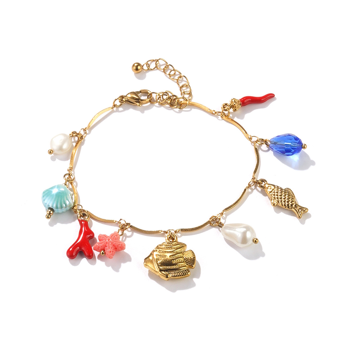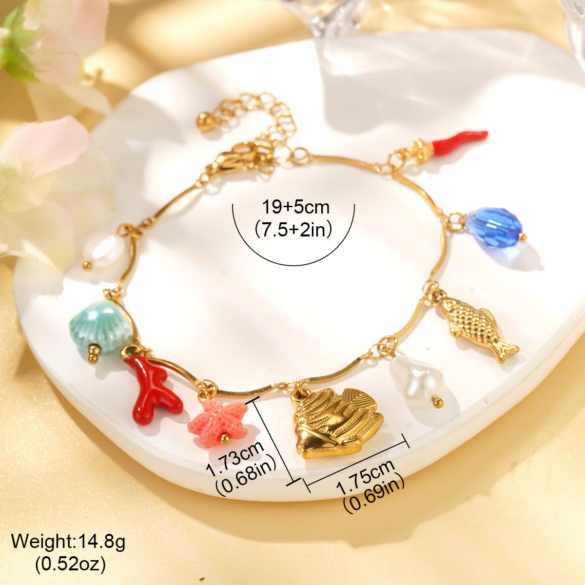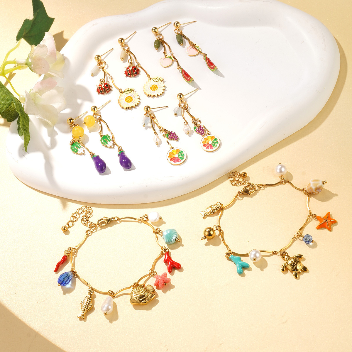 欧美跨境不锈钢甜美波西米亚手链耳环串珠链瓢虫水果海洋珍珠饰品