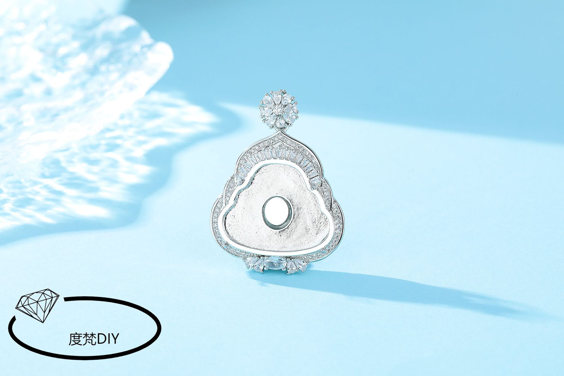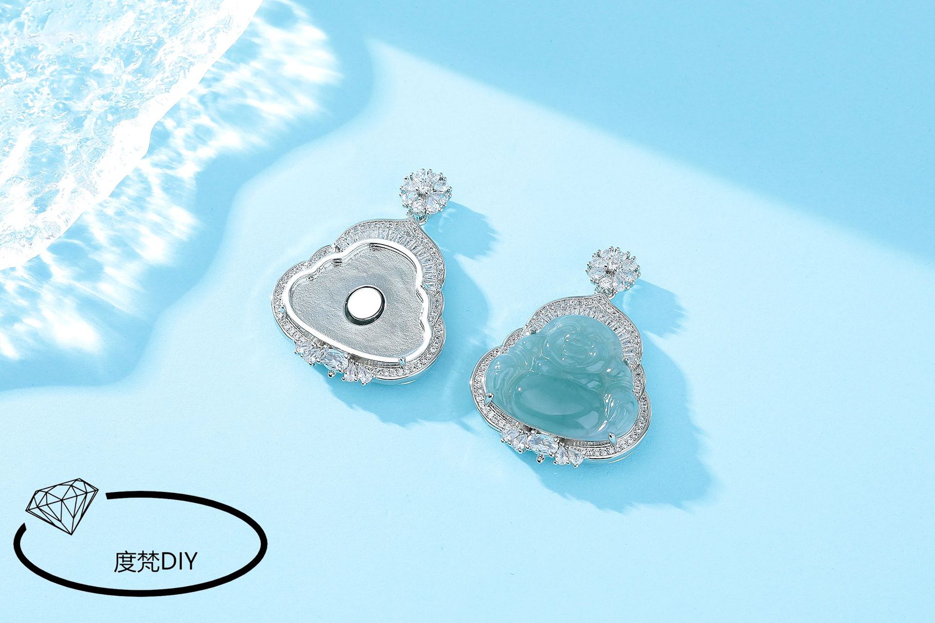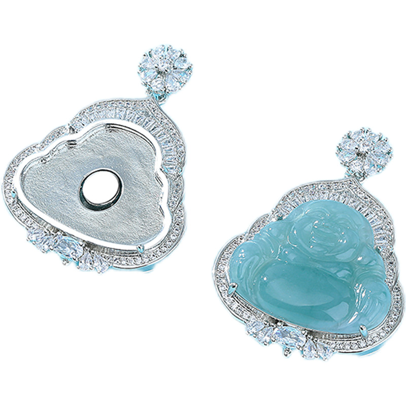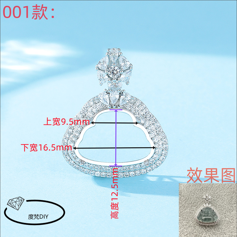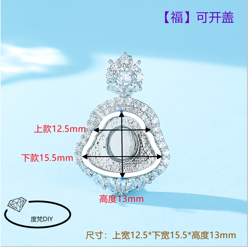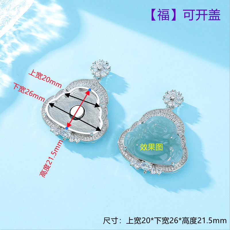 铜925封底开盖款满钻豪华未镶嵌翡翠危料小佛公吊坠空托diy玉石