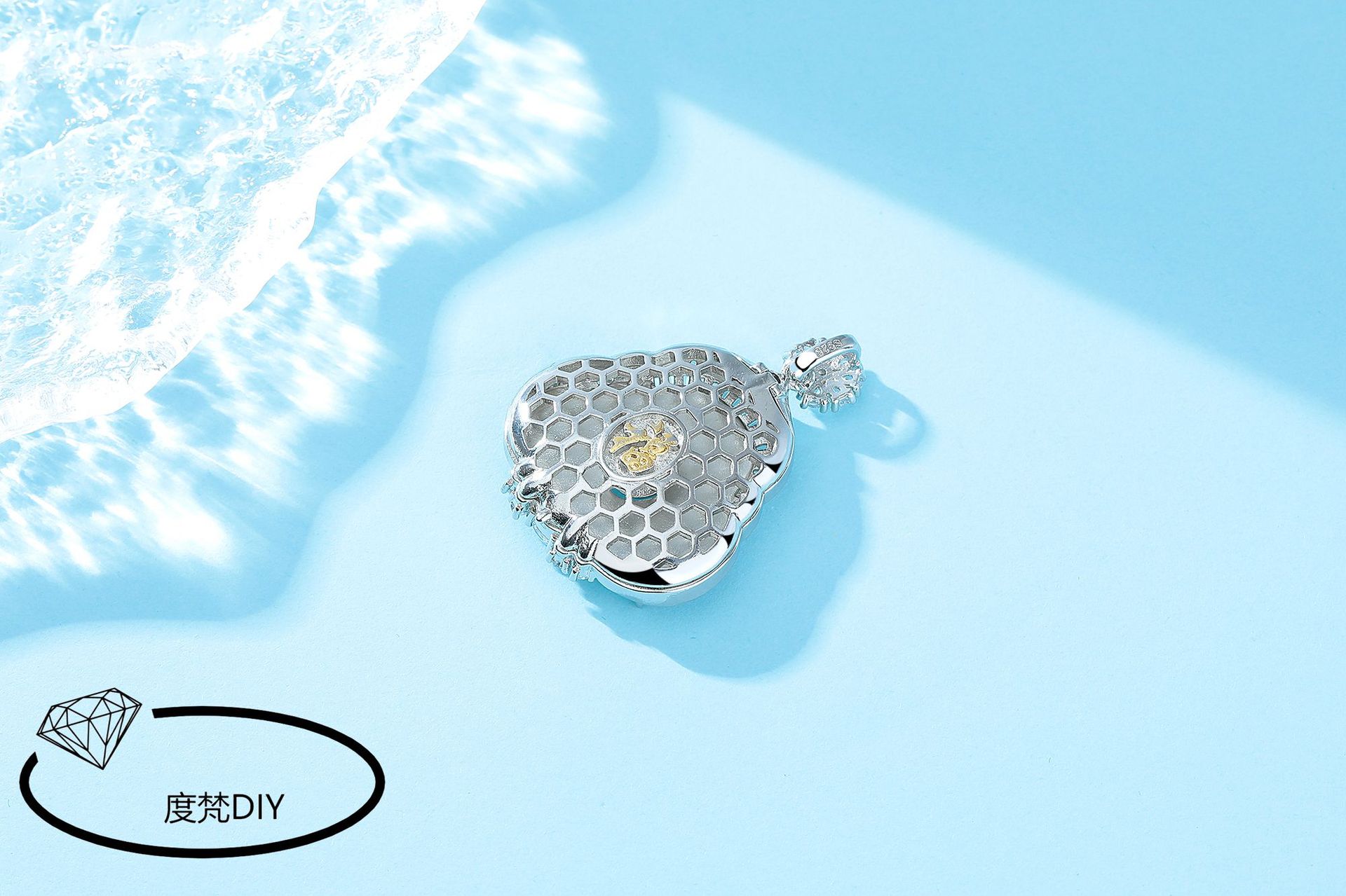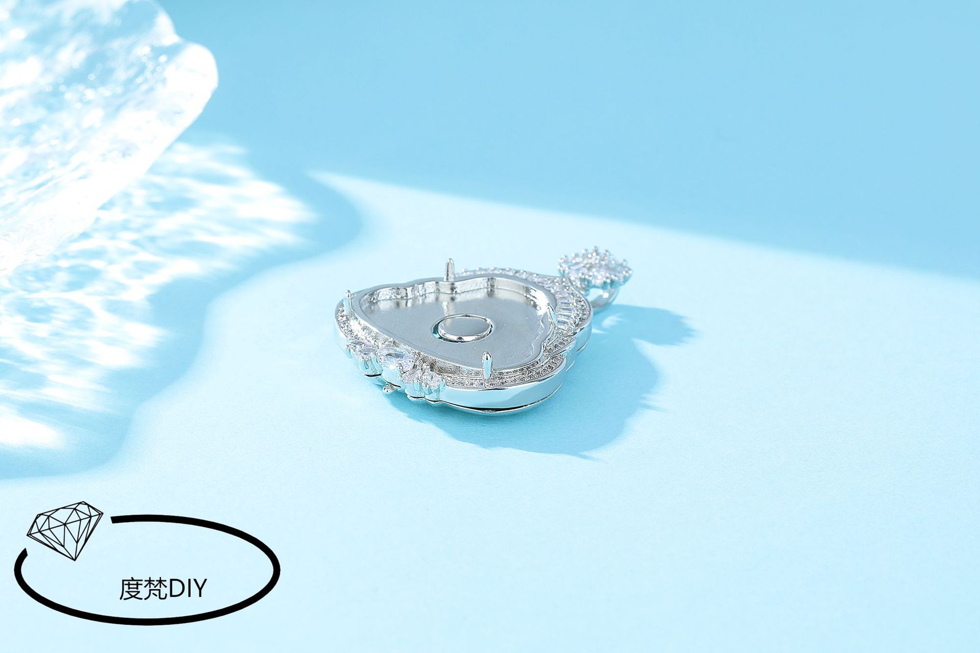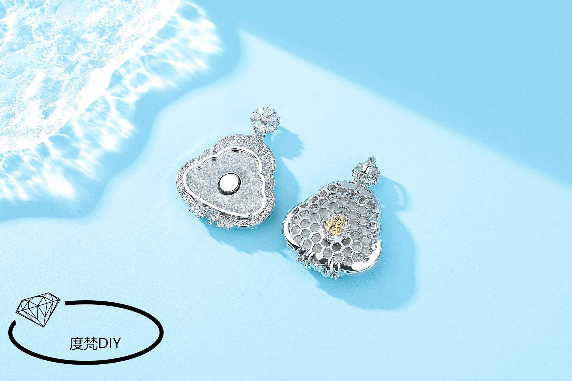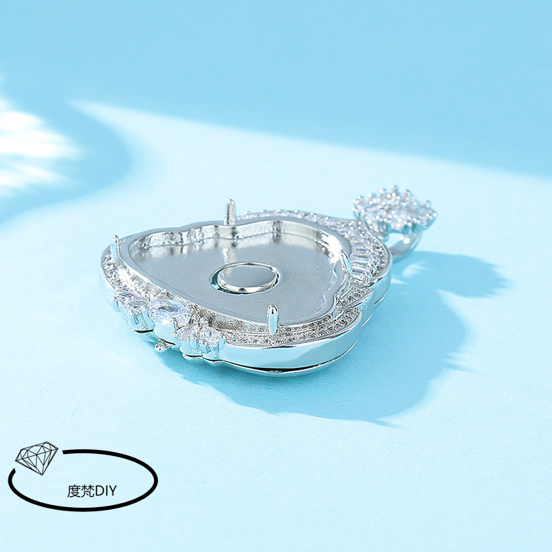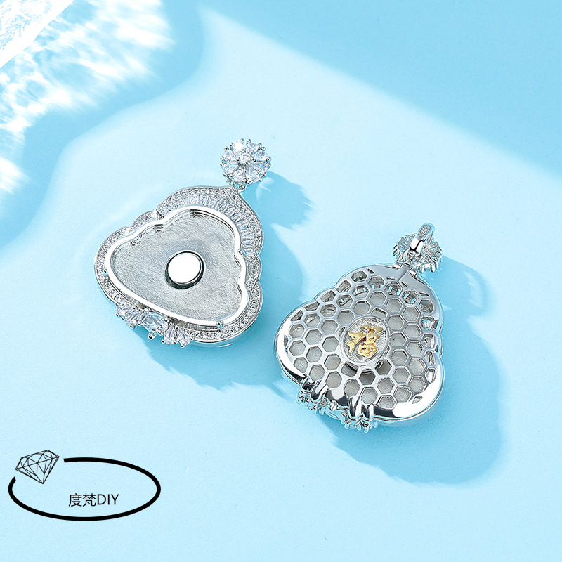铜925封底开盖款满钻豪华未镶嵌翡翠危料小佛公吊坠空托diy玉石