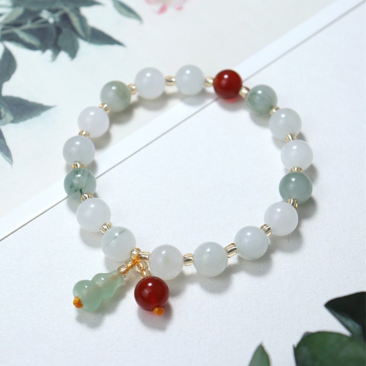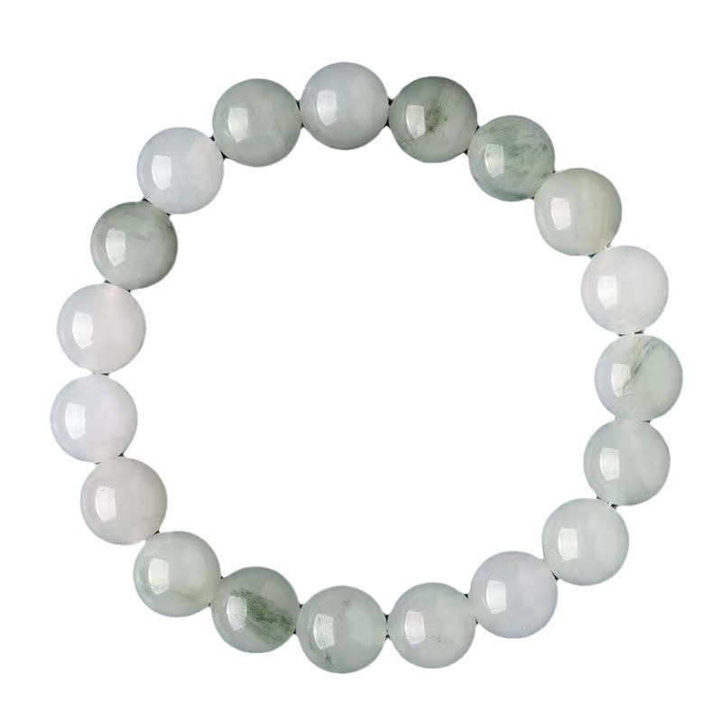 天山翠手串 翡翠色玉石手链金丝玉白玉圆珠飘花带翠绿珠子玉手链