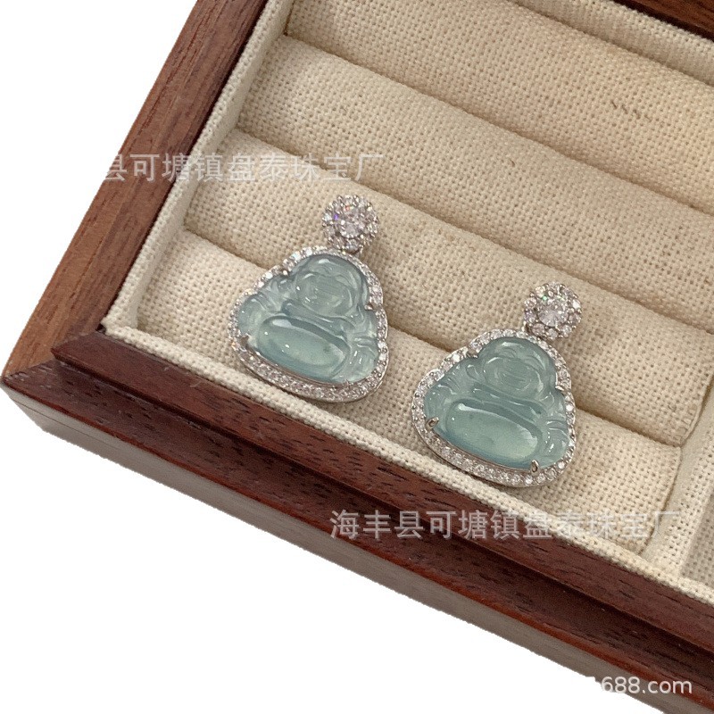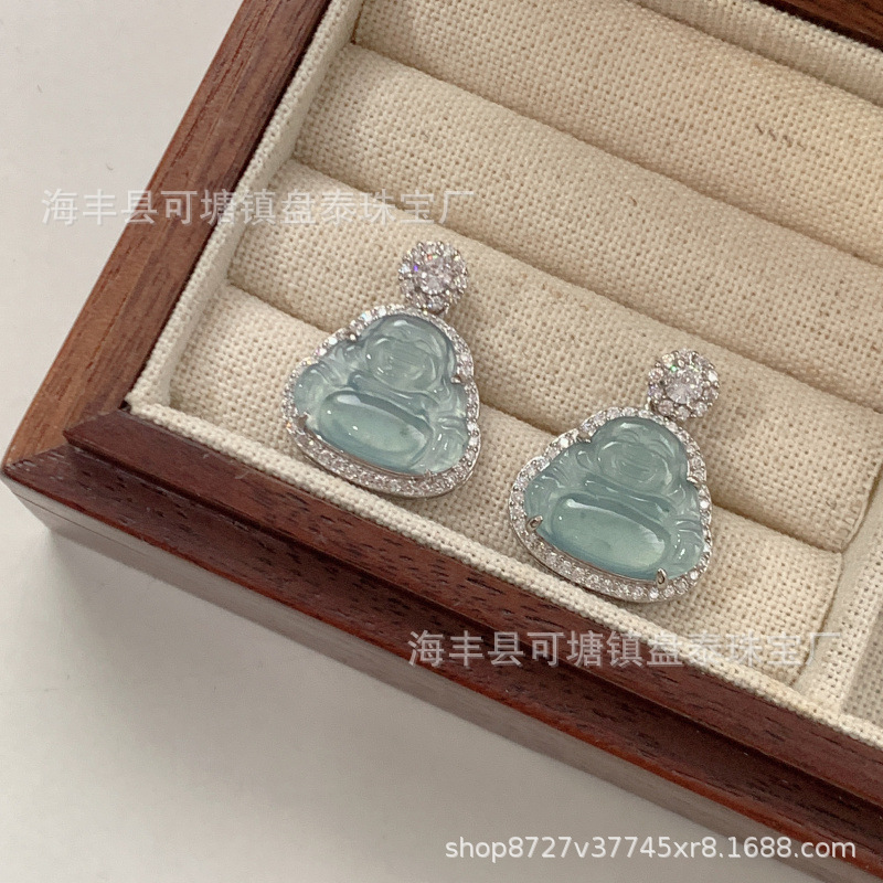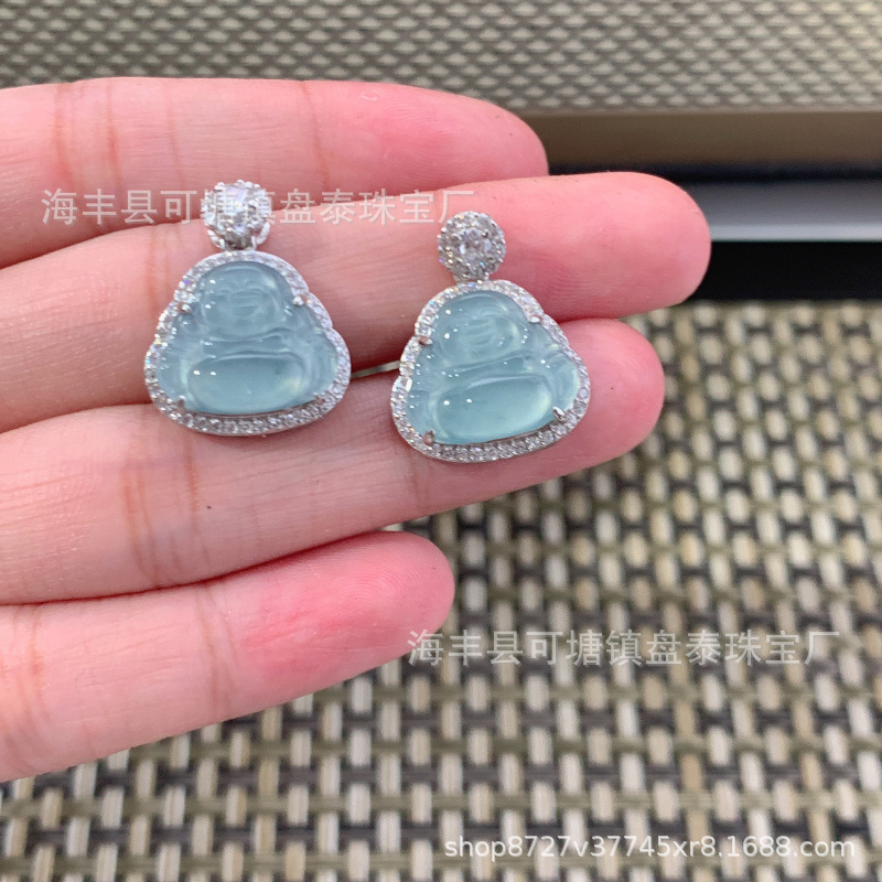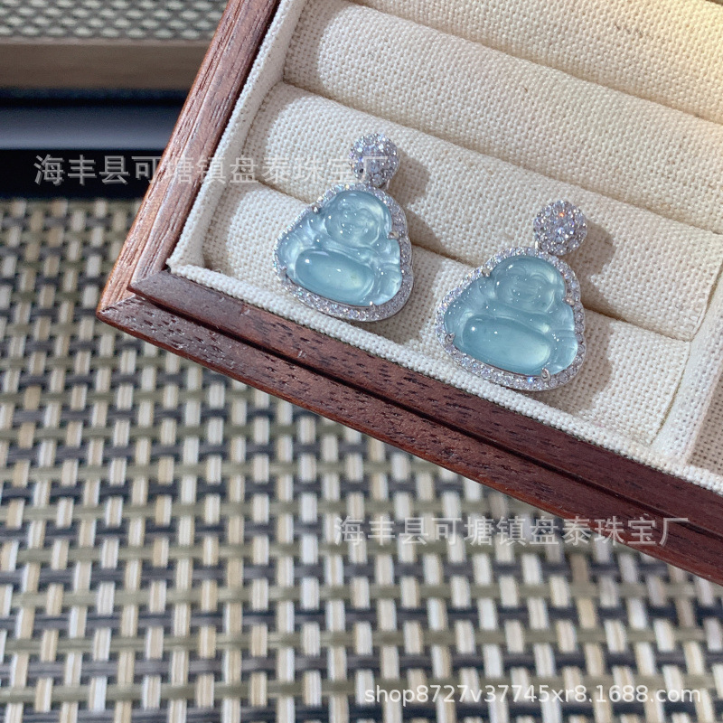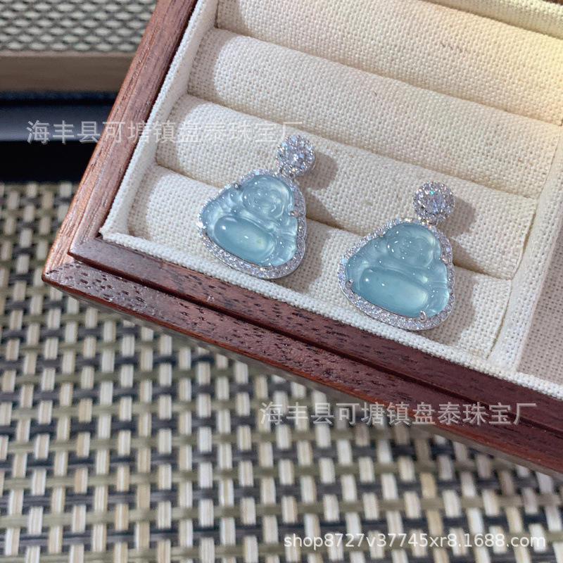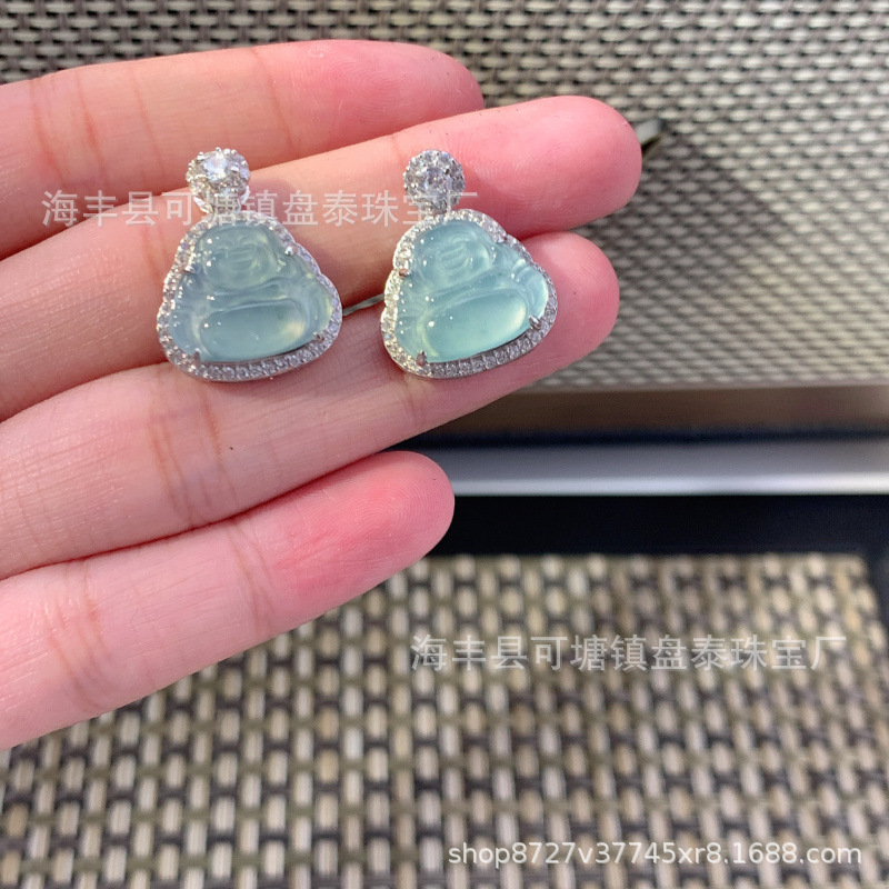 厂家批发 天然危料蓝水翡翠佛公吊坠 S925银镶嵌