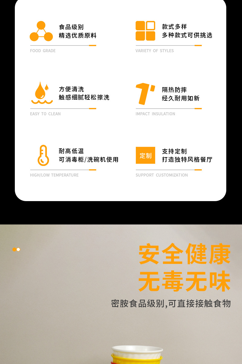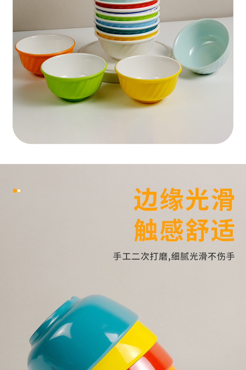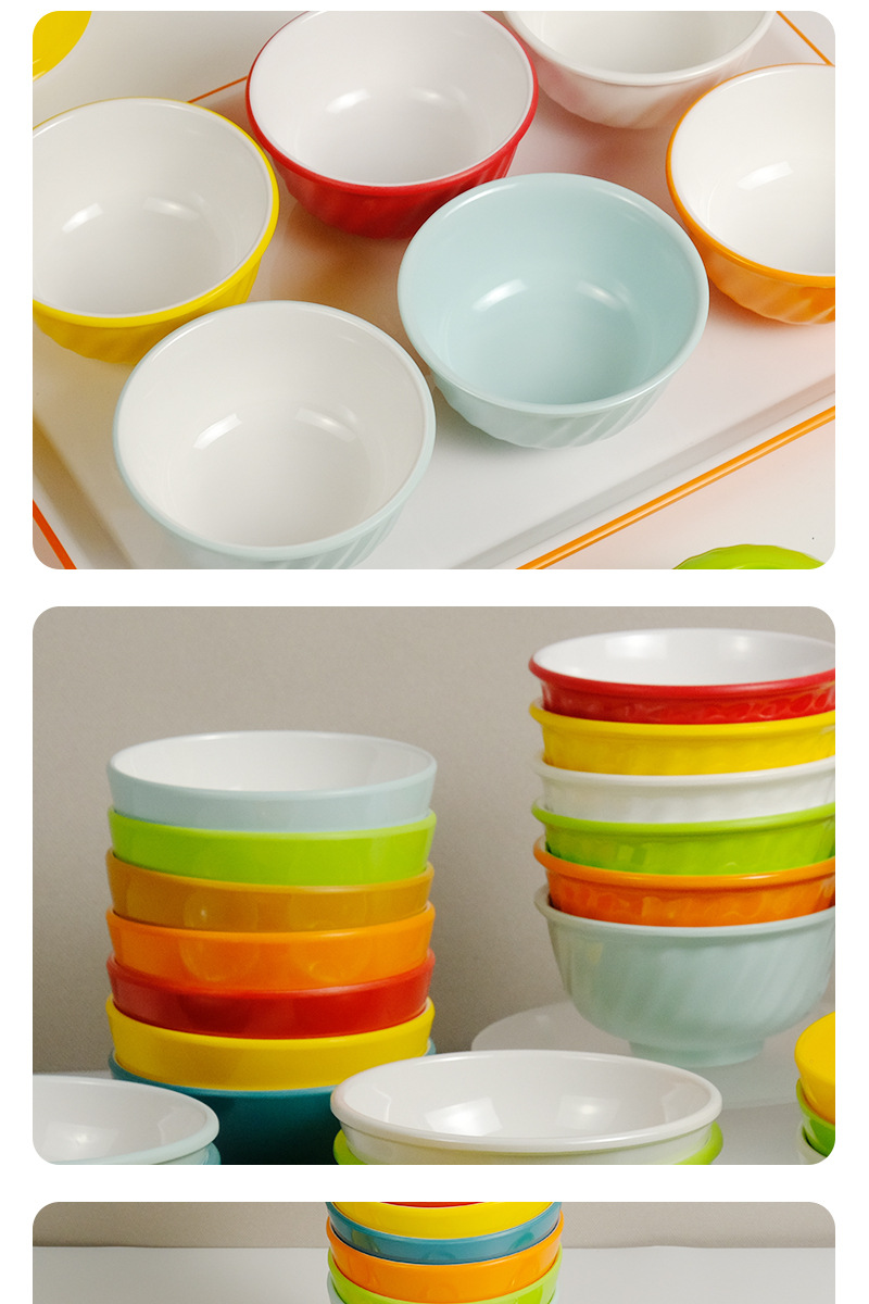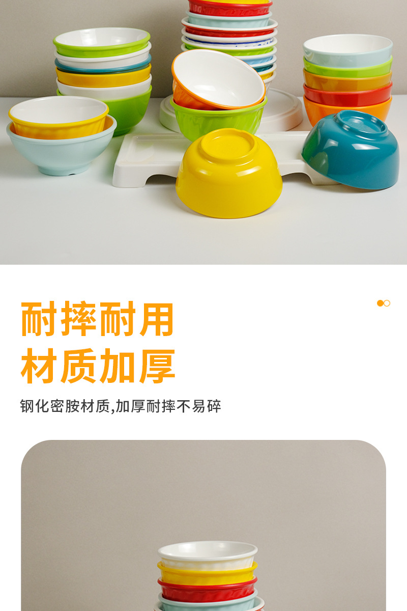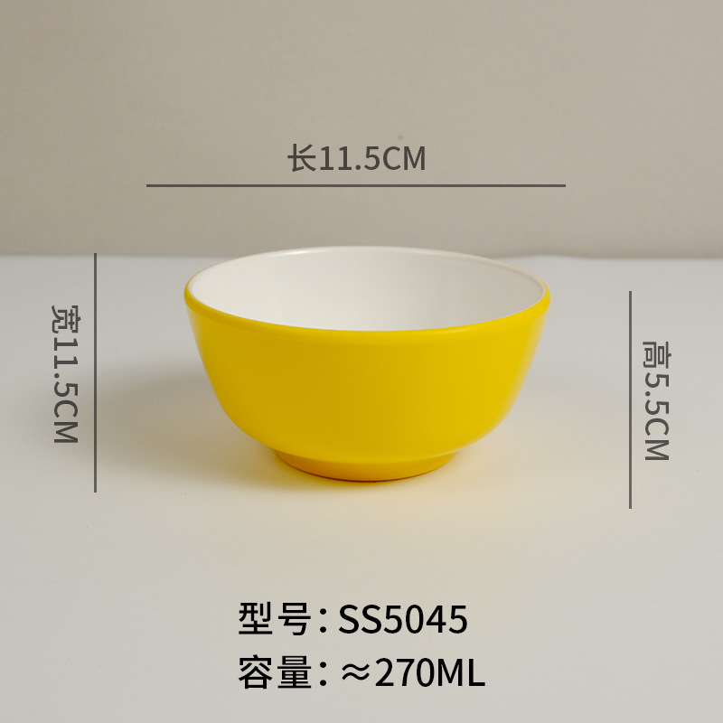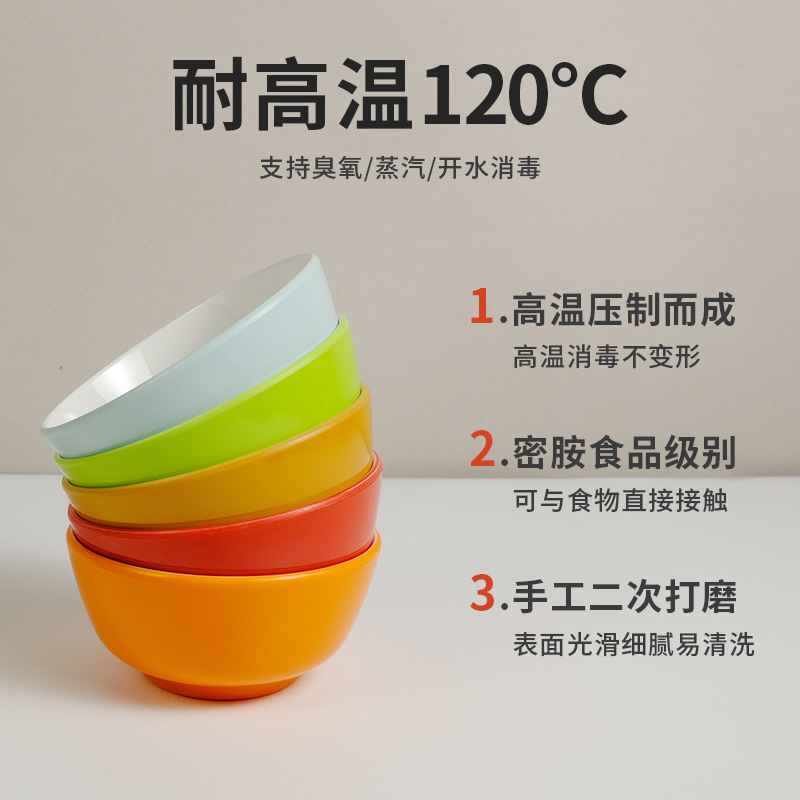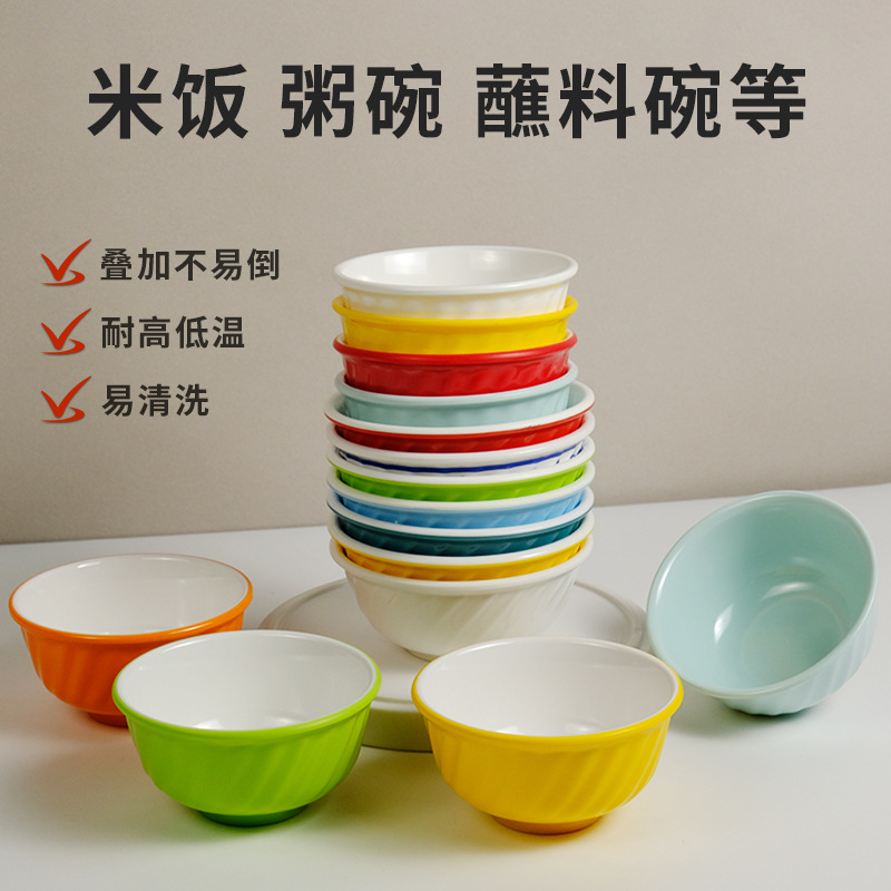 A5密胺工厂食堂小碗饭碗双色快餐米饭碗商用仿瓷塑料汤碗团餐粥碗