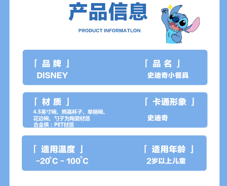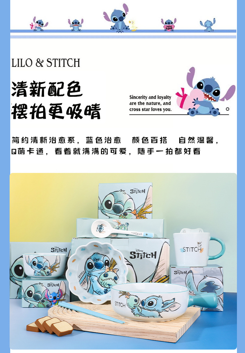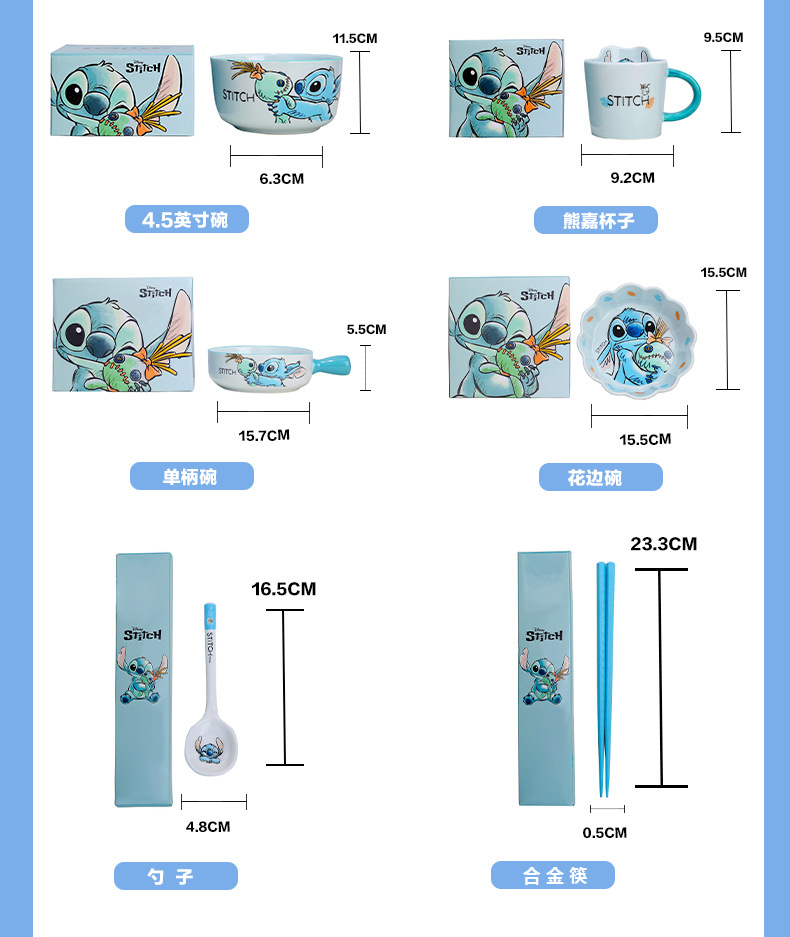 史迪奇餐具礼盒陶瓷餐具 手柄碗汤碗勺子筷子礼盒送礼新品批发