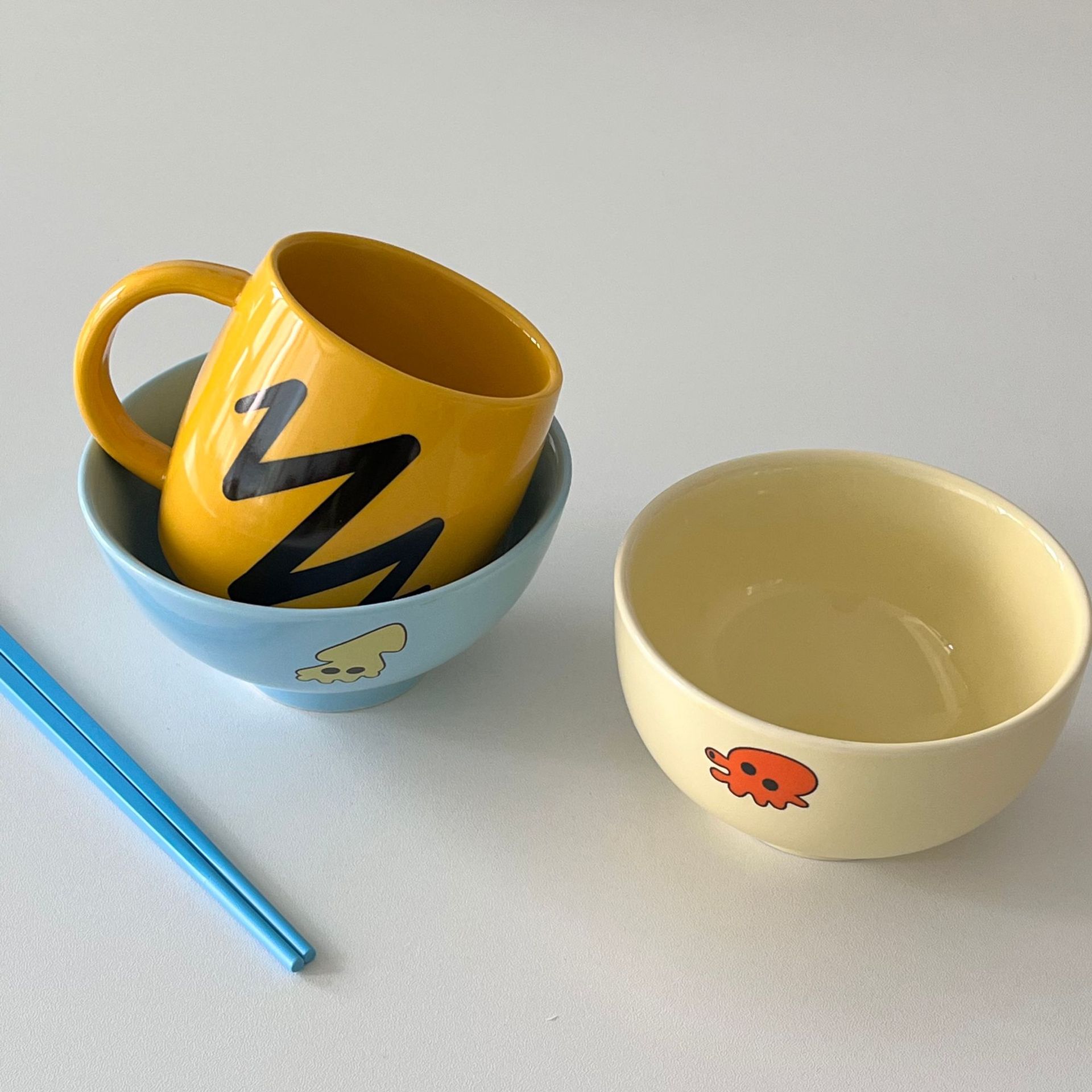 卡通动漫韩国餐具礼盒同款高颜值陶瓷马杯子饭碗盘子可爱礼物套装