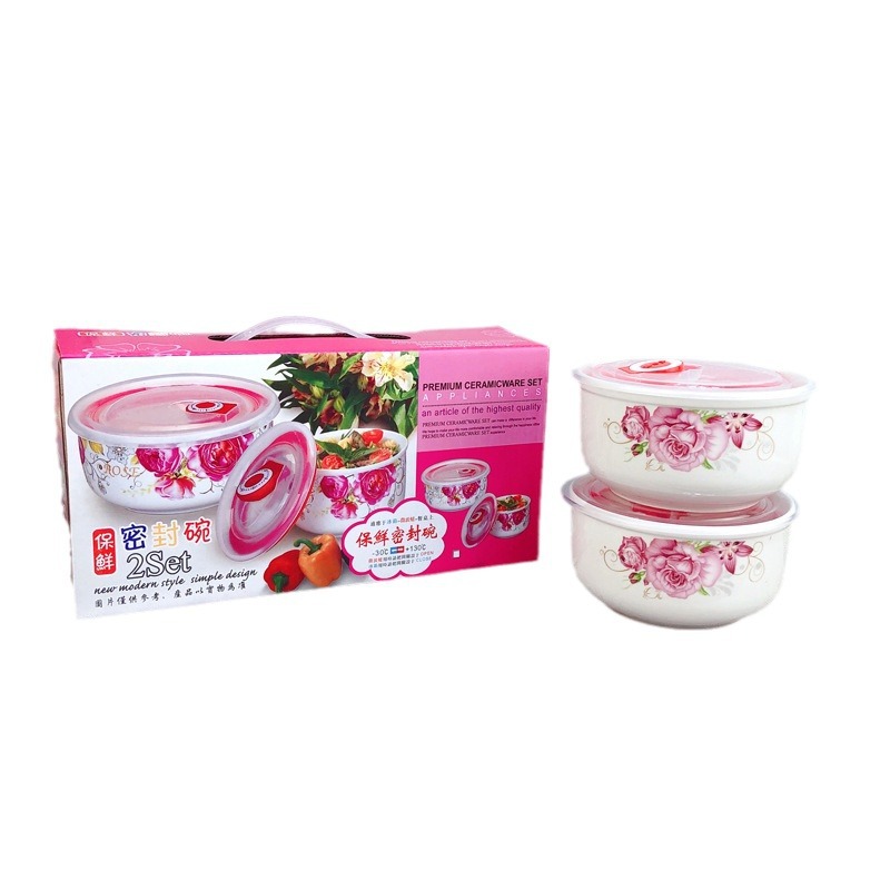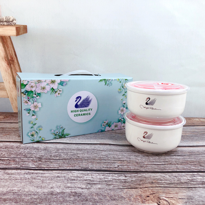 陶瓷保鲜碗二件套密封碗微波炉碗带盖伴手礼开业礼品批发可印LOGO