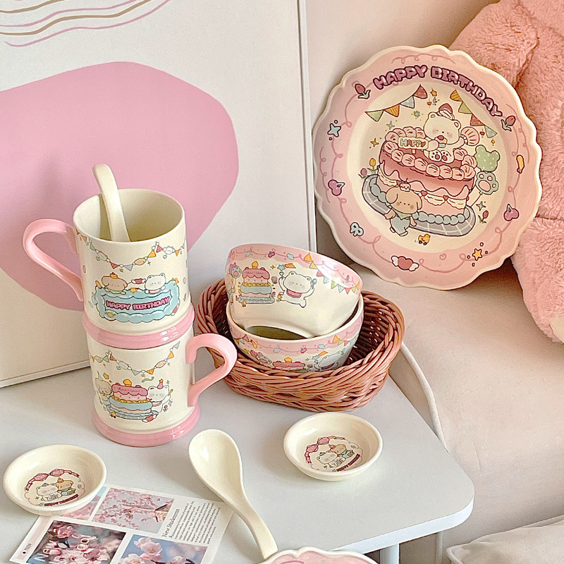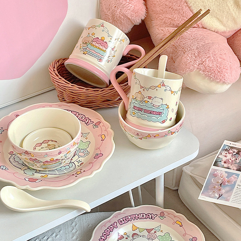 生日小熊女生萌趣陶瓷碗餐具毕业礼品水杯送闺蜜实用伴手礼碗盘