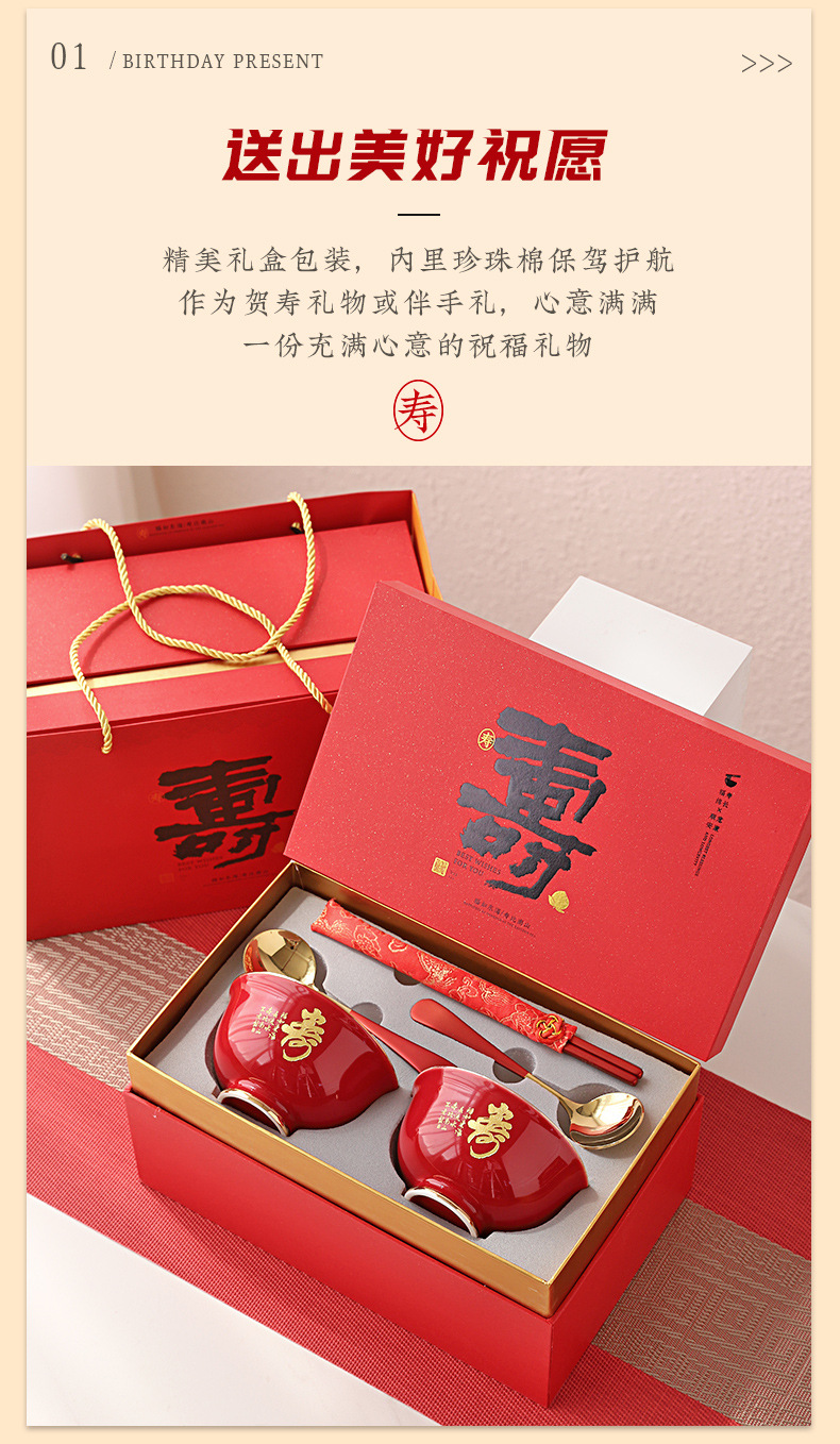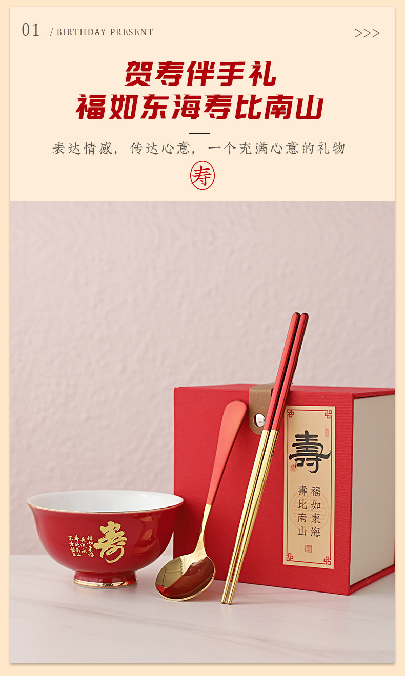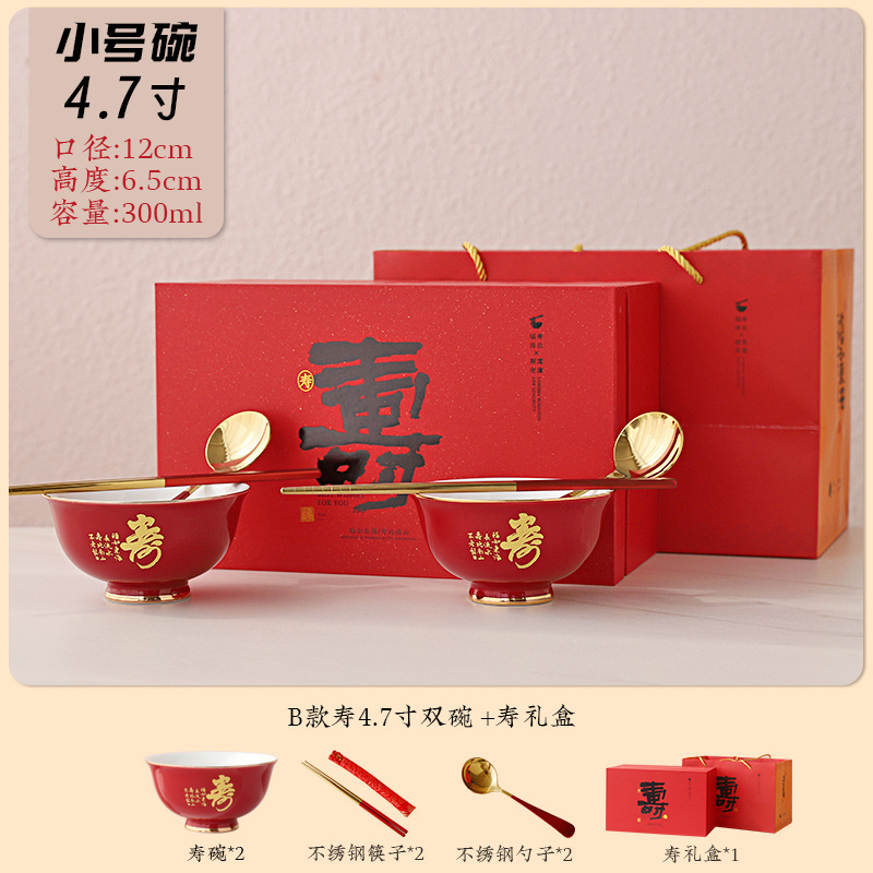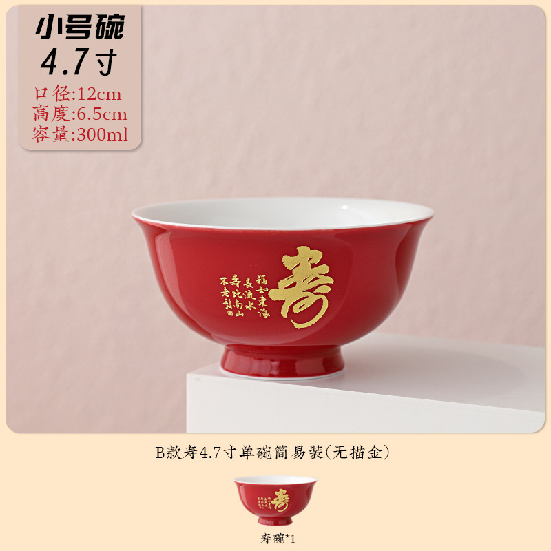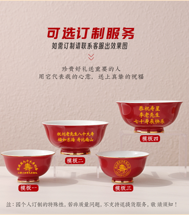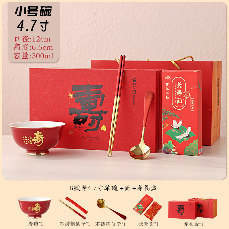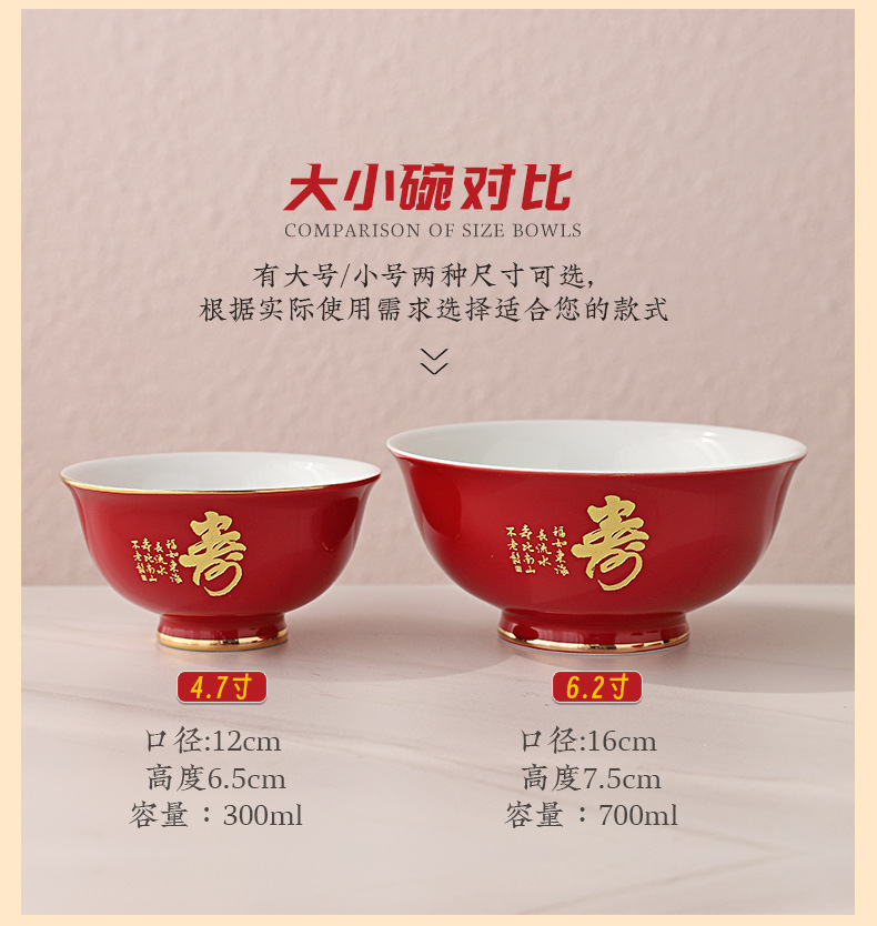 寿碗大小号长寿面碗礼品碗高档陶瓷红碗套装送老人生日寿宴伴手礼