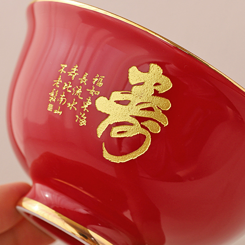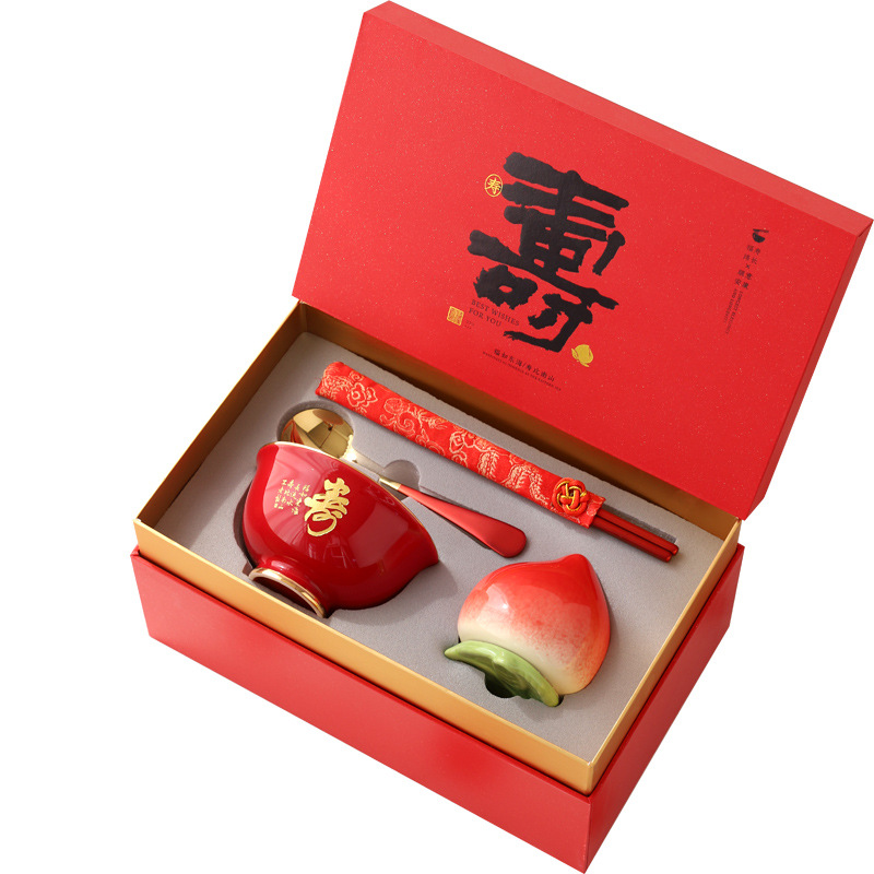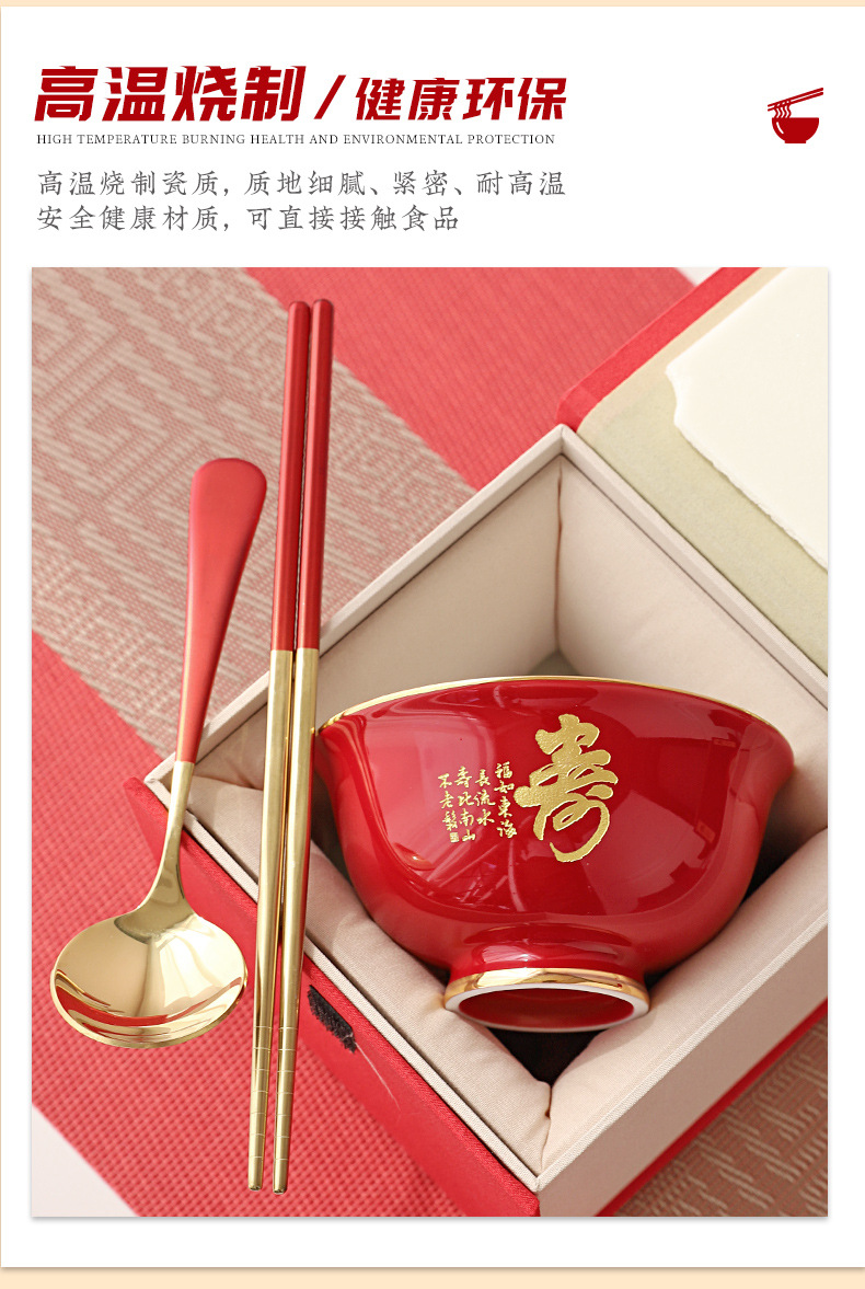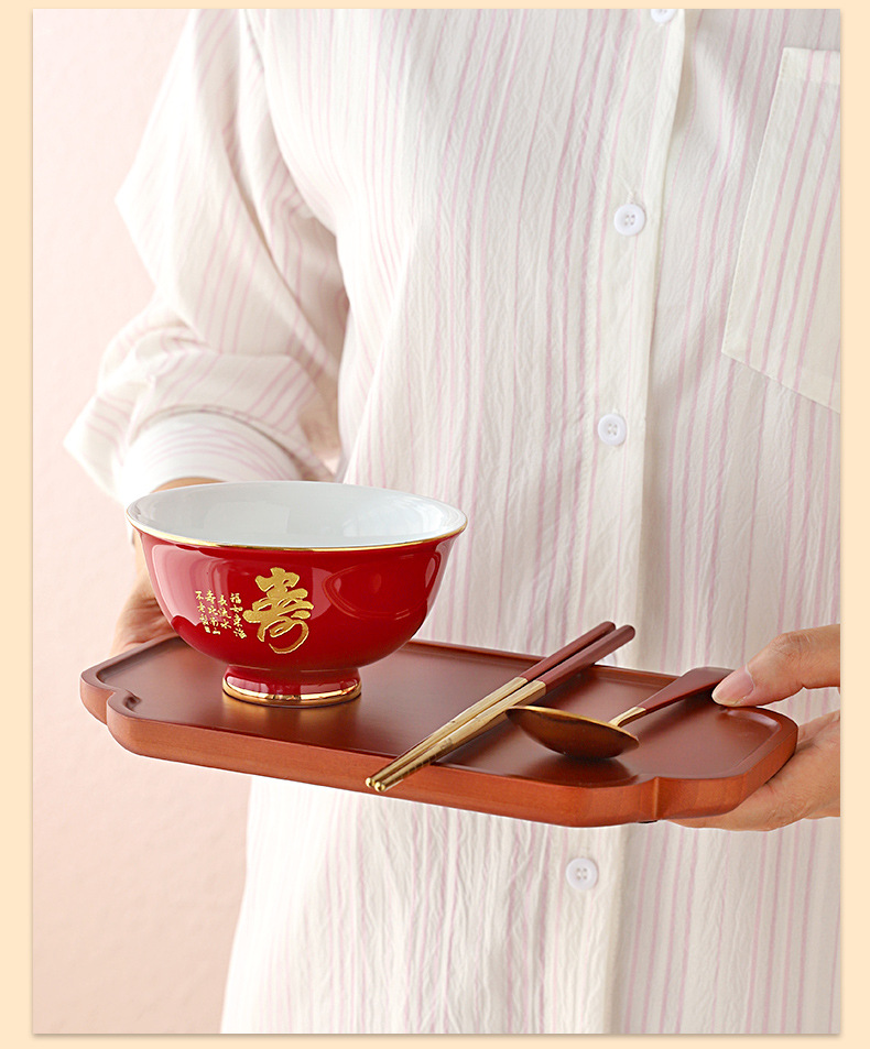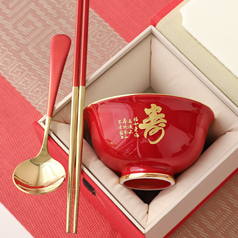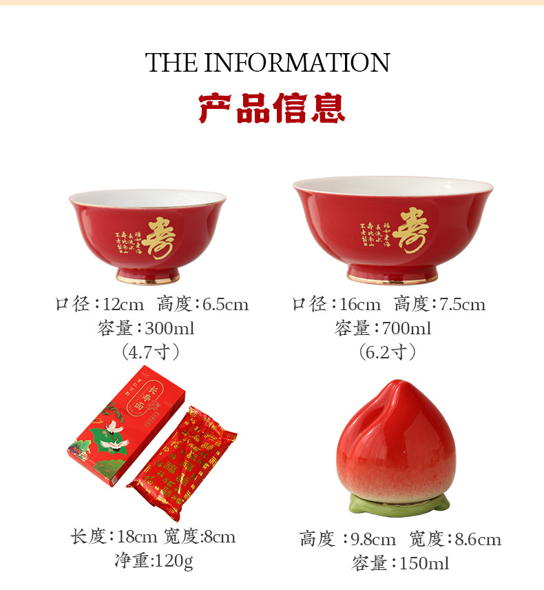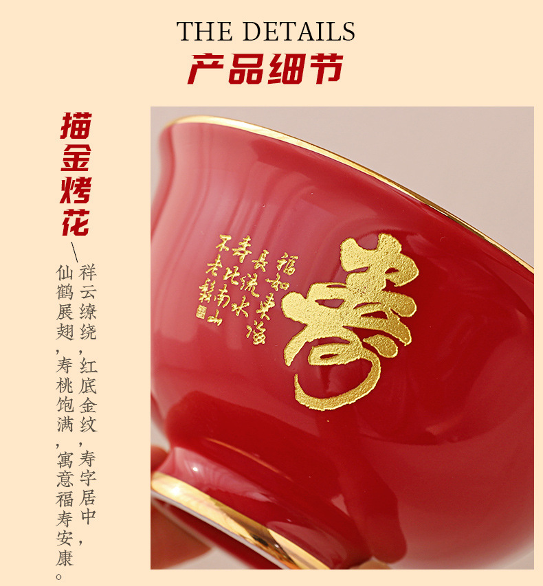 寿碗大小号长寿面碗礼品碗高档陶瓷红碗套装送老人生日寿宴伴手礼