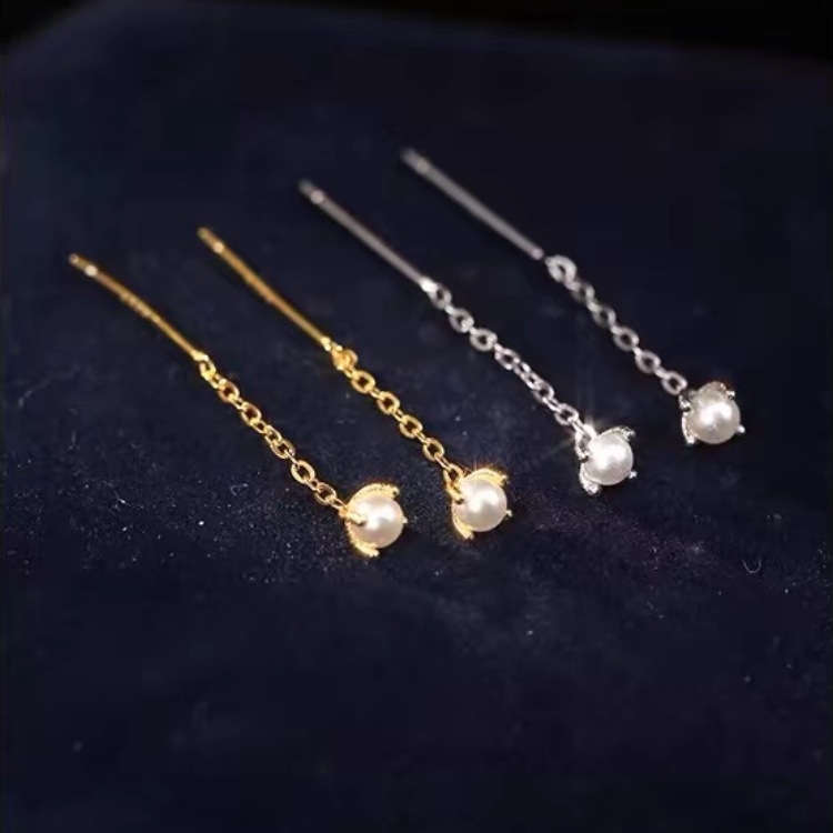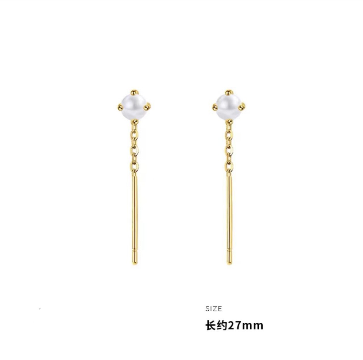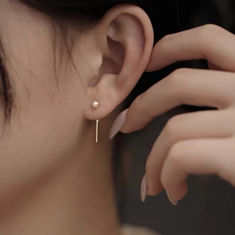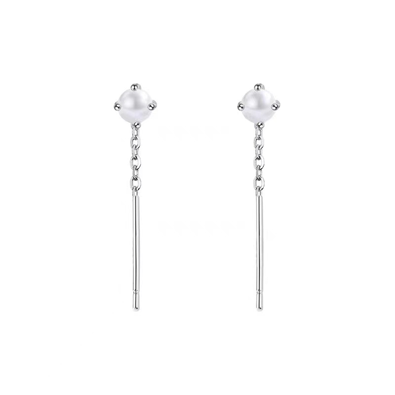 925纯银针贝珠耳线女耳钉耳环耳饰小众设计ins风网红简约个性
