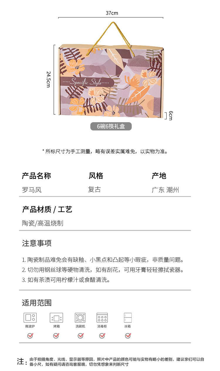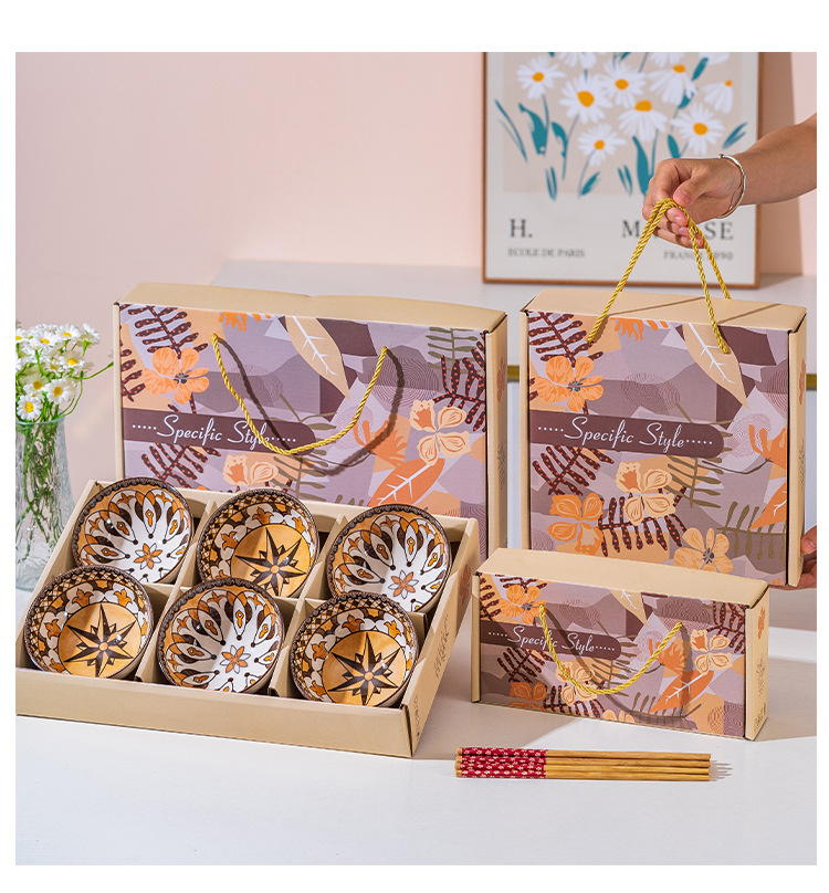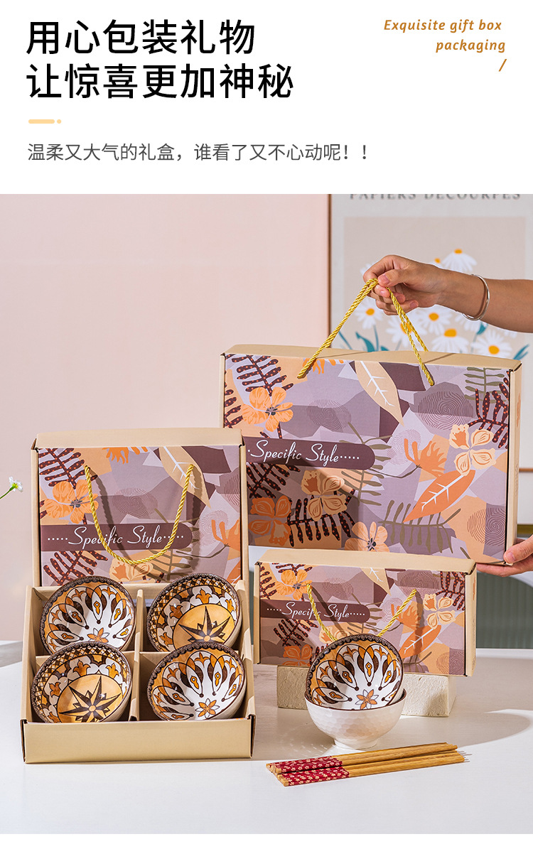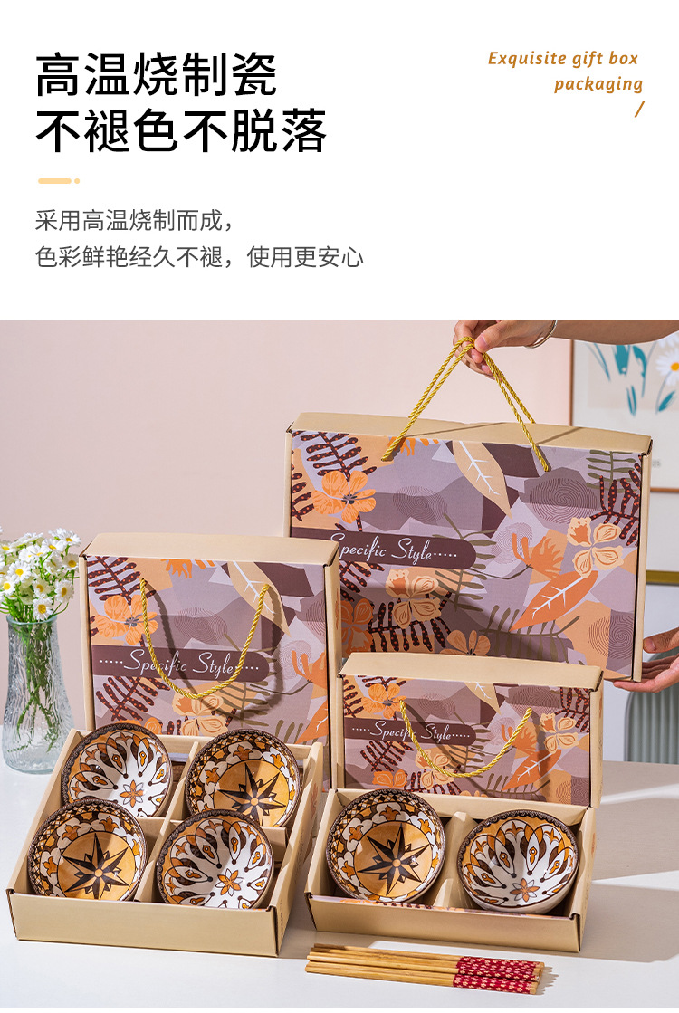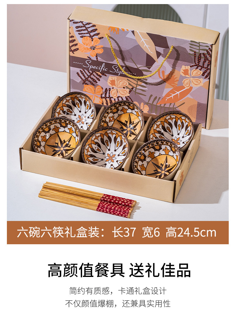 跨境北欧罗马风碗筷套装家用米饭碗套碗餐具伴手礼活动小礼品碗具