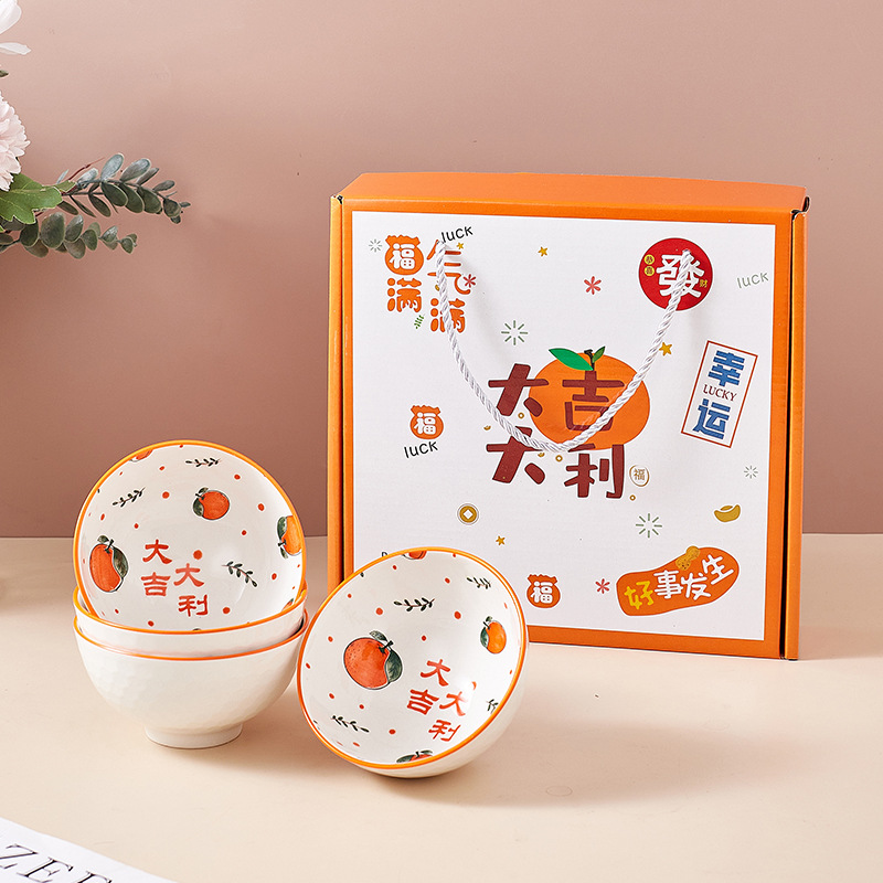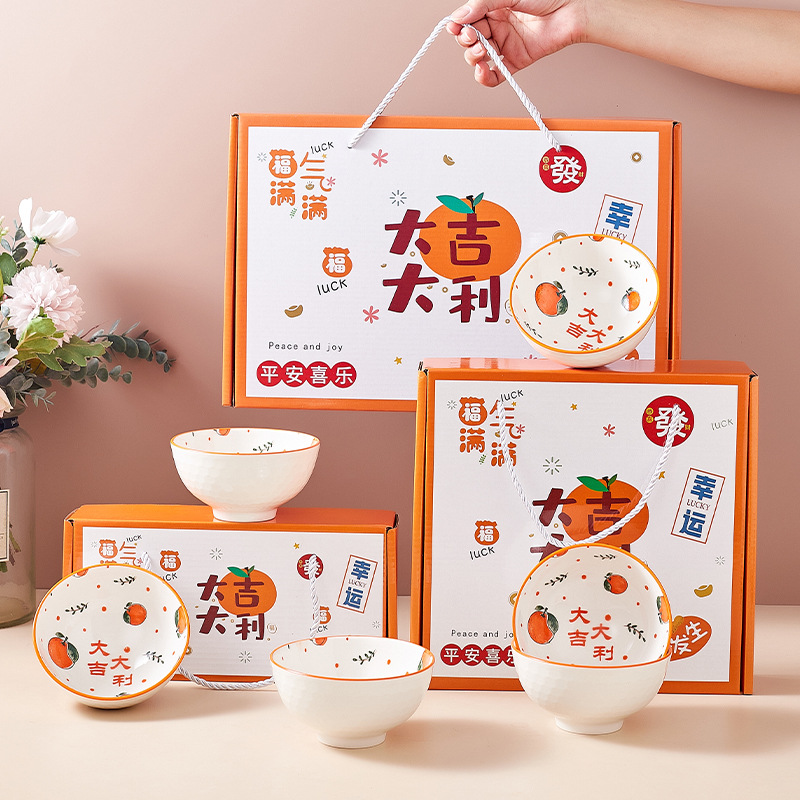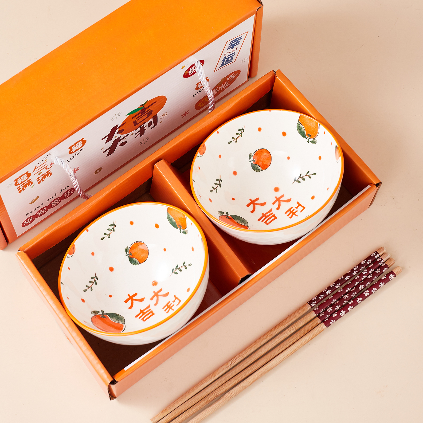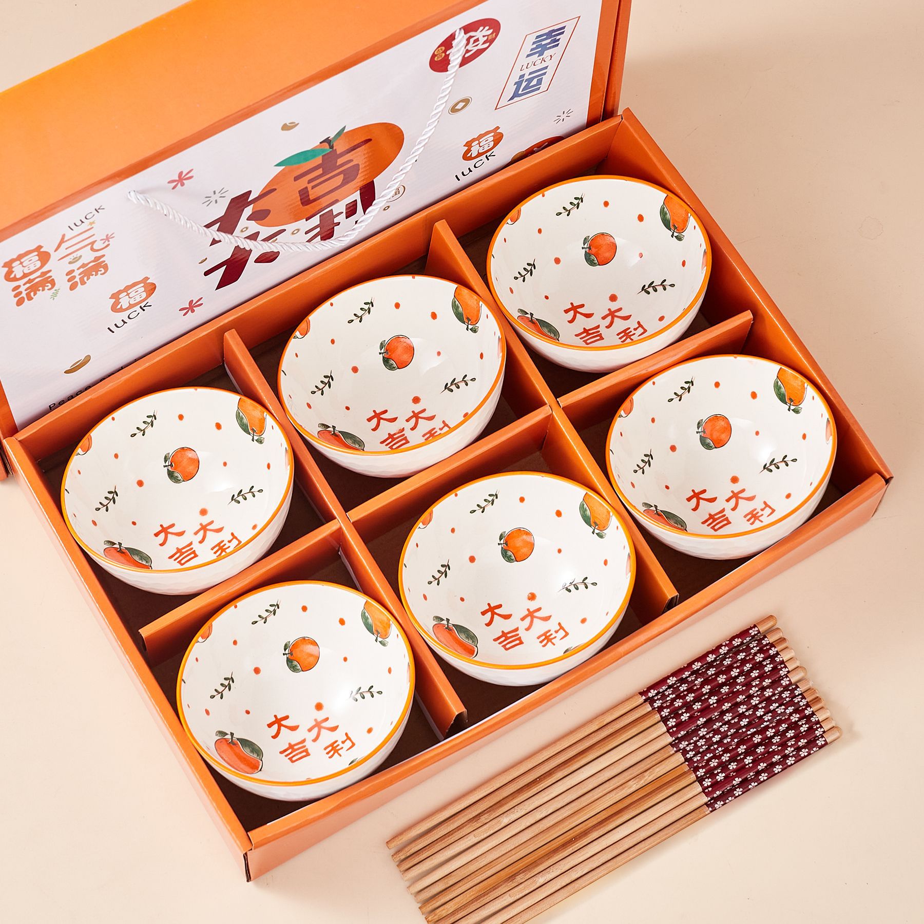 大吉大利陶瓷碗筷套装碗跨境礼盒装餐具套装碗创意小礼品家用饭碗