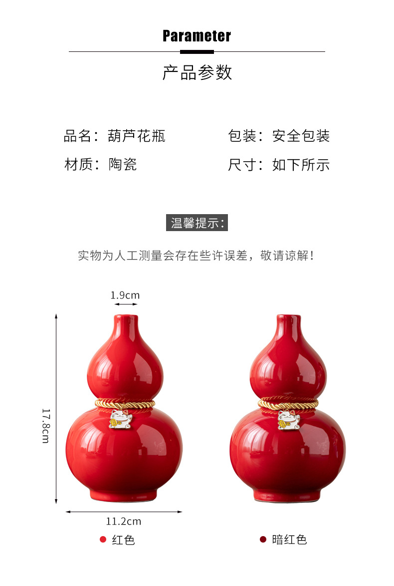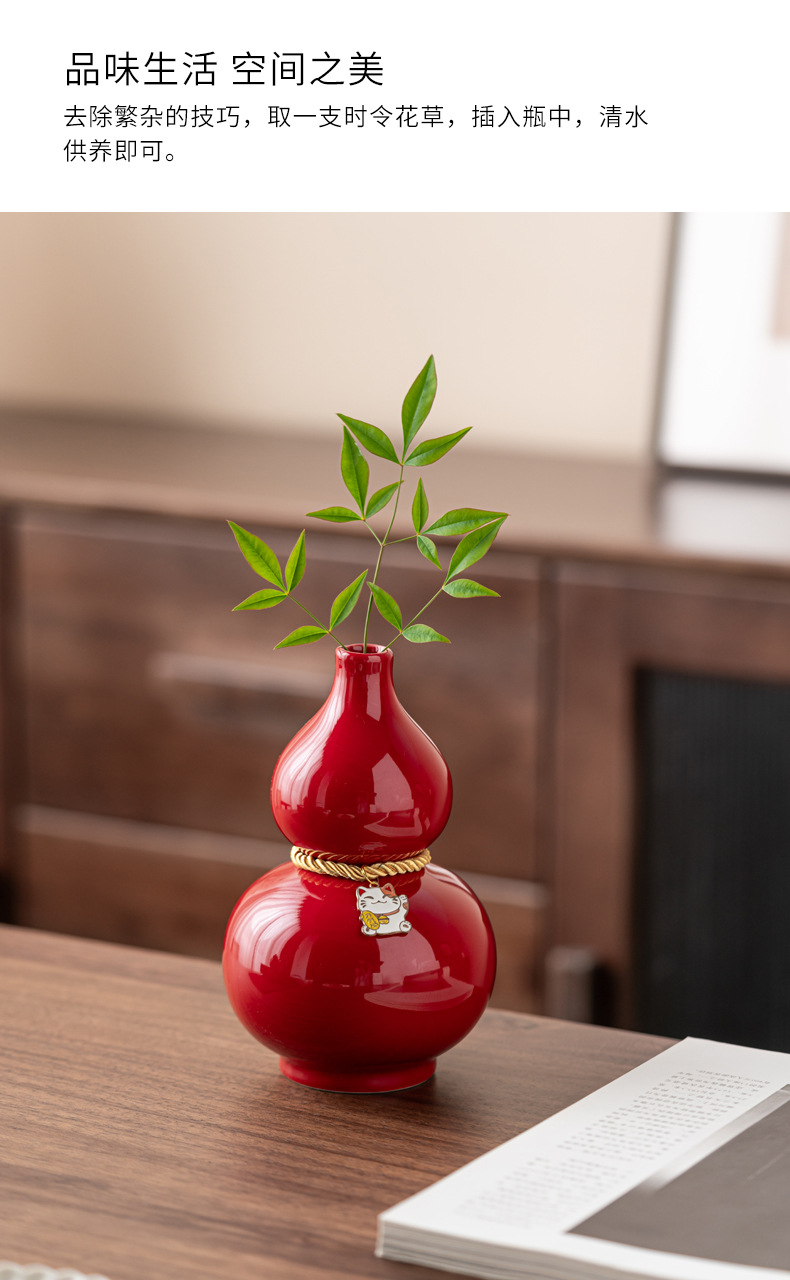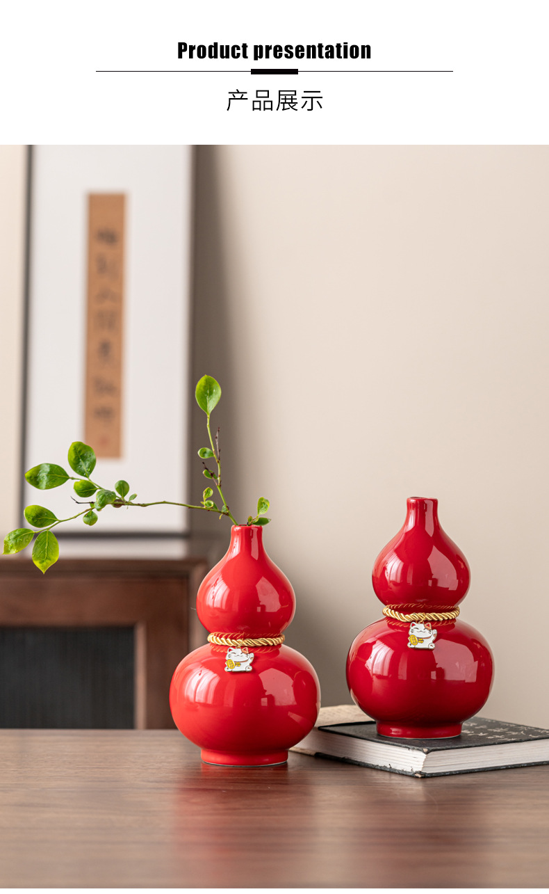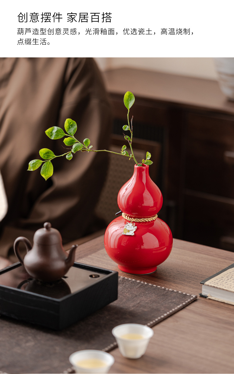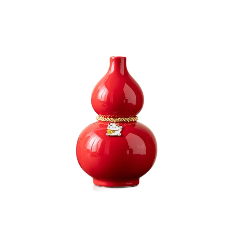 葫芦文化新中式陶瓷桌面装饰摆件红色花瓶网红创意批发婚庆福气瓶
