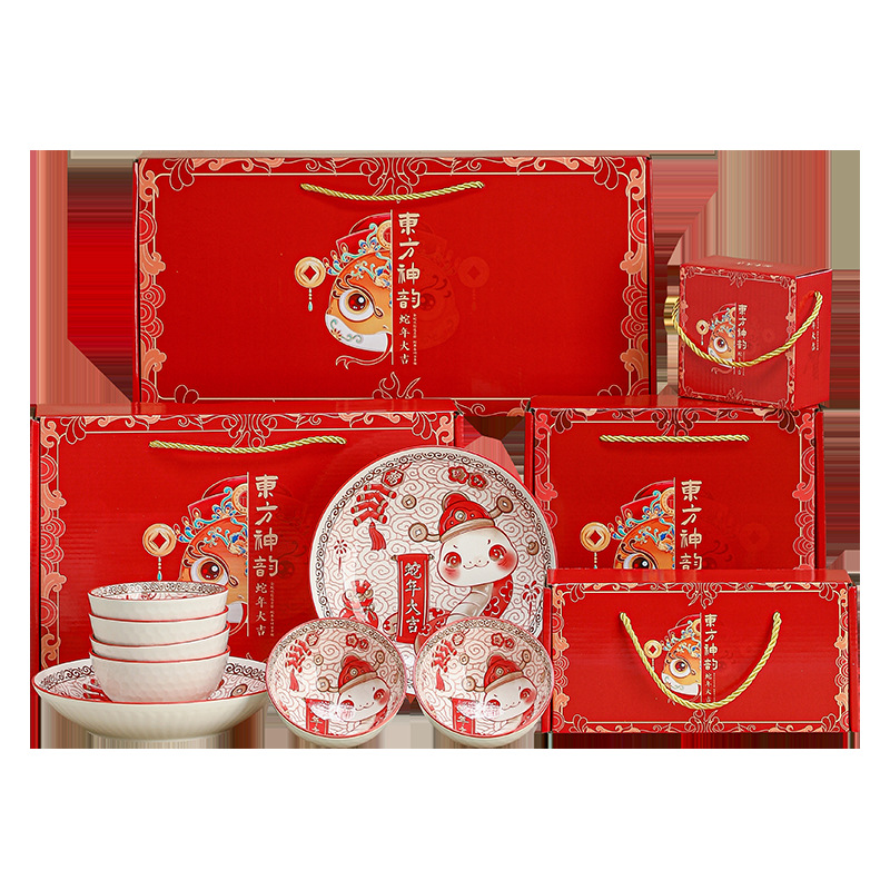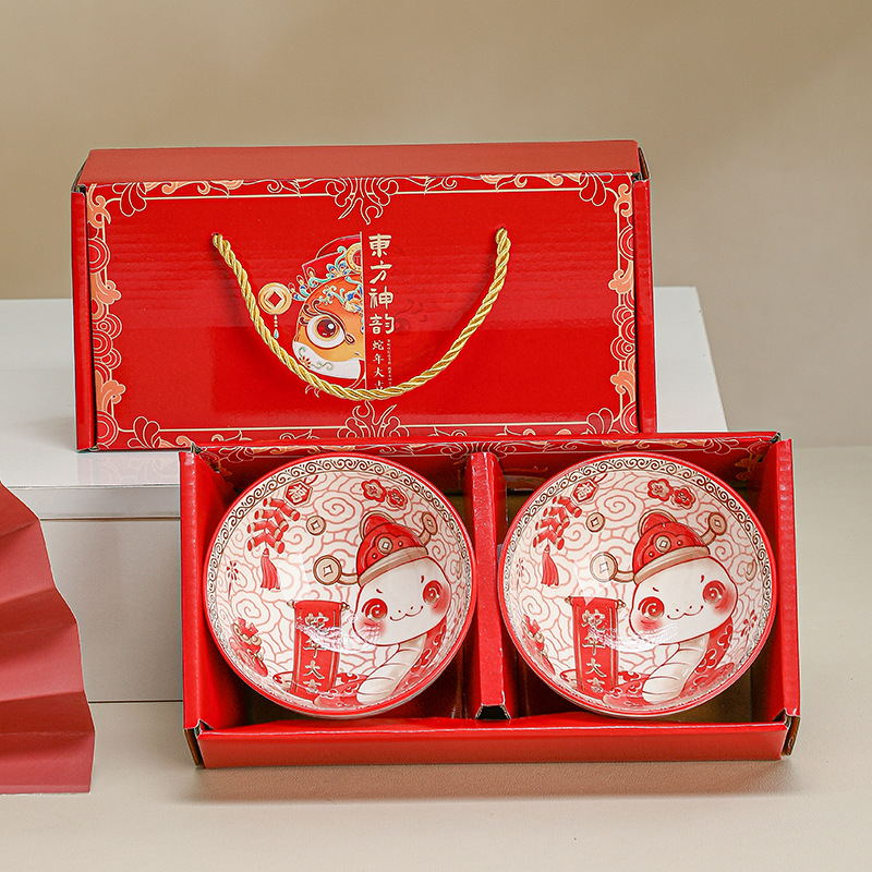 蛇年碗套装瓷碗礼品套碗陶瓷餐具回礼伴手礼陶瓷礼盒公司年会礼品
