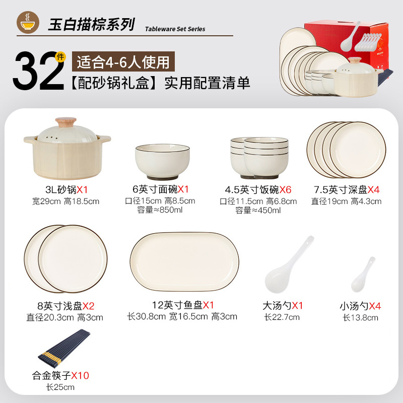 景德镇碗碟套装家用2025新款陶瓷餐具碗盘筷乔迁简约碗筷盘子组合