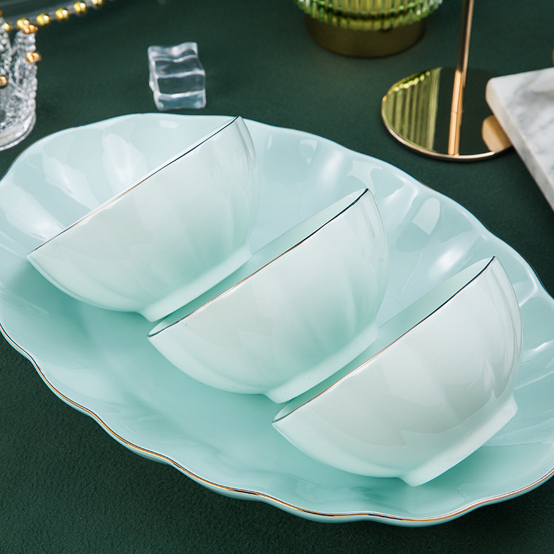 碗碟套装批发家用简约金边饭碗面汤碗菜盘影青轻奢陶瓷碗餐具套装