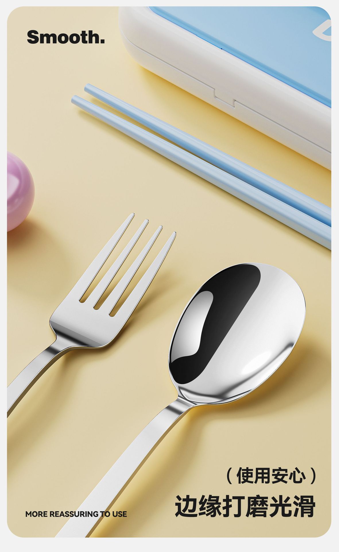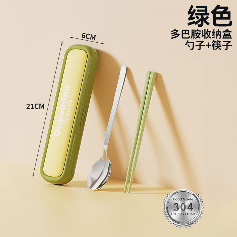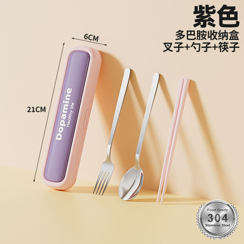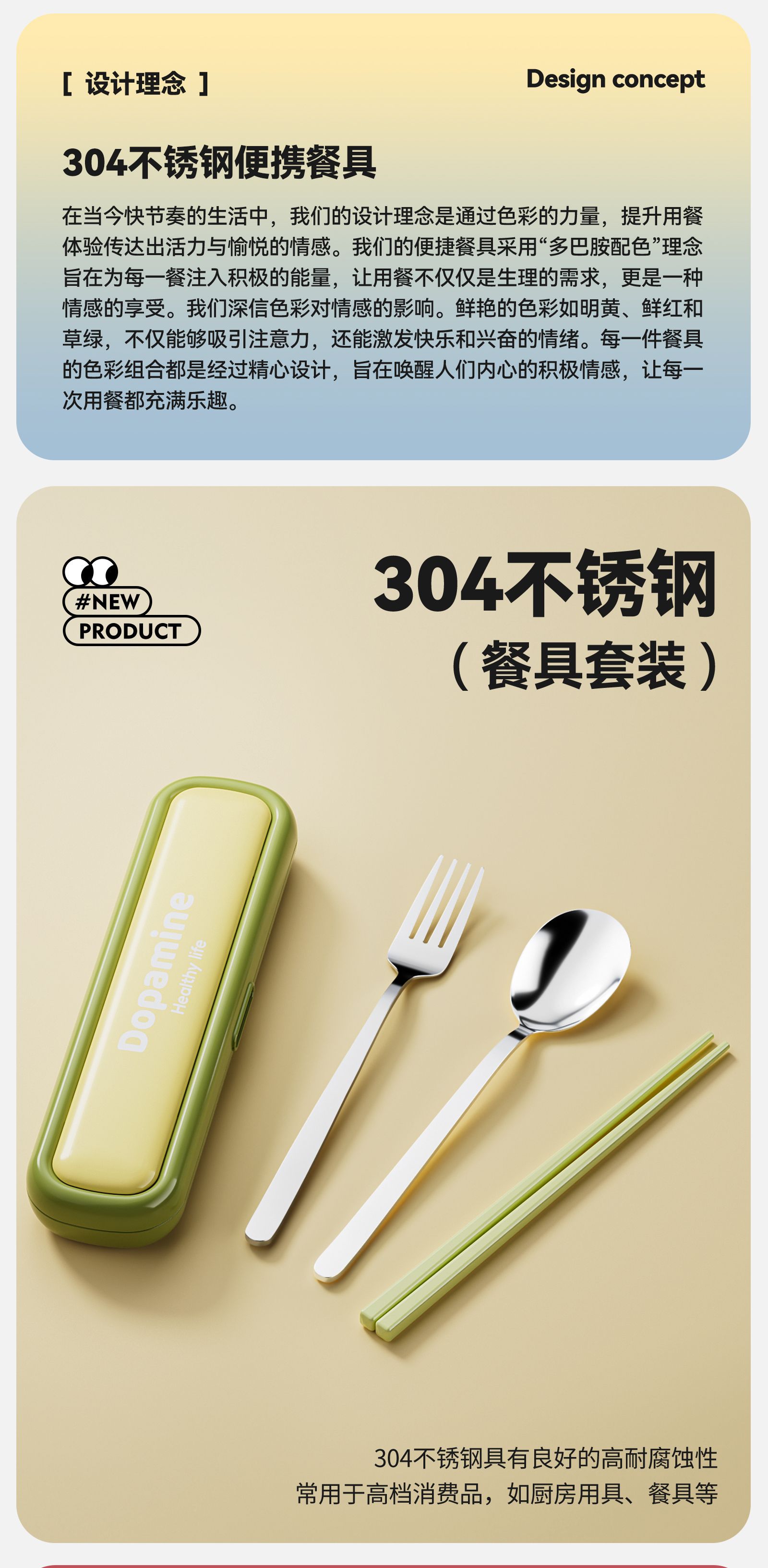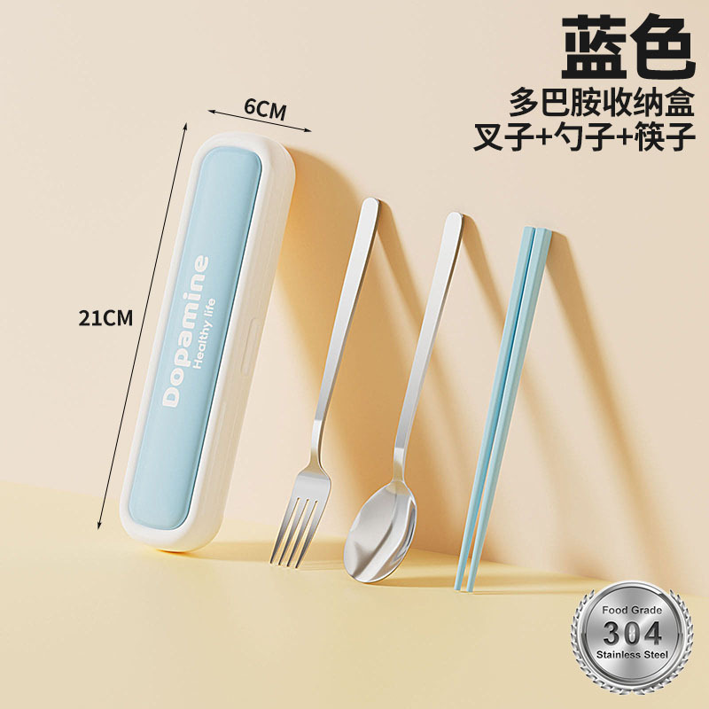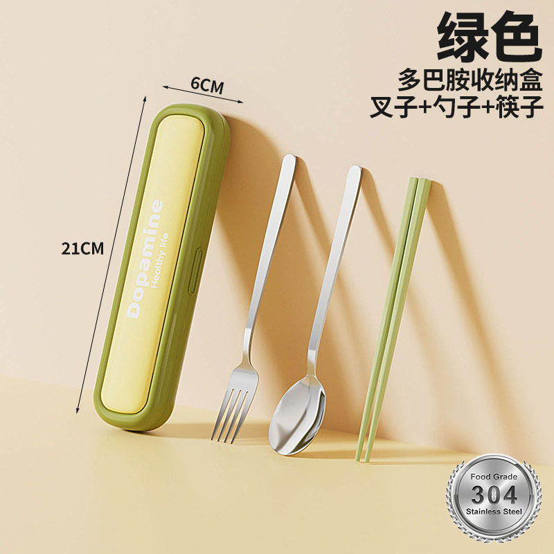 304不锈钢勺子筷子叉餐具套装多巴胺学生上班族便携三件套餐具盒