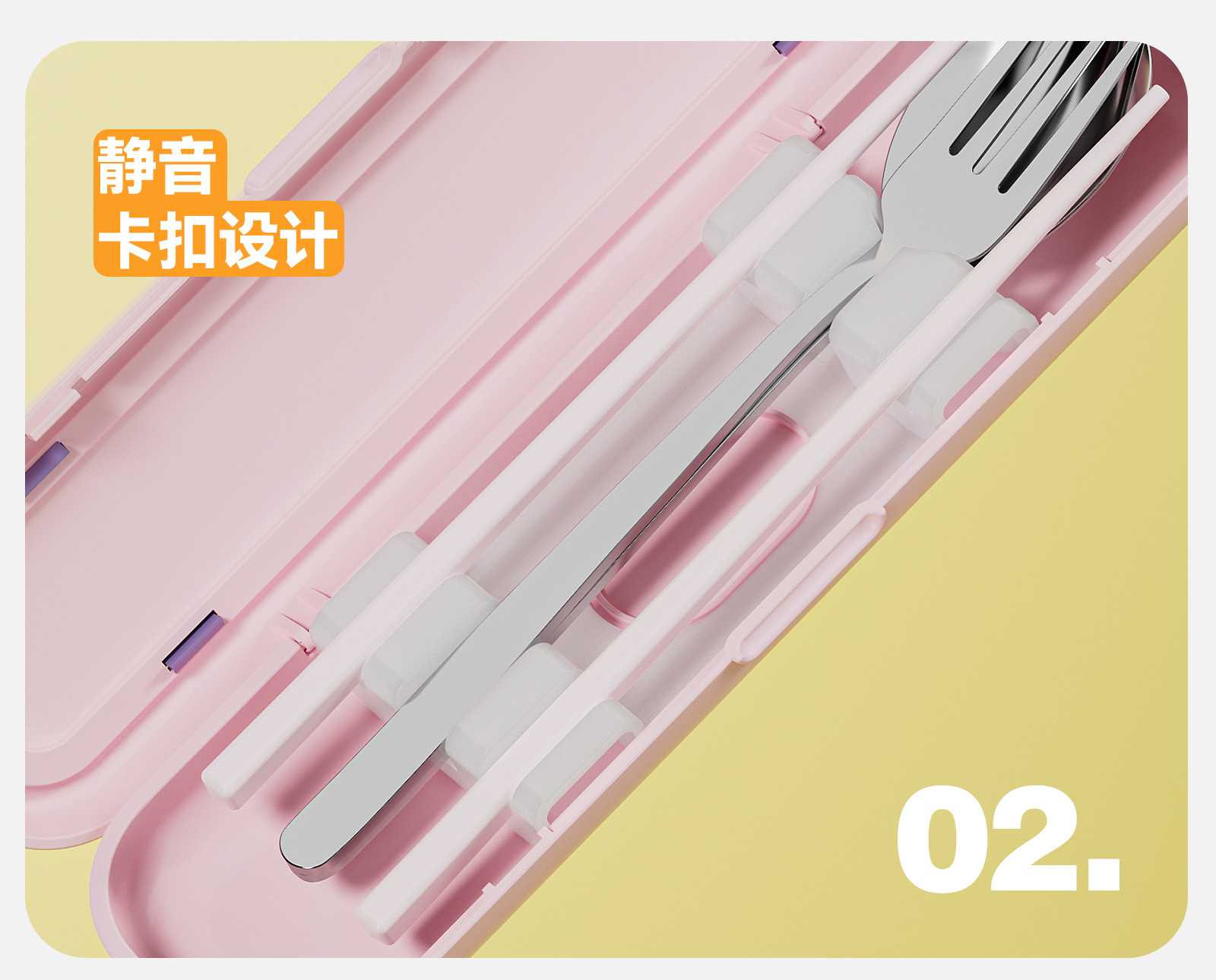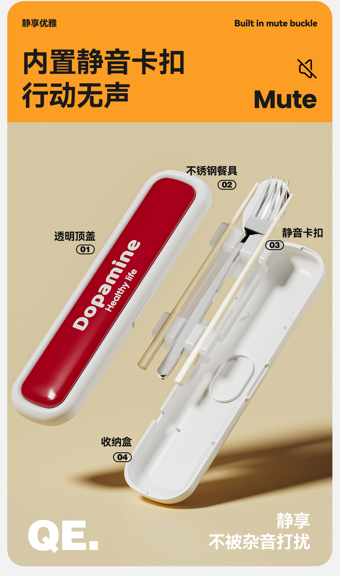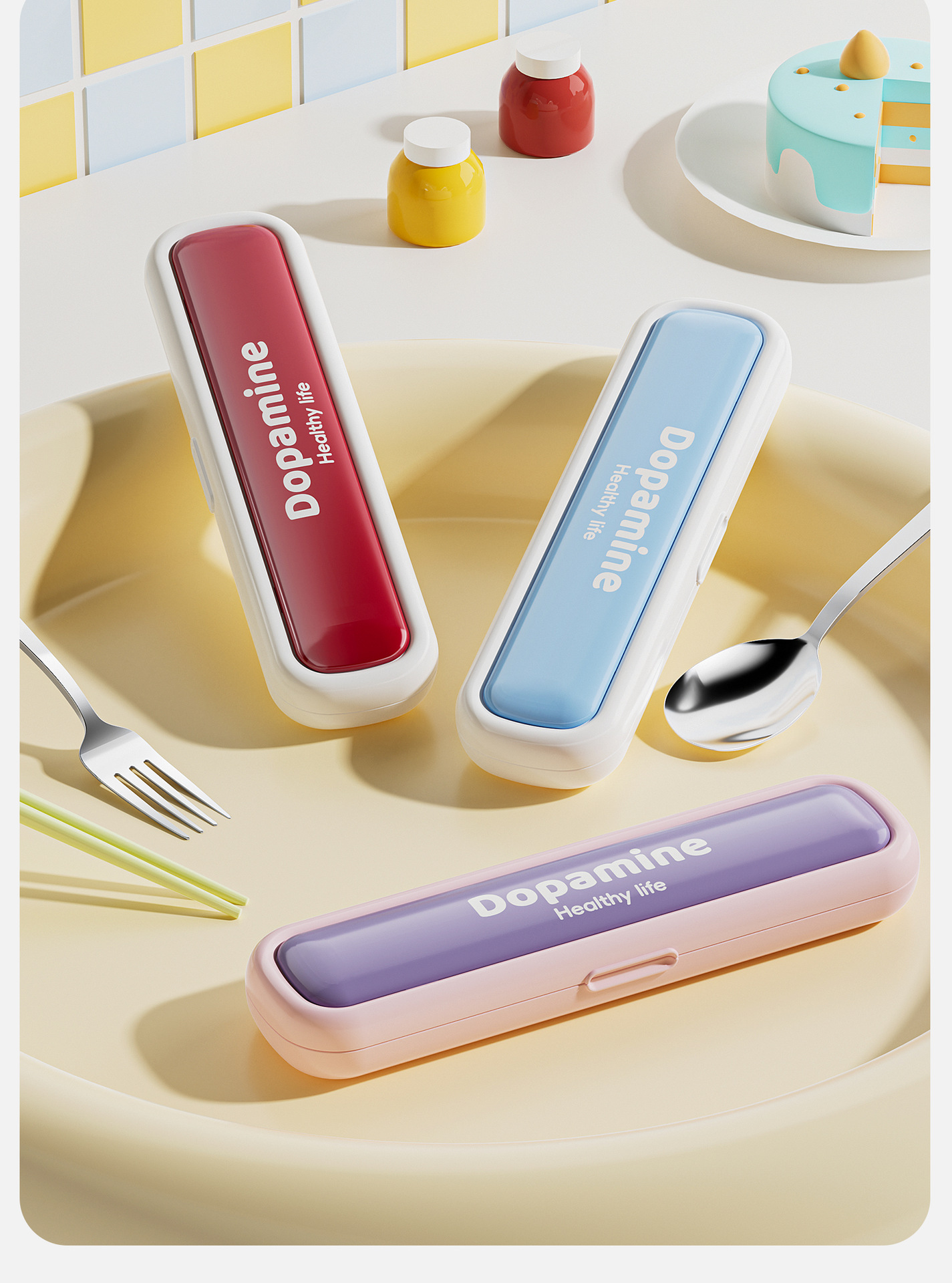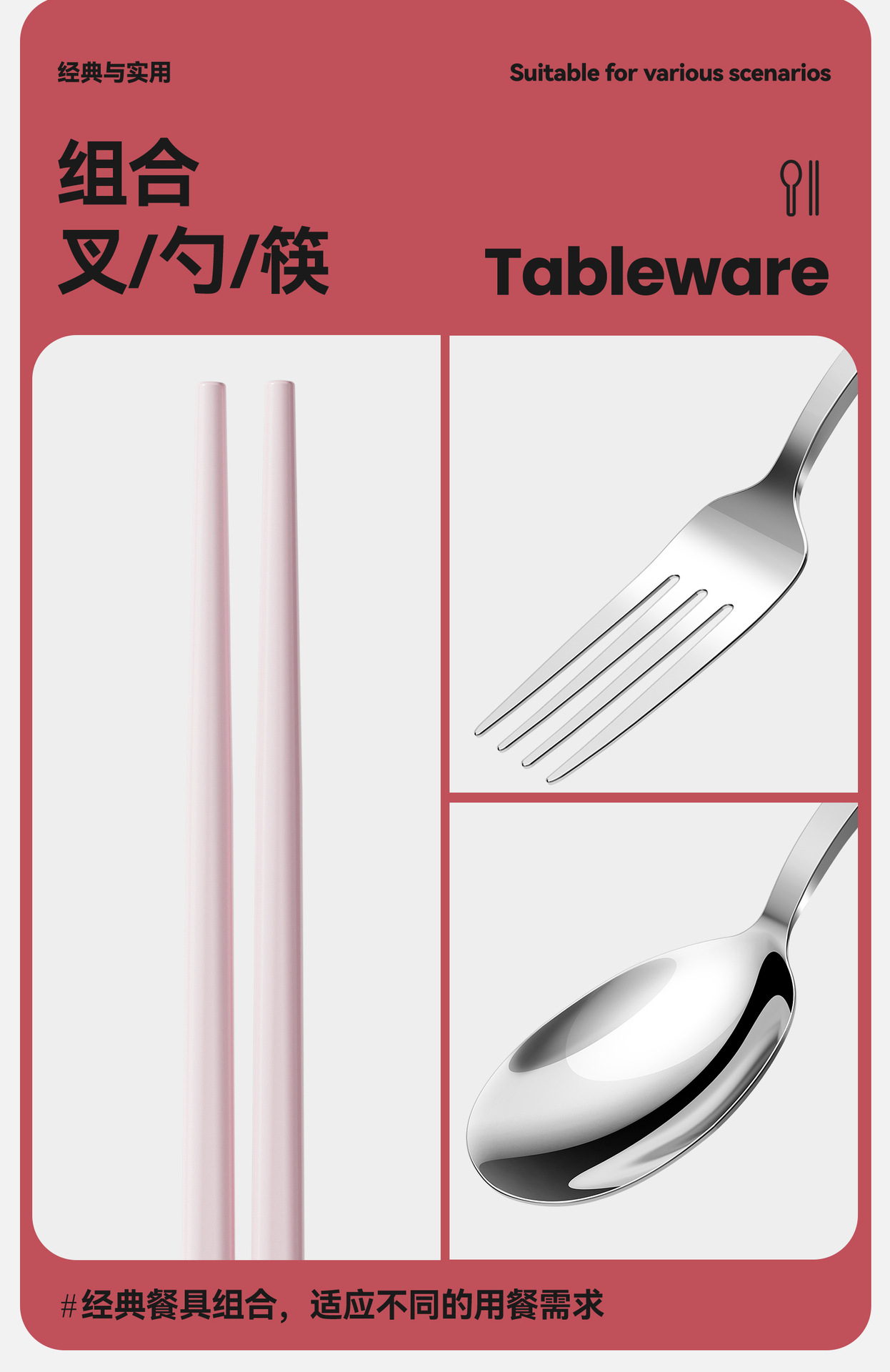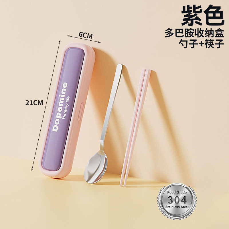 304不锈钢勺子筷子叉餐具套装多巴胺学生上班族便携三件套餐具盒