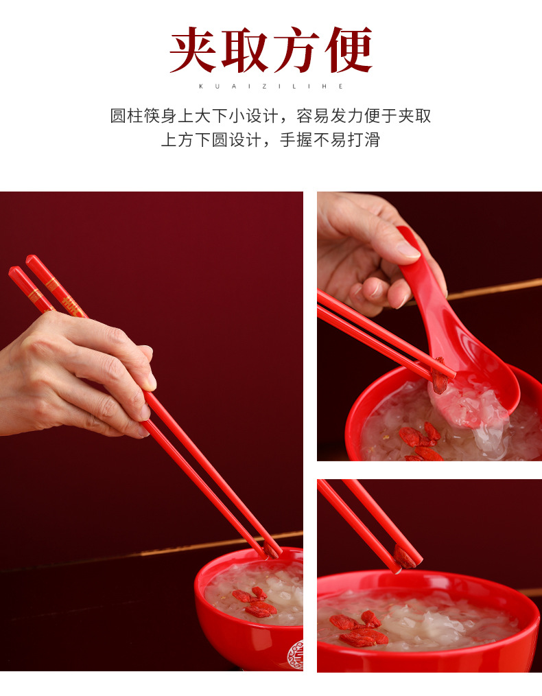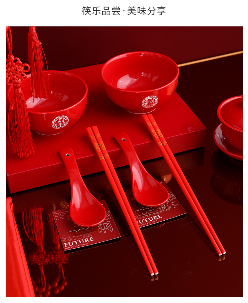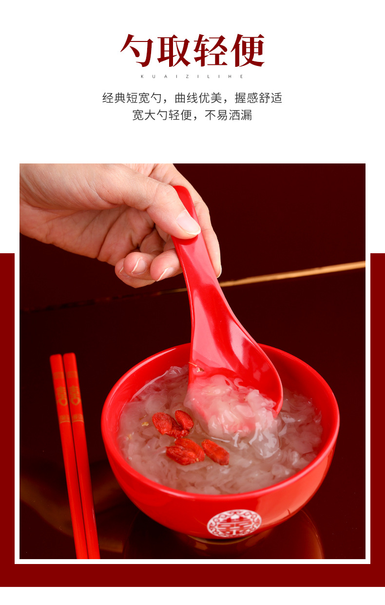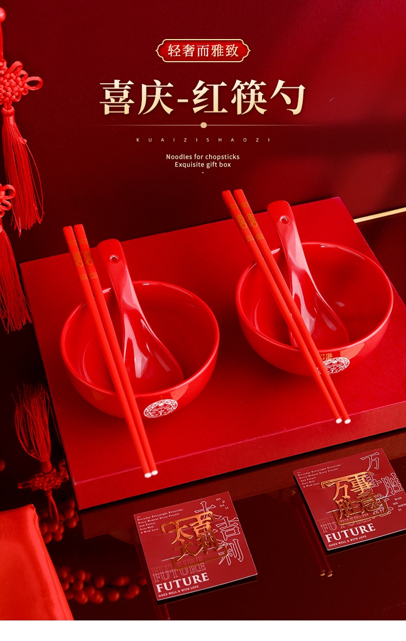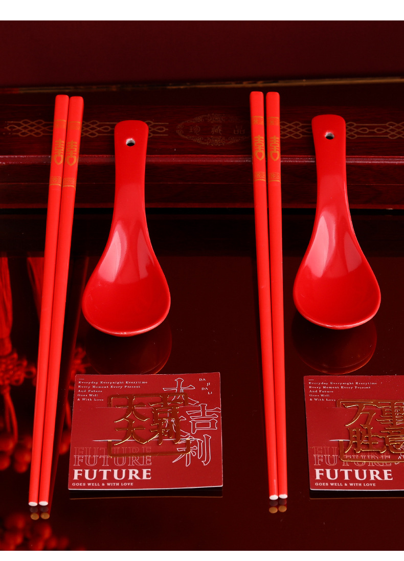 中式婚庆筷勺礼盒套装家用红色喜庆陶瓷筷勺结婚伴手礼套装可logo