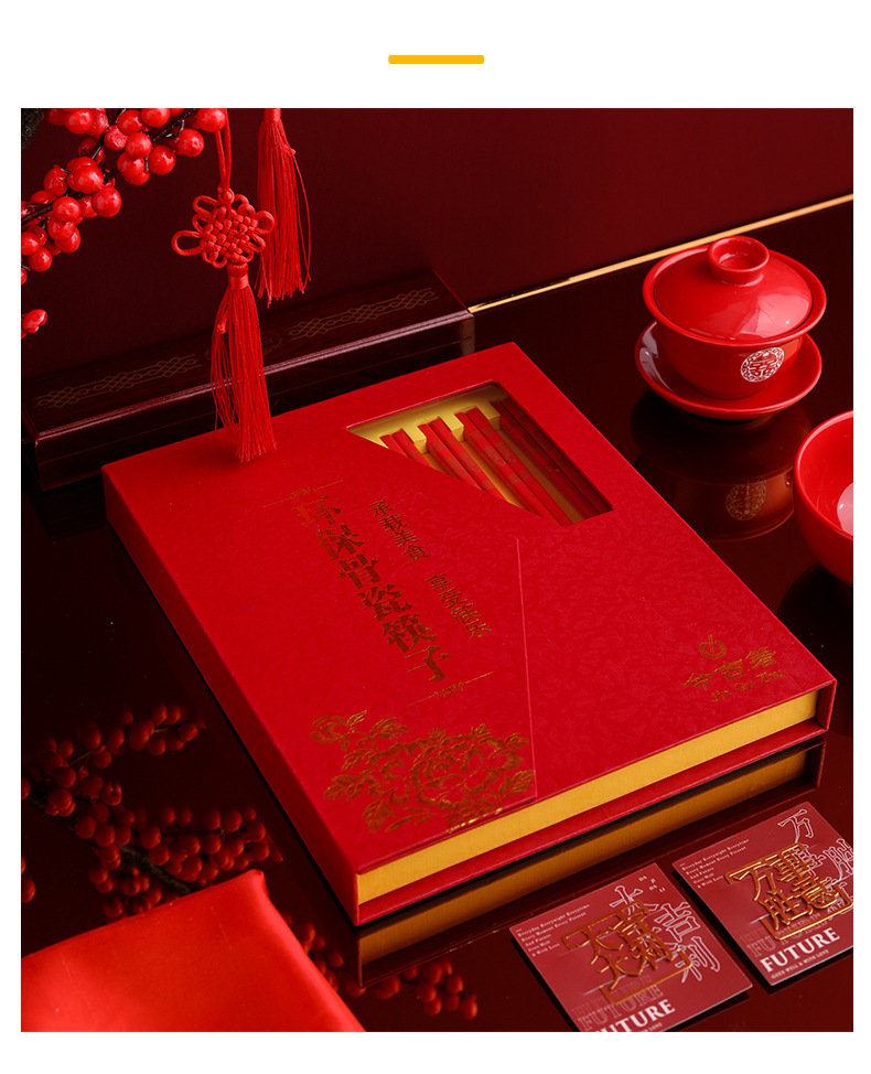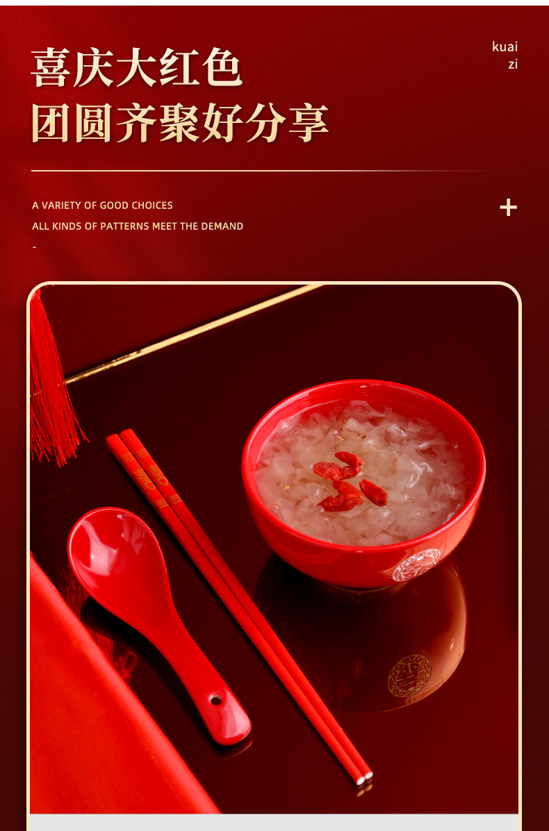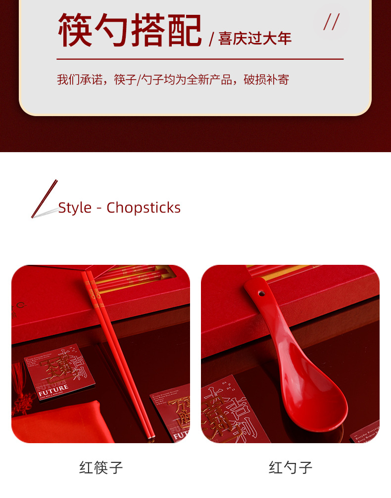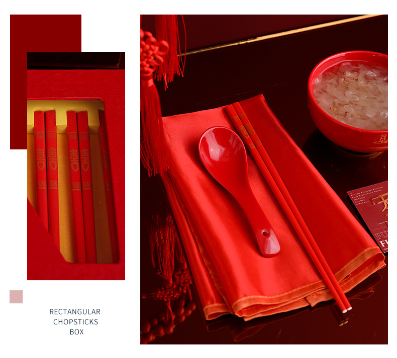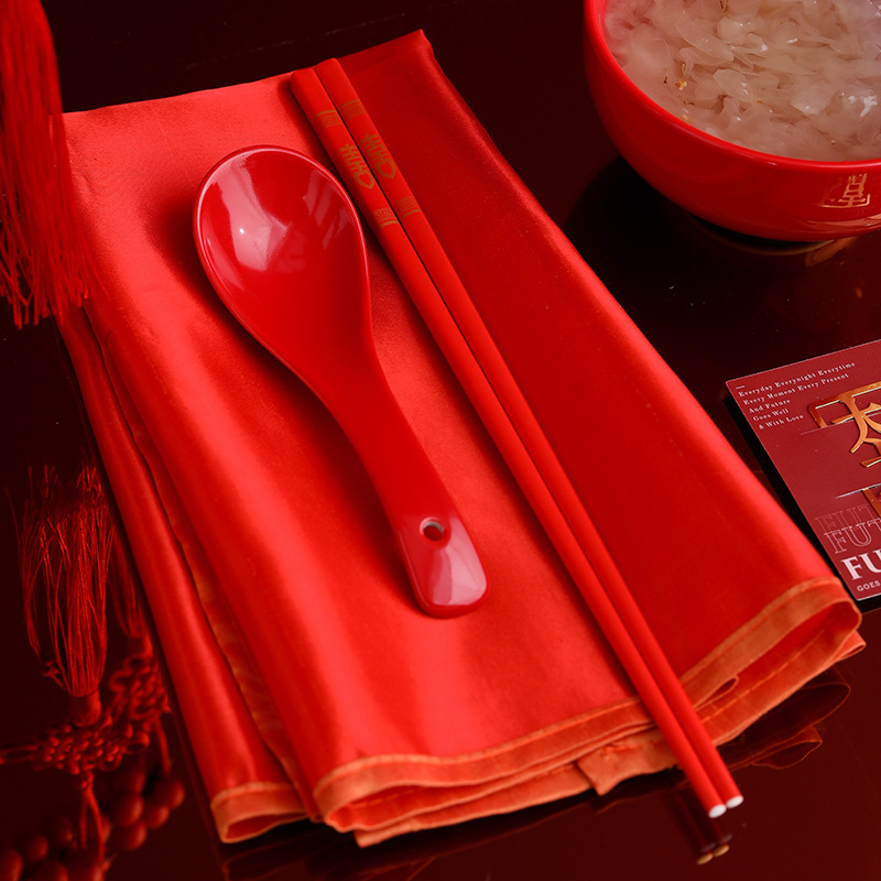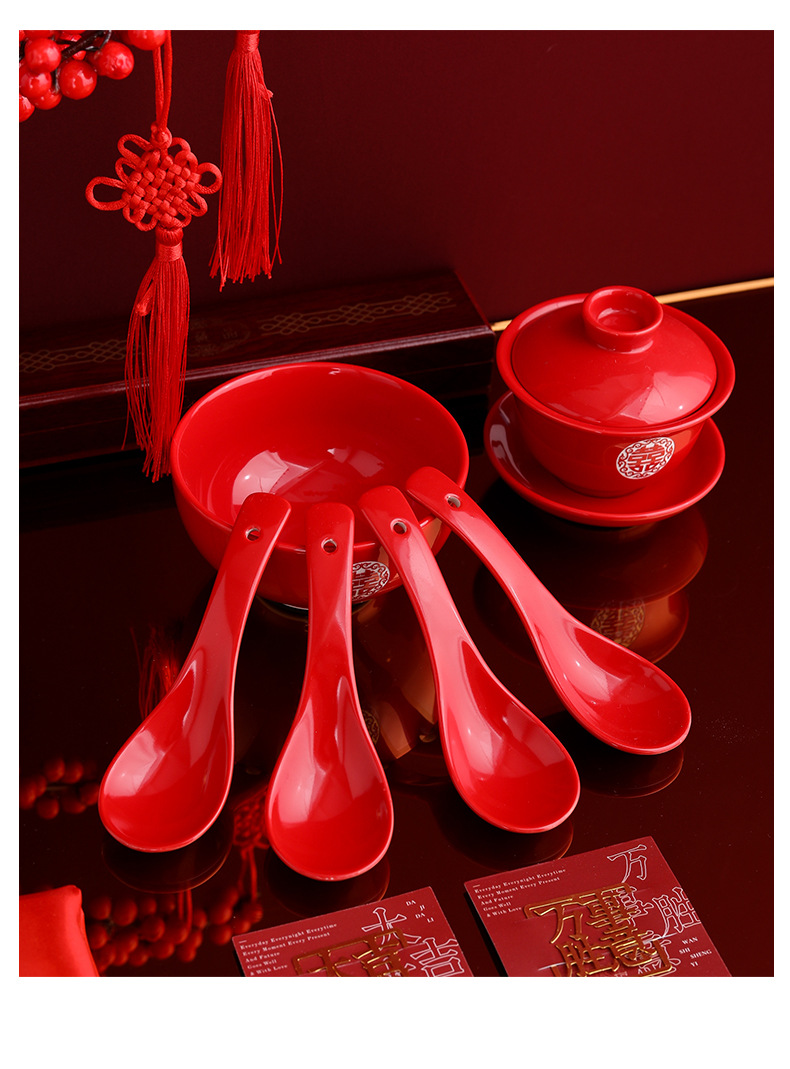 中式婚庆筷勺礼盒套装家用红色喜庆陶瓷筷勺结婚伴手礼套装可logo