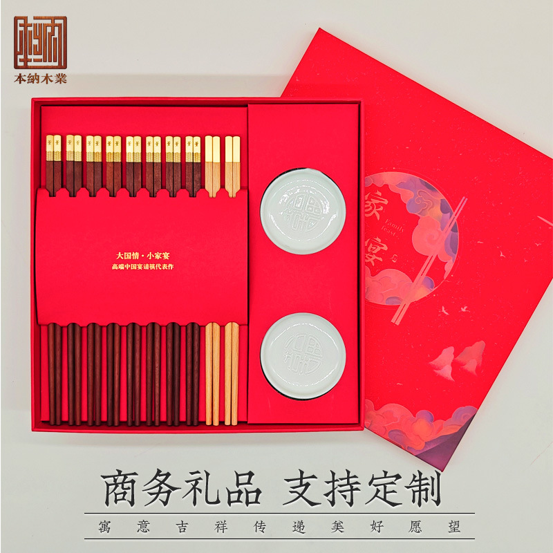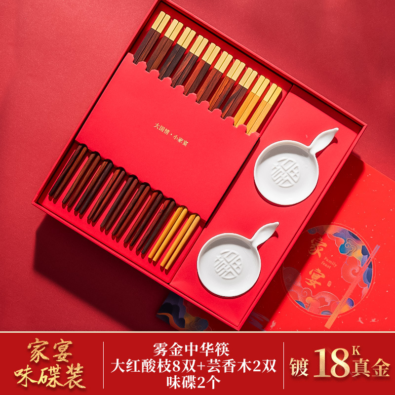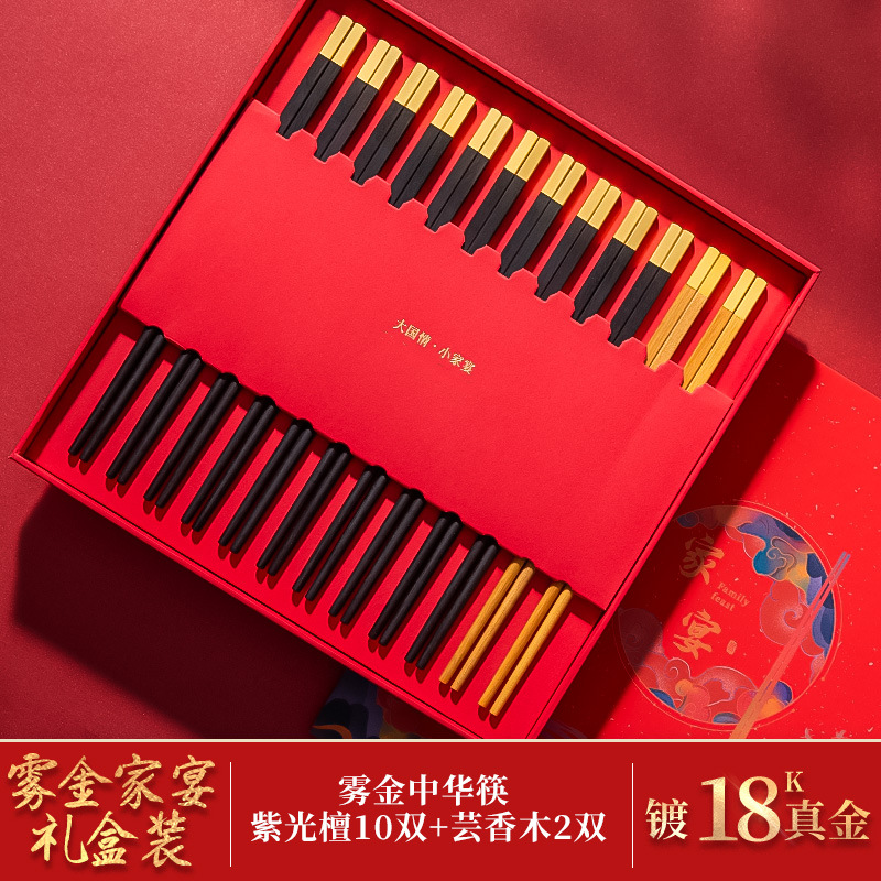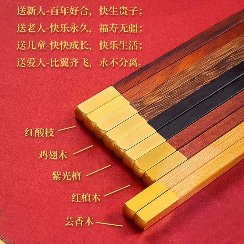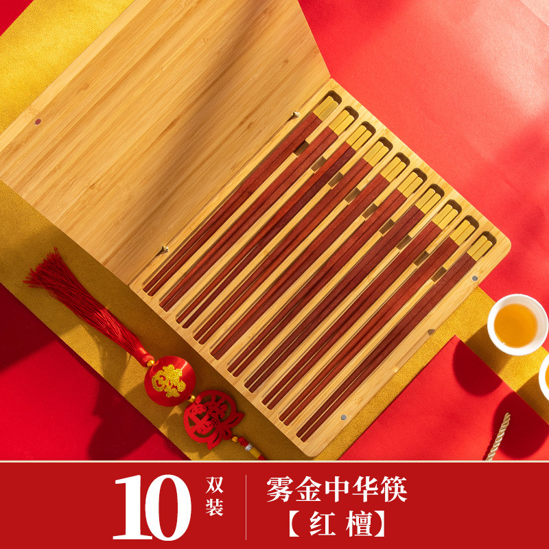 中国风礼品家宴筷子礼盒套装餐具国潮鸡翅红木筷子刻字公筷10双装
