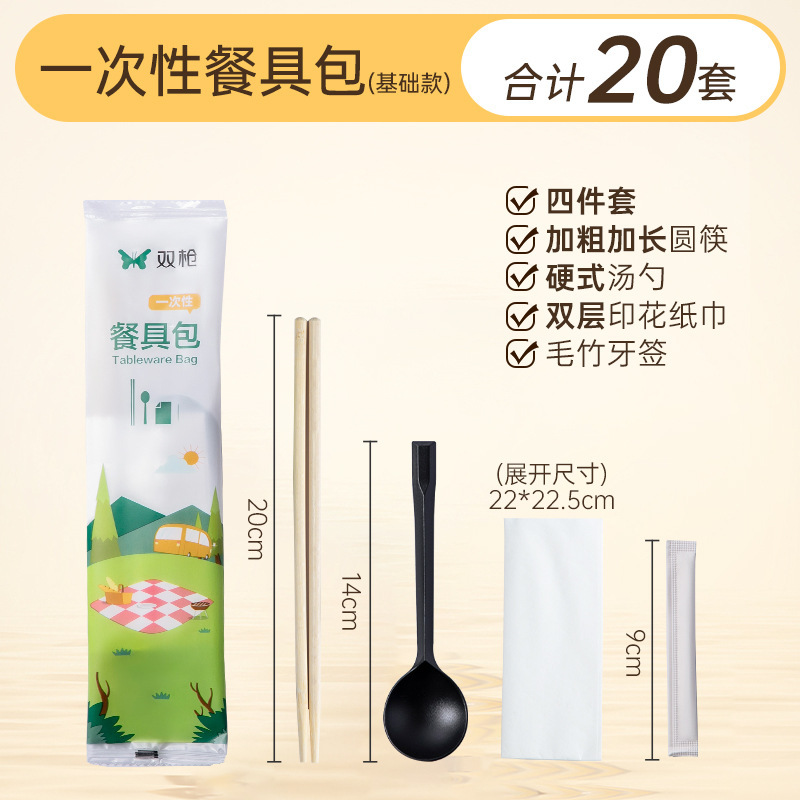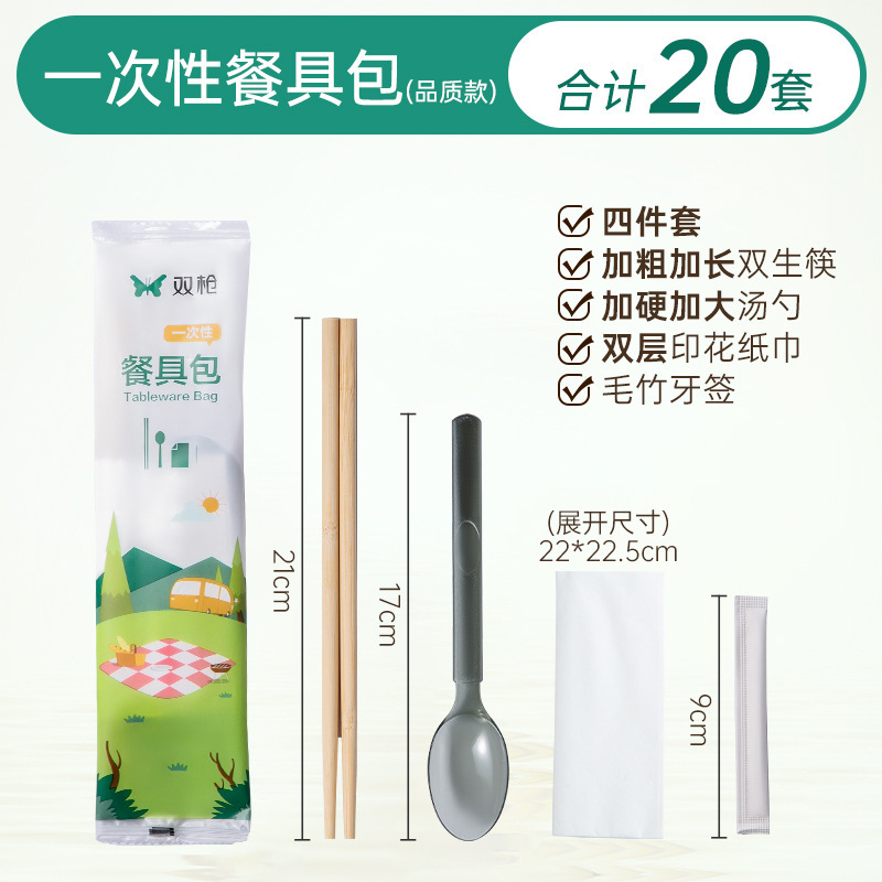 双枪一次性筷子整袋批发外卖商用餐具圆筷独立包装竹筷碳化四件套