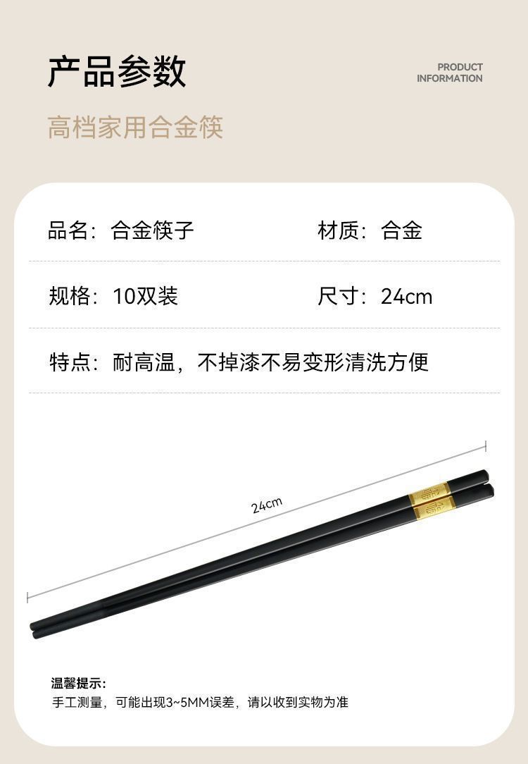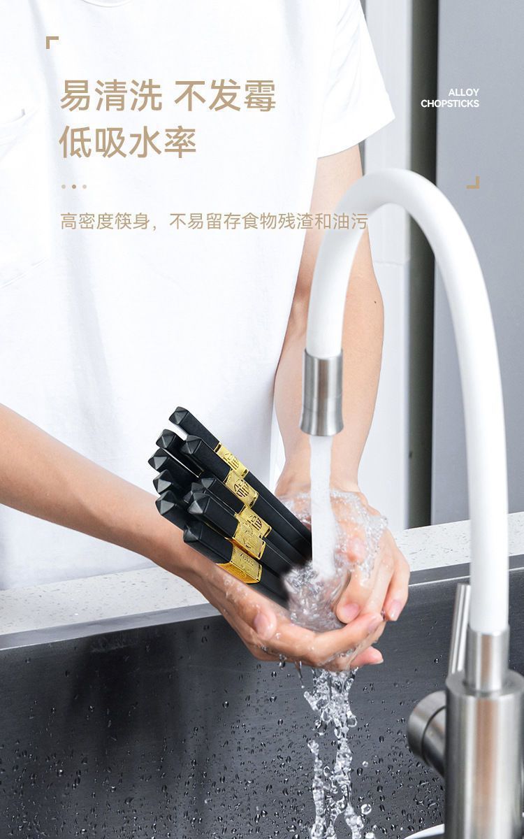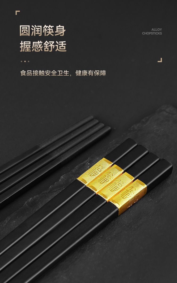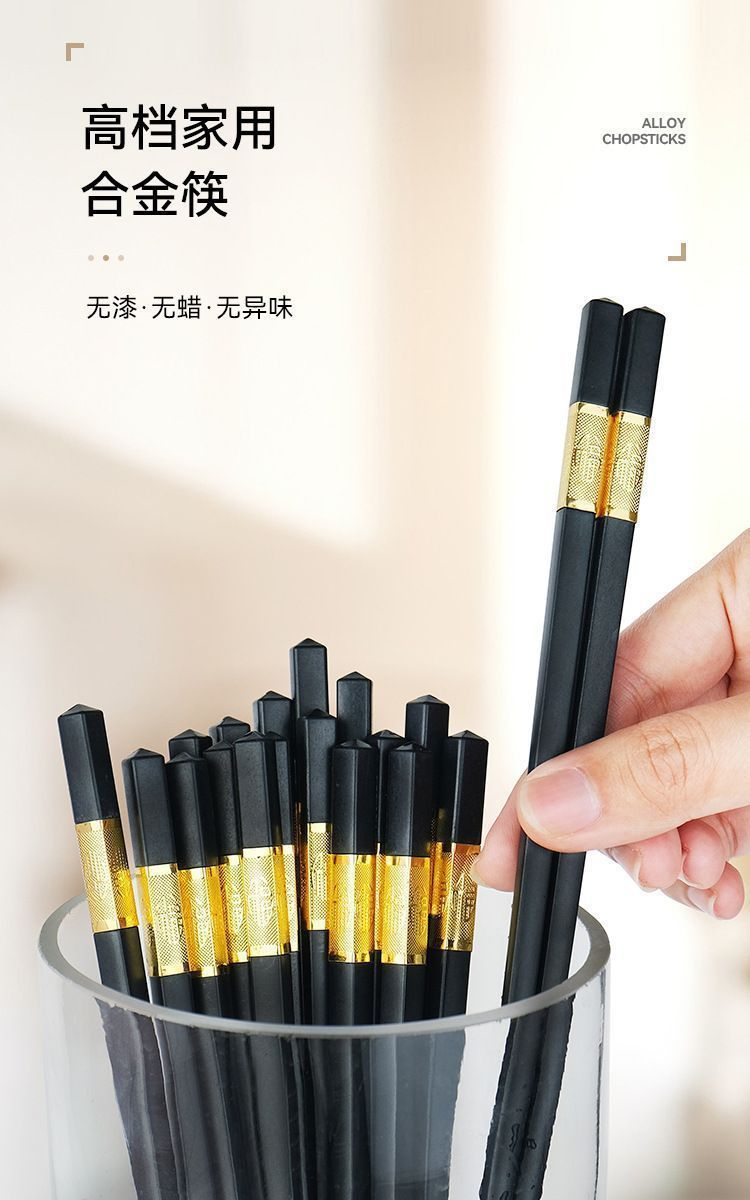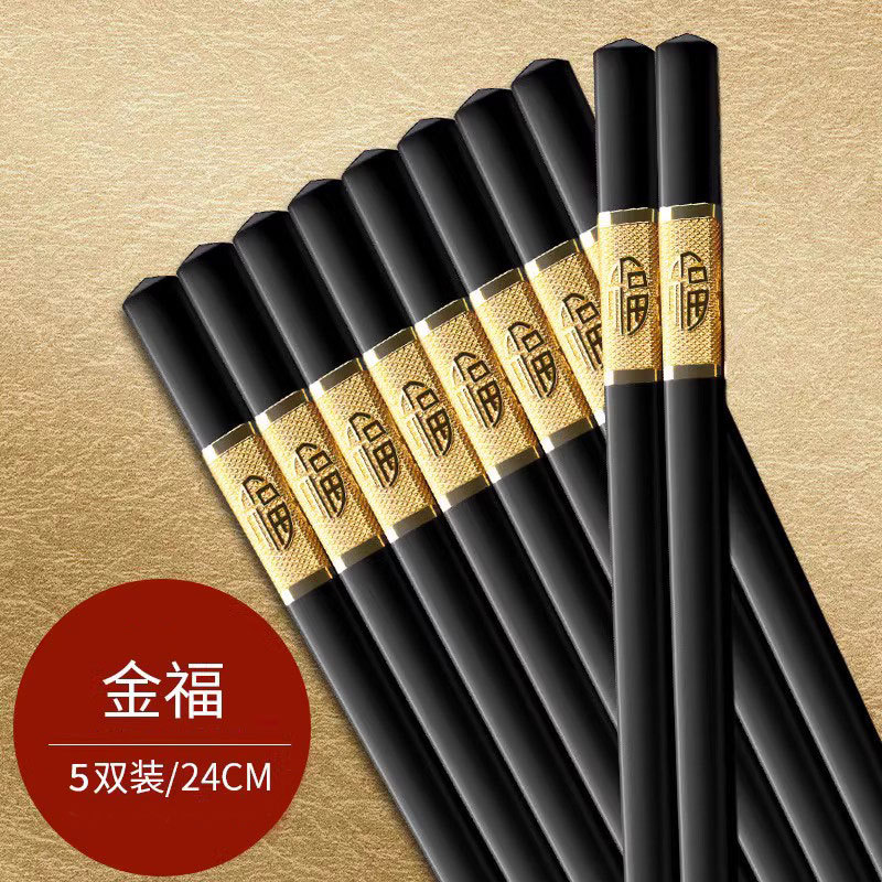 金福合金筷子高档酒店家用家庭套装5双