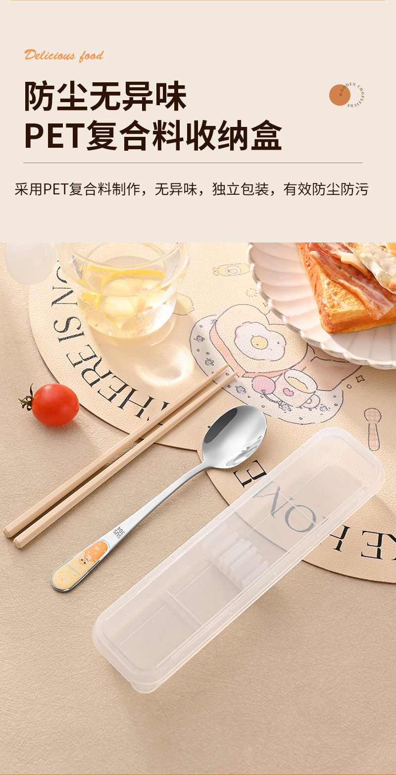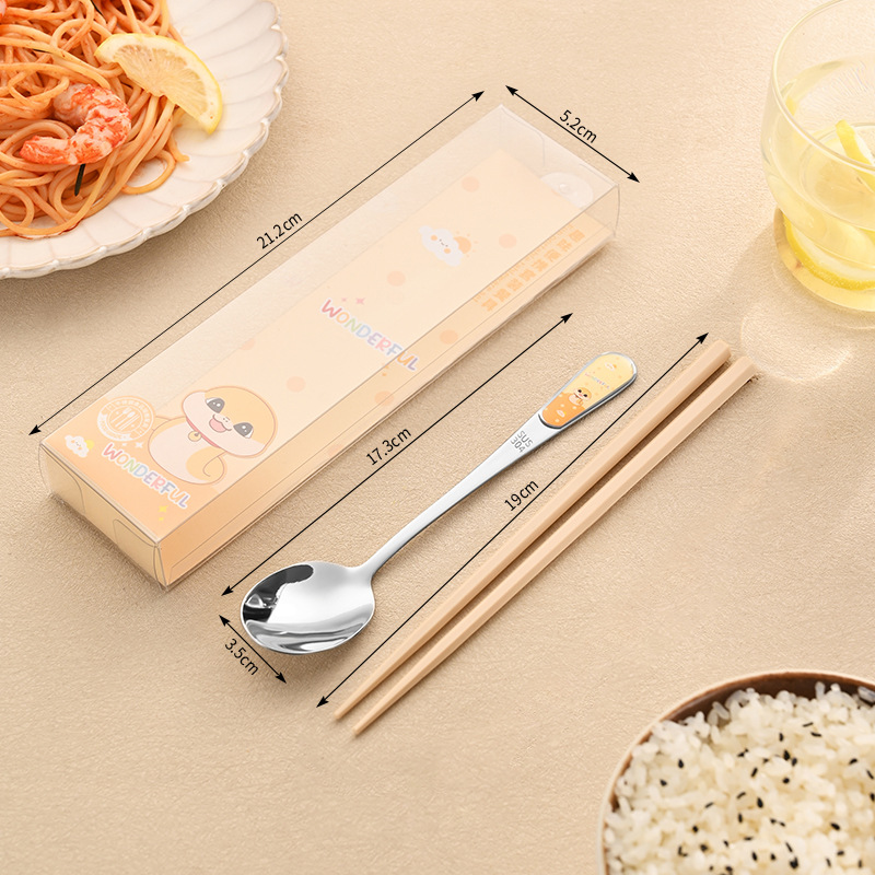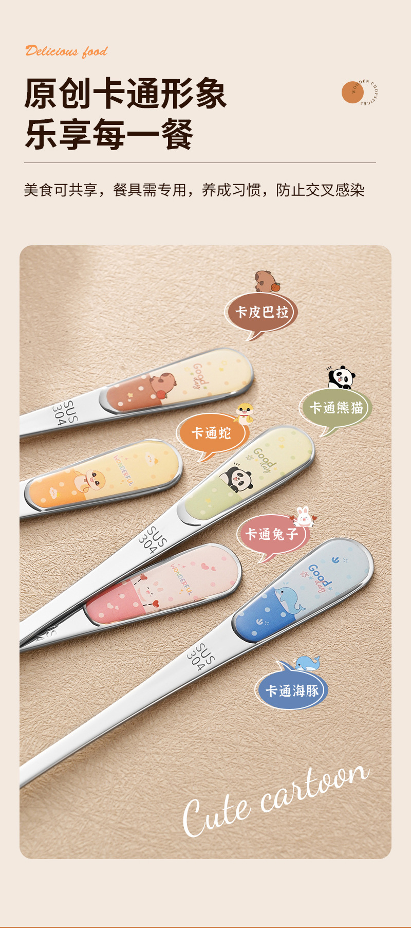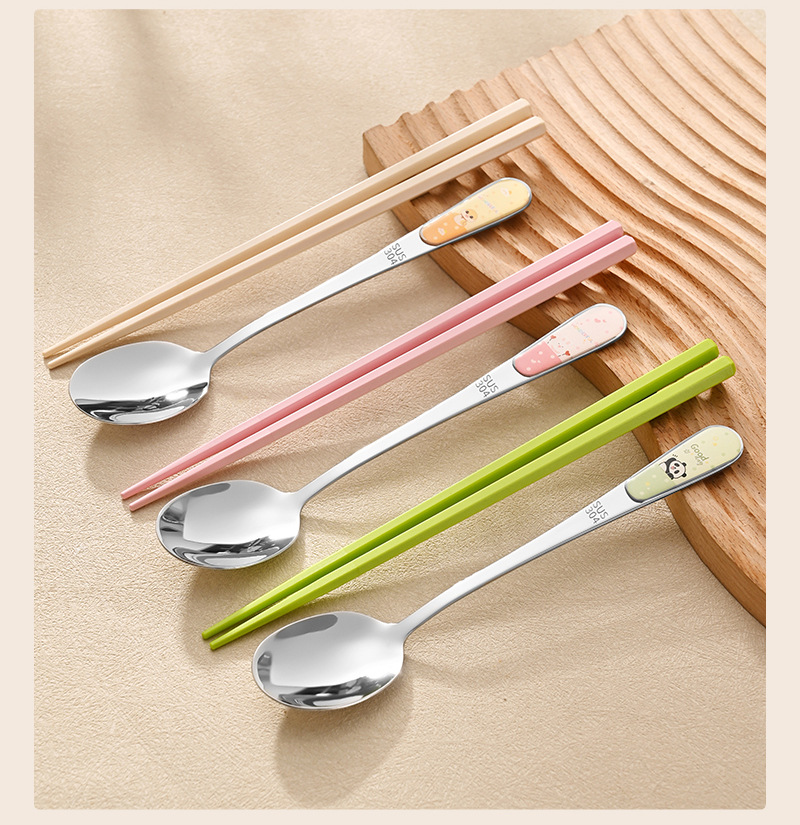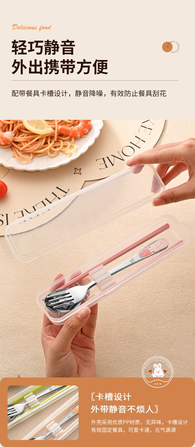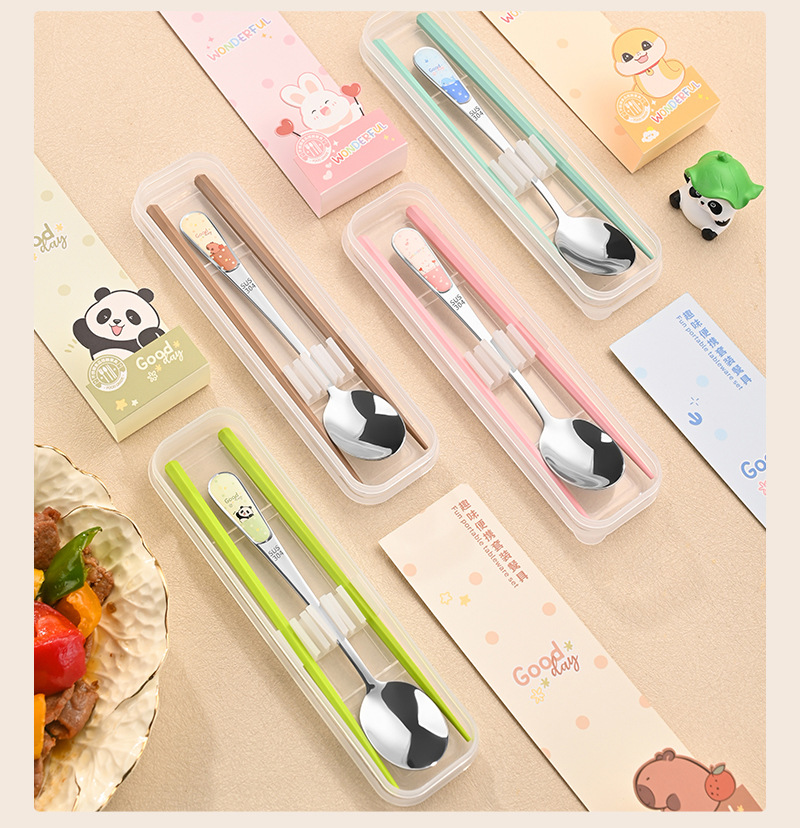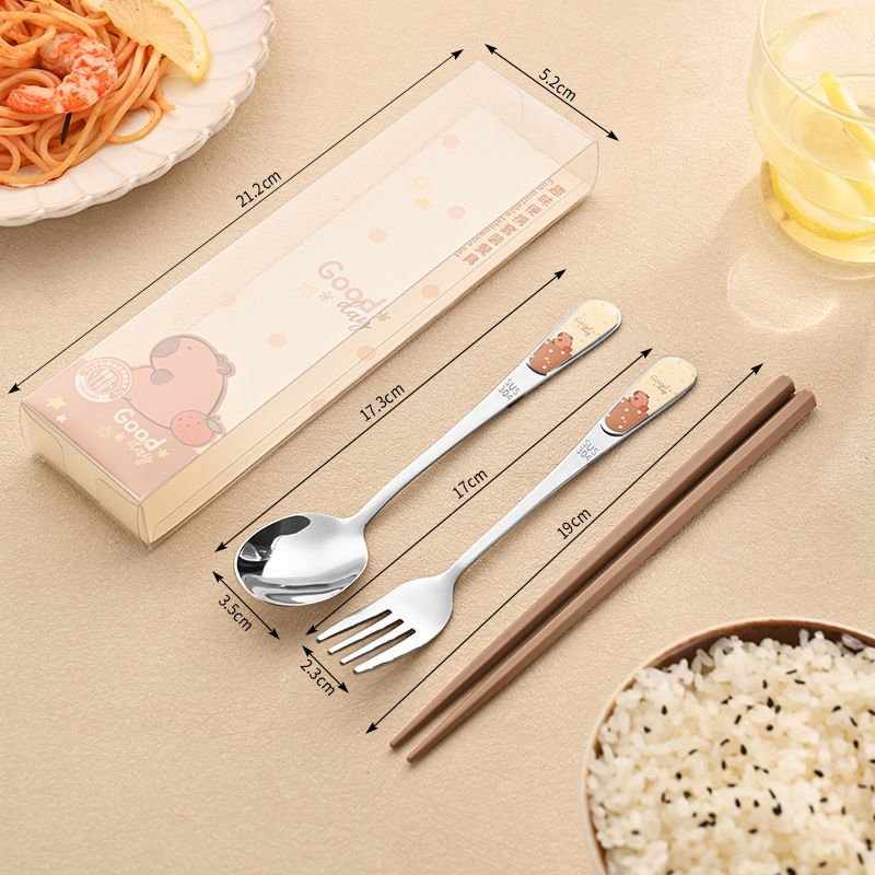 厂家批发304不锈钢便携式餐具儿童学生勺子叉子筷子勺筷套装卡通