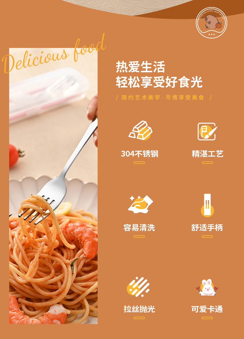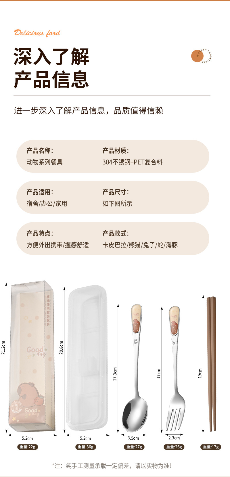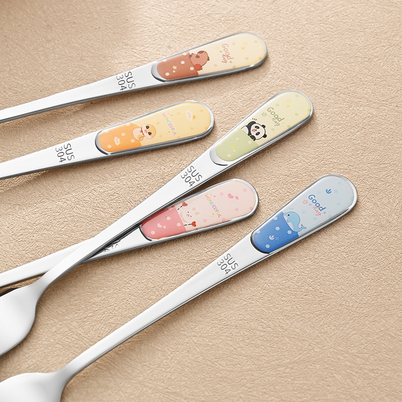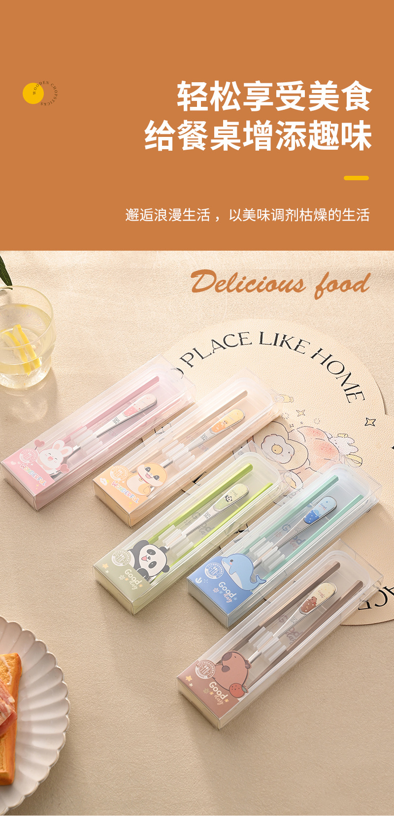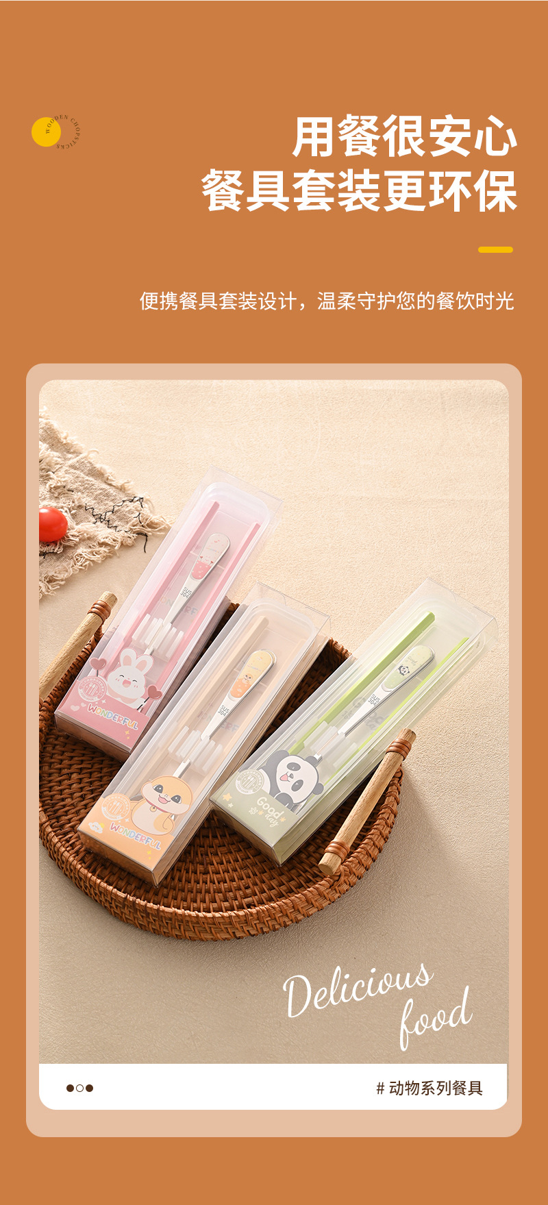 厂家批发304不锈钢便携式餐具儿童学生勺子叉子筷子勺筷套装卡通