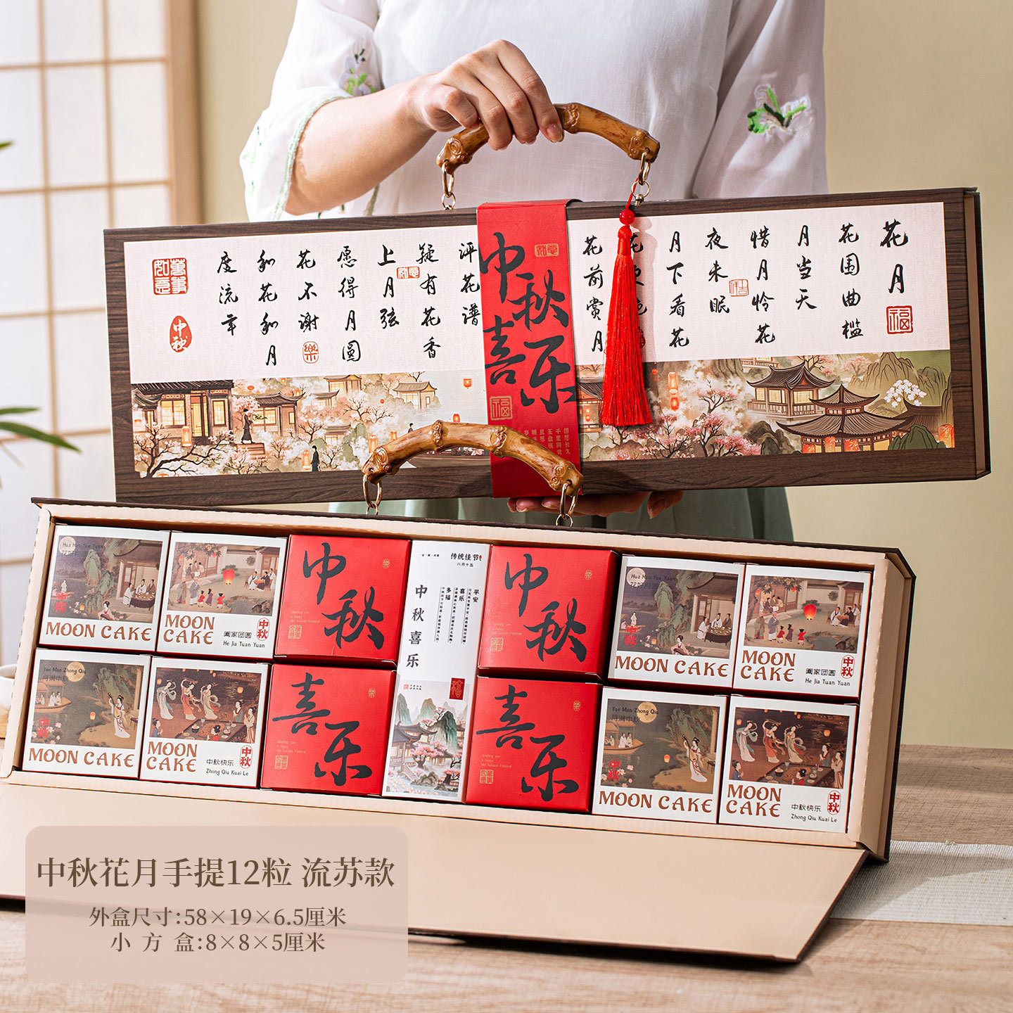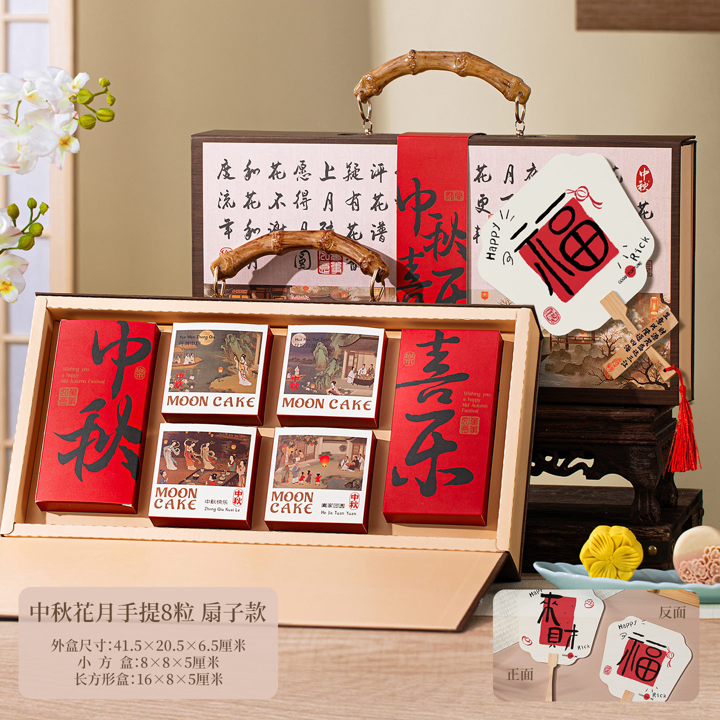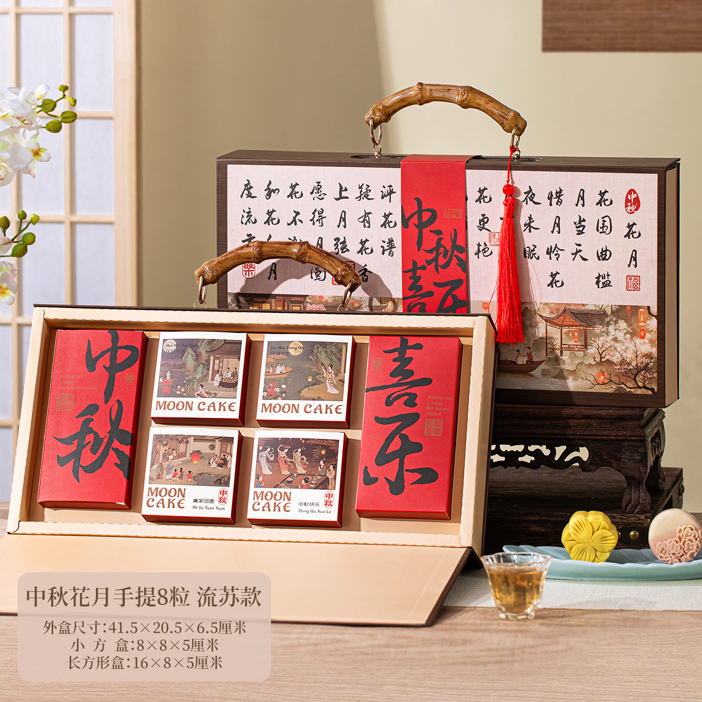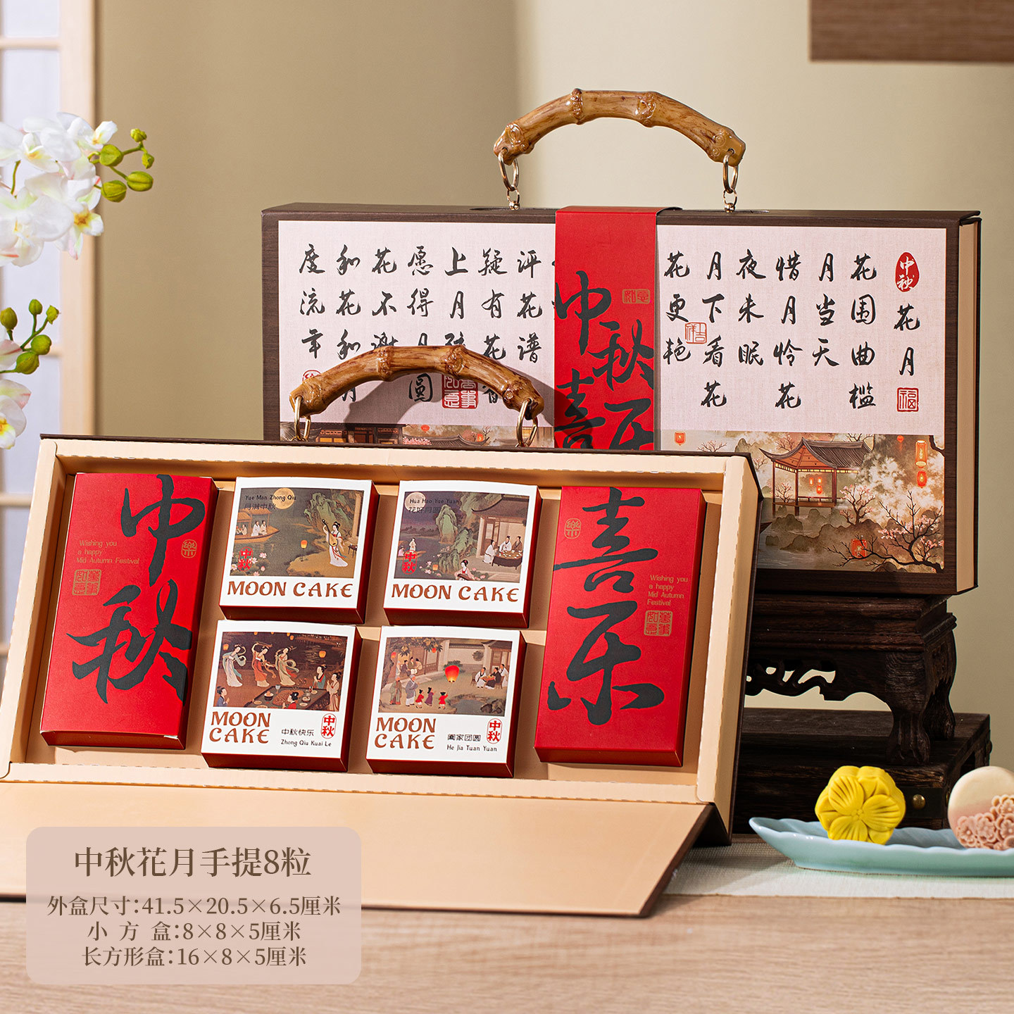 中秋节月饼礼盒包装盒空盒子中式高档手提礼品盒8粒LOGO制定批发