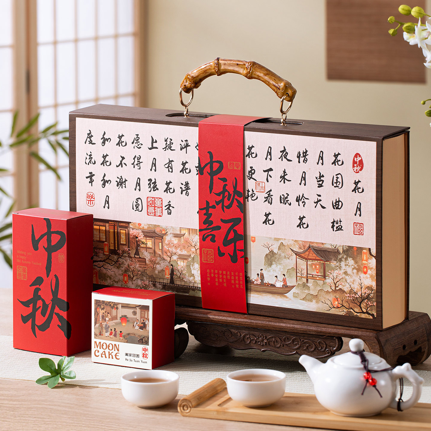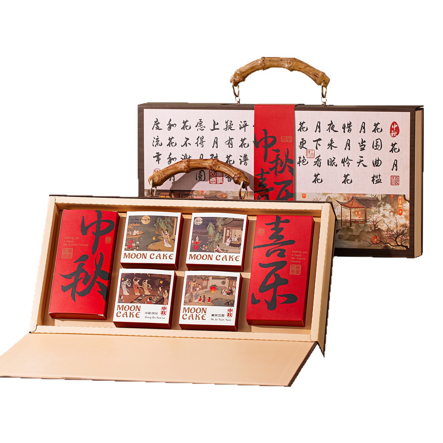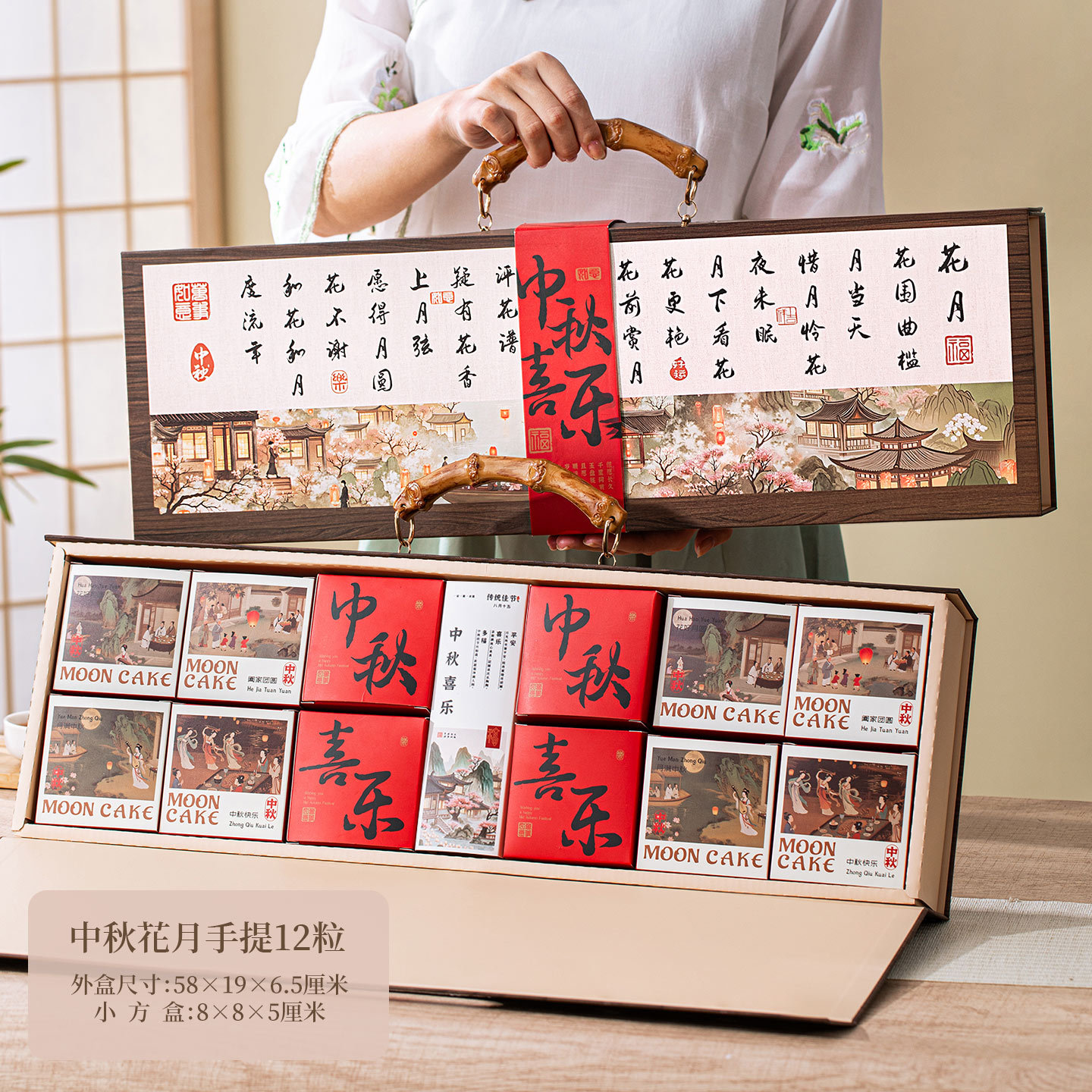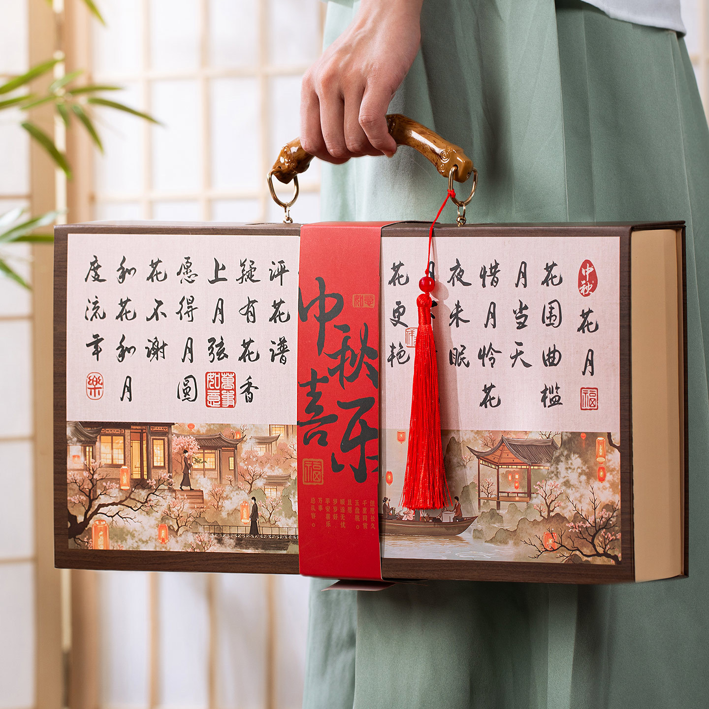 中秋节月饼礼盒包装盒空盒子中式高档手提礼品盒8粒LOGO制定批发