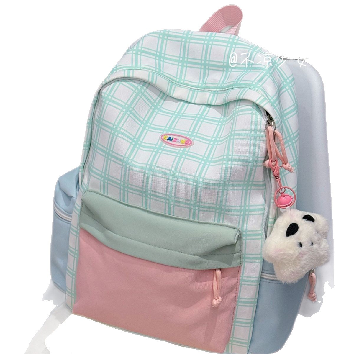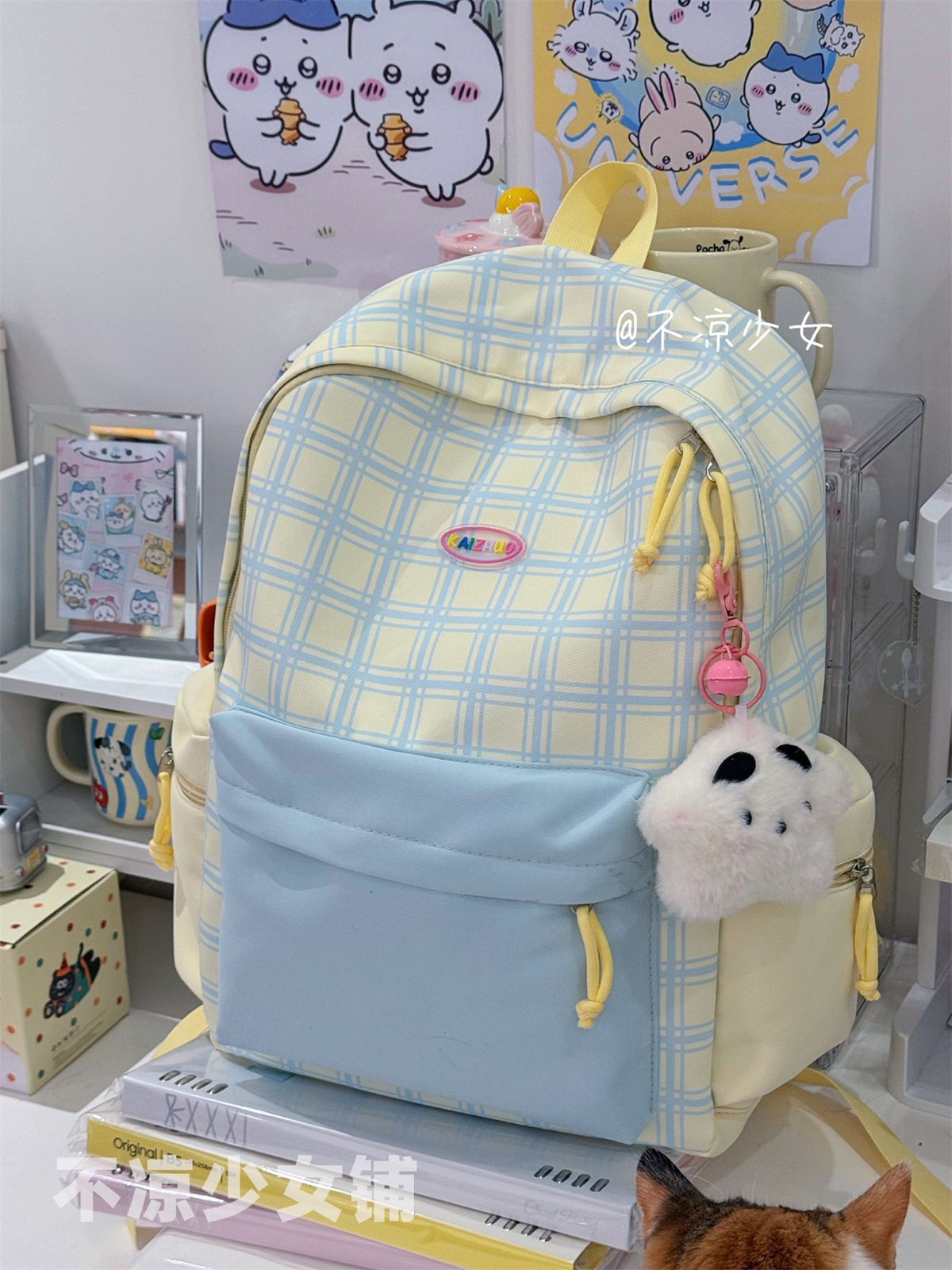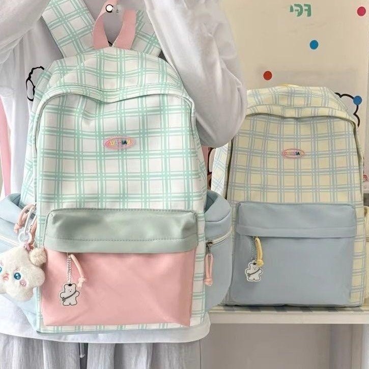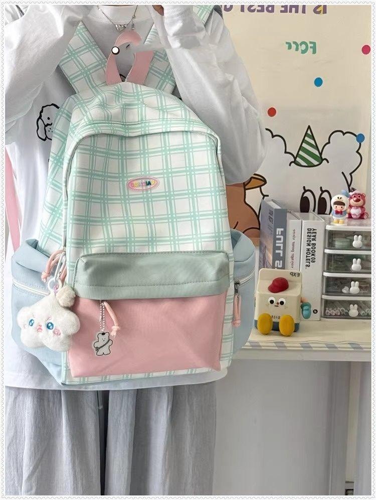 格子书包女学生百搭小清新初高中生双肩包旅游背包潮大容量学院风