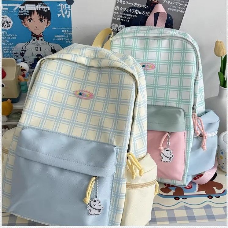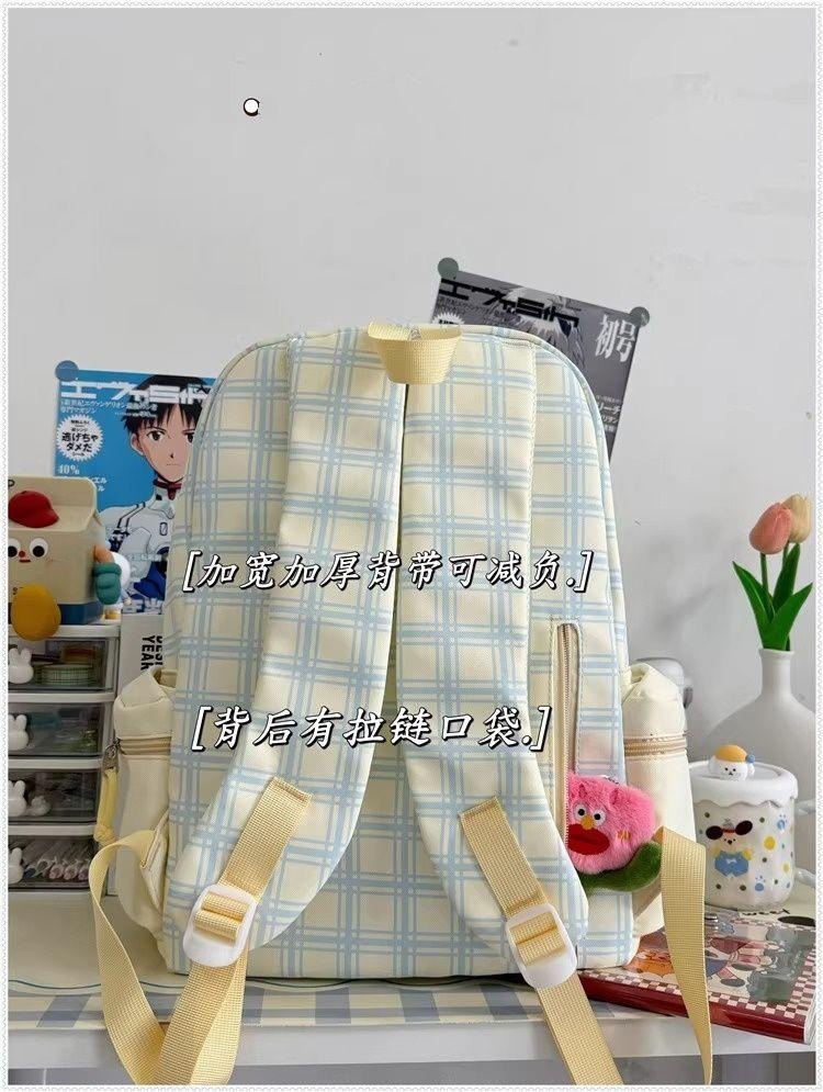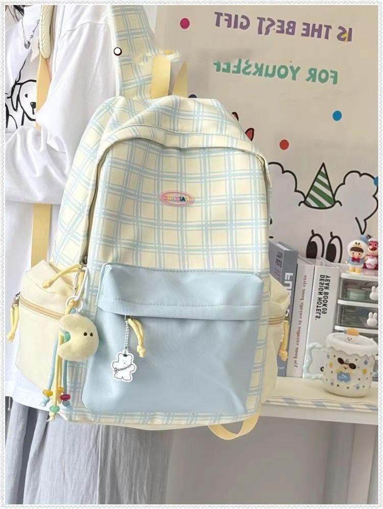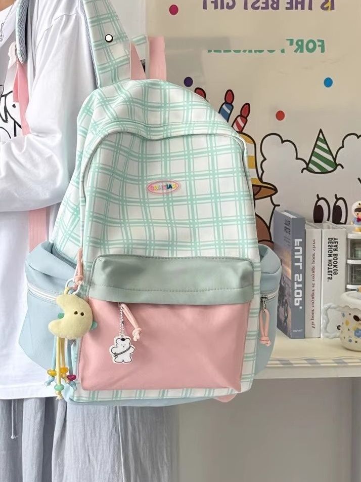 格子书包女学生百搭小清新初高中生双肩包旅游背包潮大容量学院风