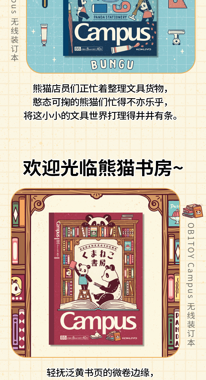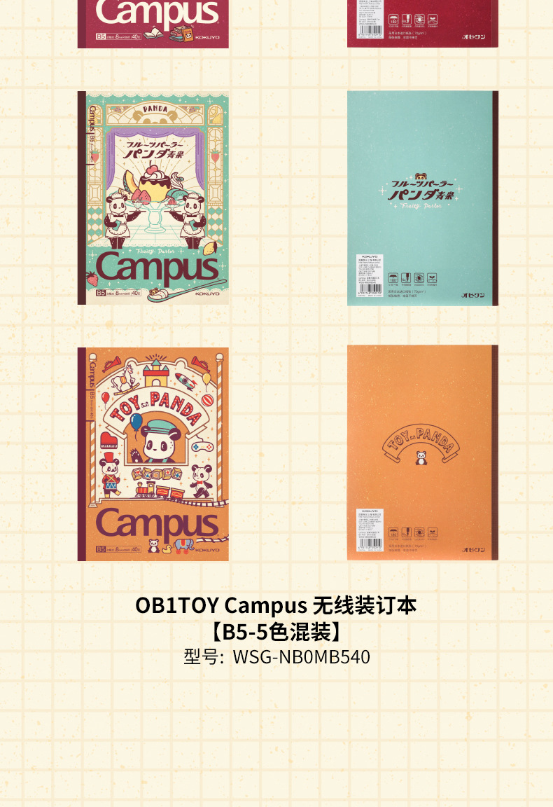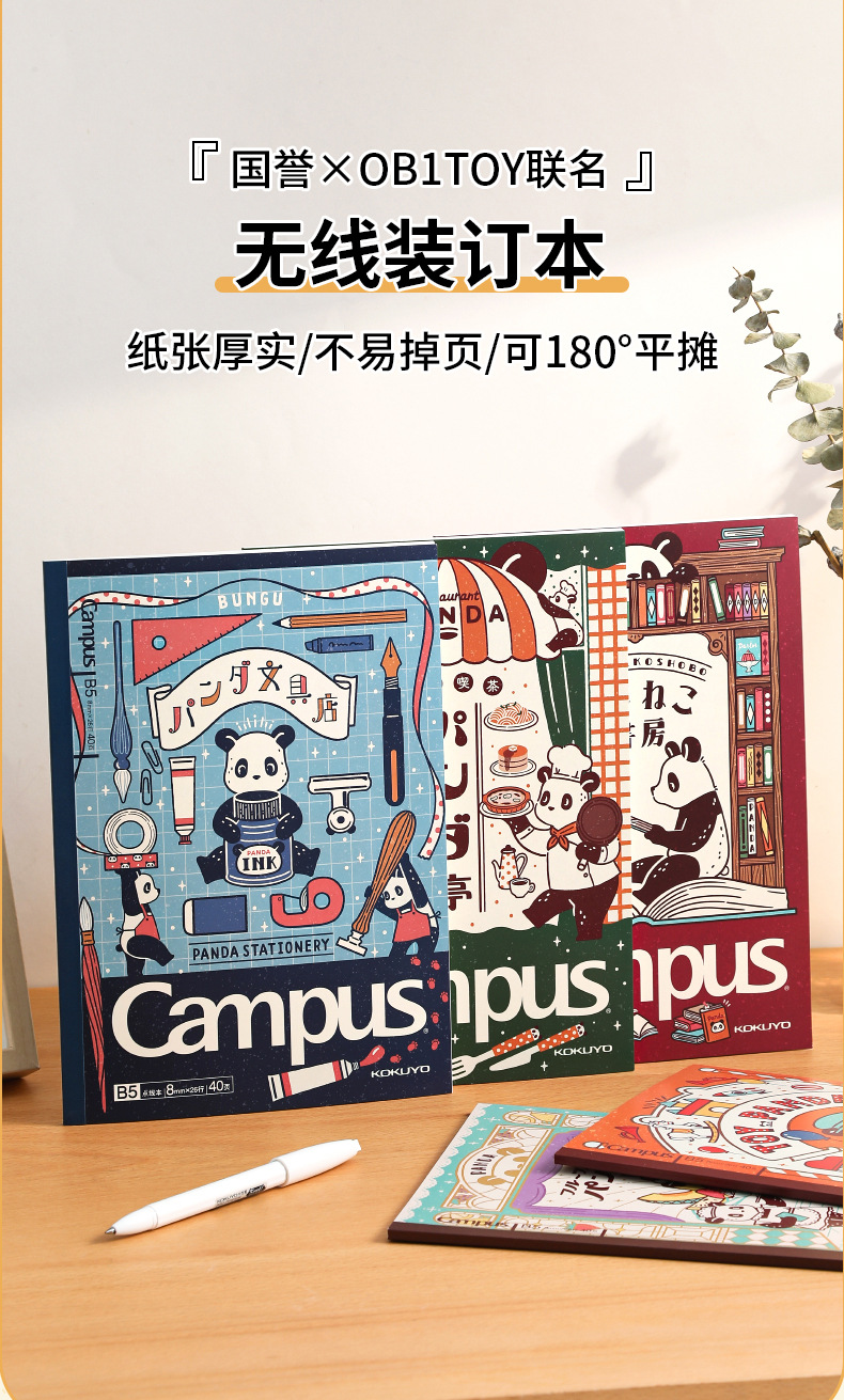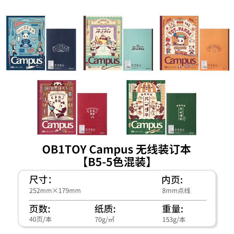 日本KOKUYO国誉Campus无线装订本OB1TOY熊猫联名B5胶装本记事本