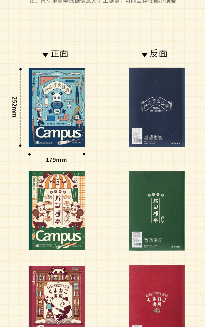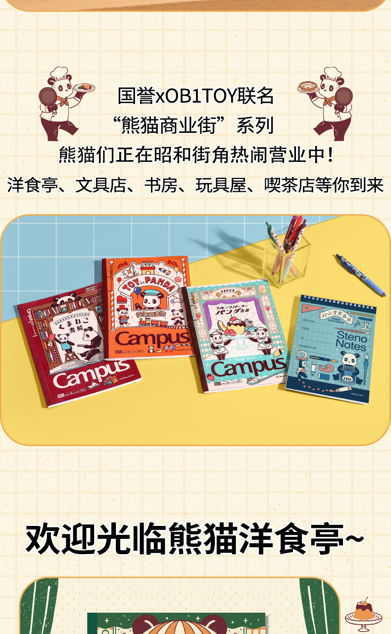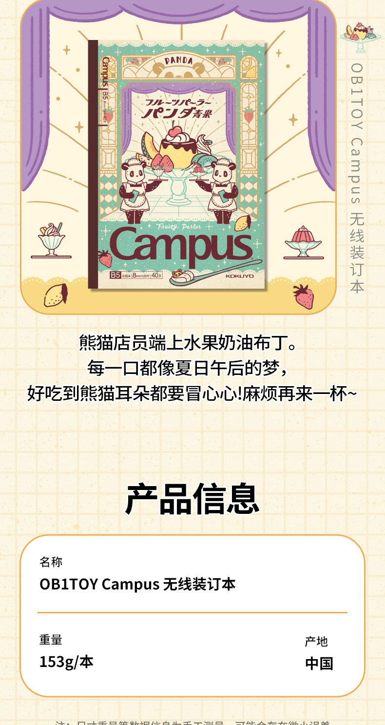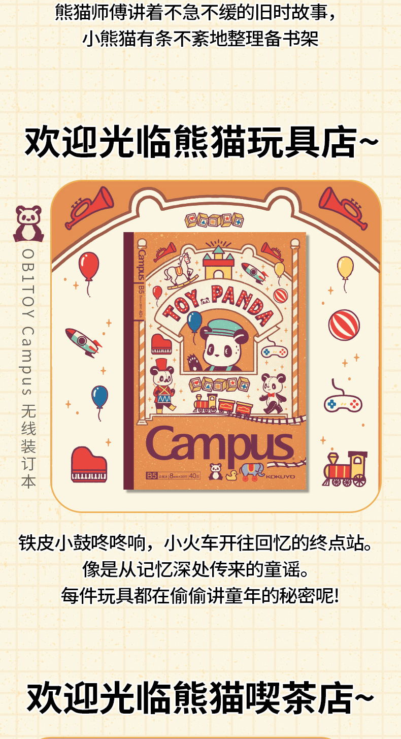 日本KOKUYO国誉Campus无线装订本OB1TOY熊猫联名B5胶装本记事本