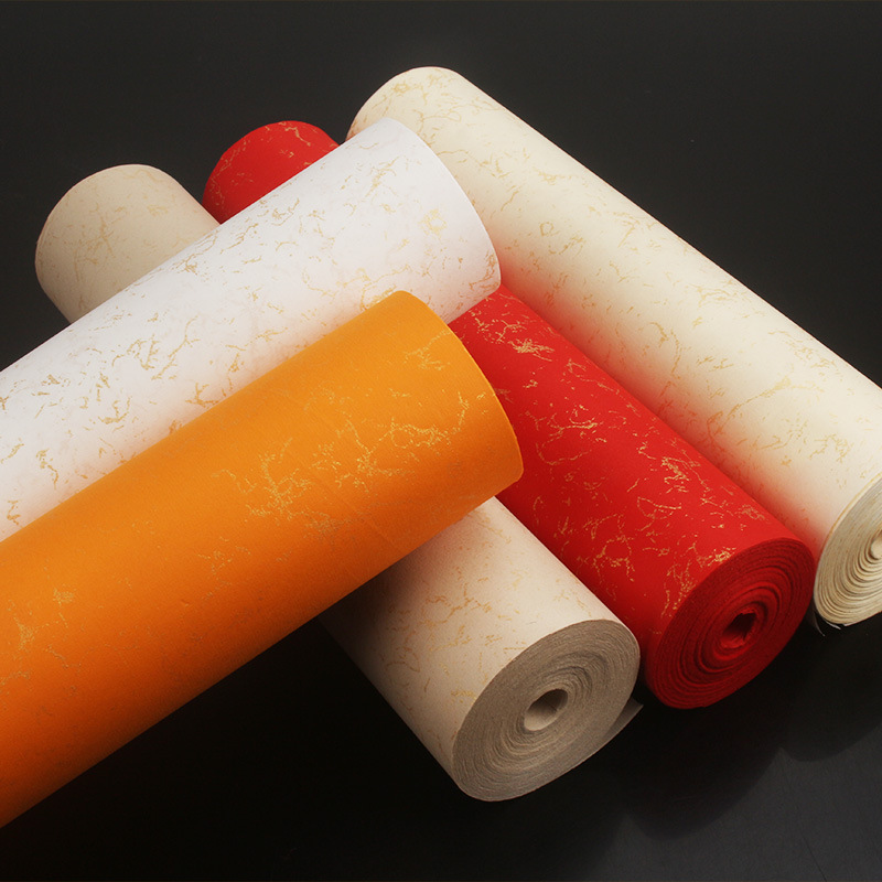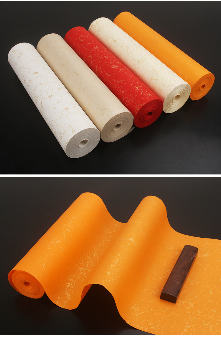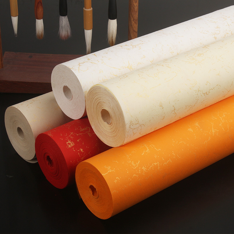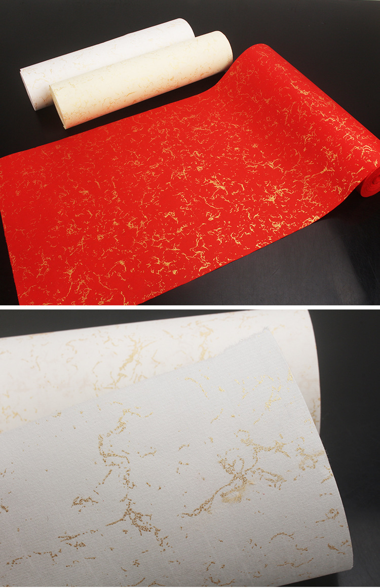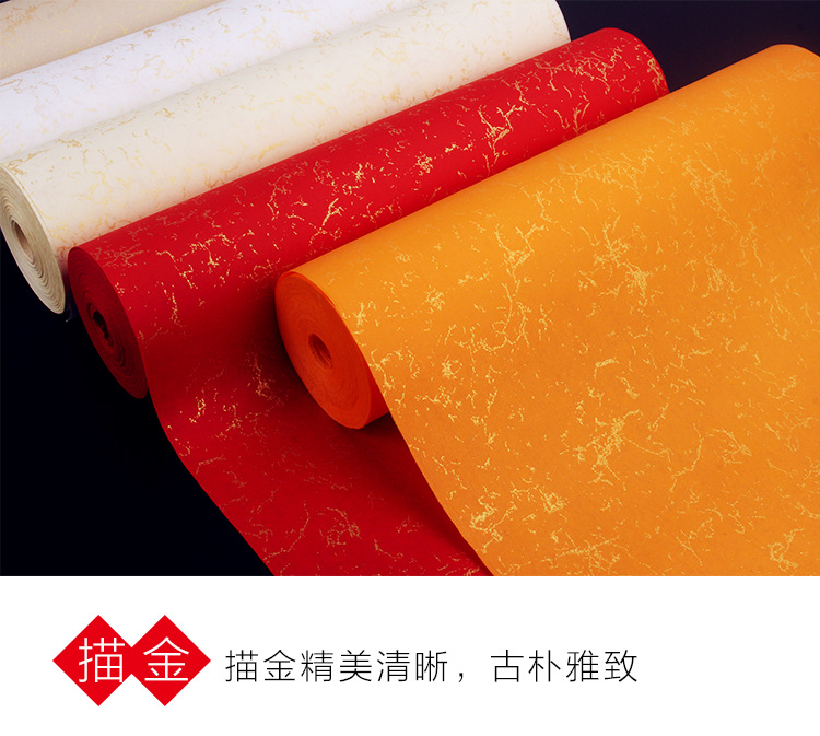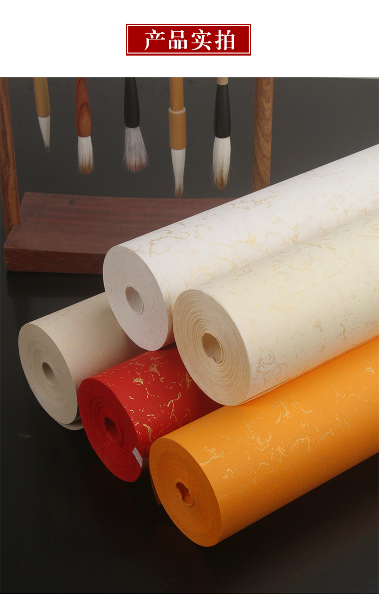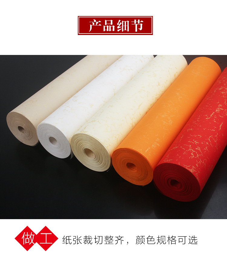 金丝宣纸长卷白色仿古大红描金彩色宣纸书法创作纸半生熟国画纸