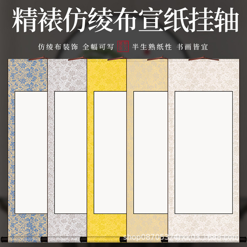 仿棱宣纸空白挂轴卷轴书法字画半生熟卷轴长卷国画书法毛笔字专用