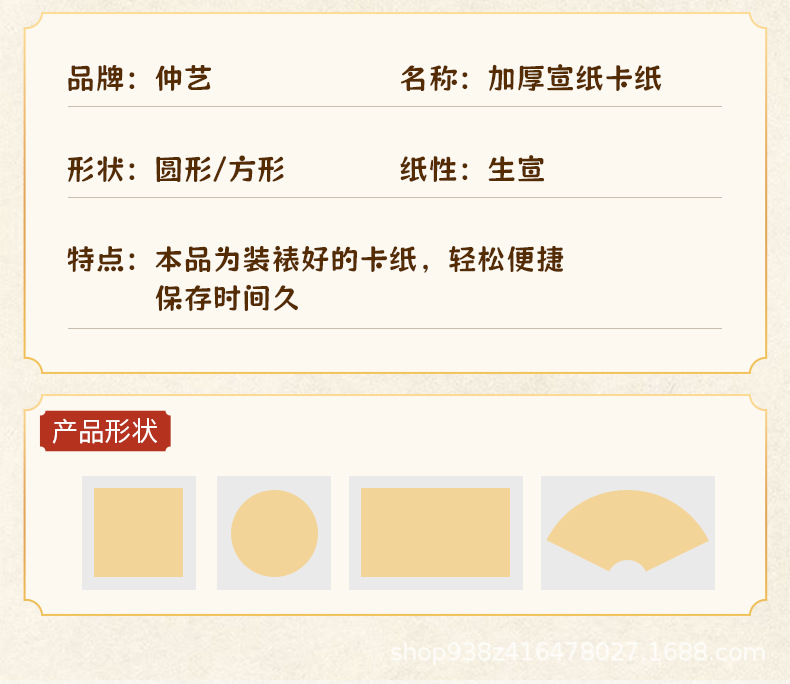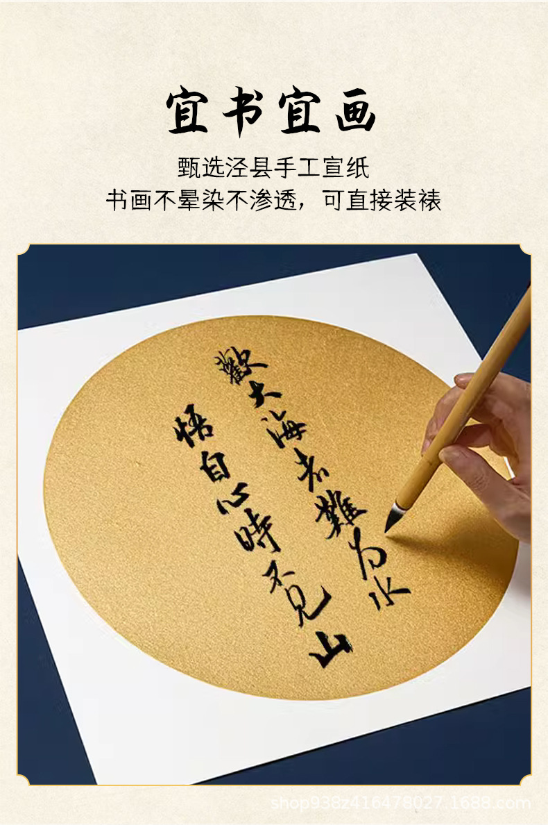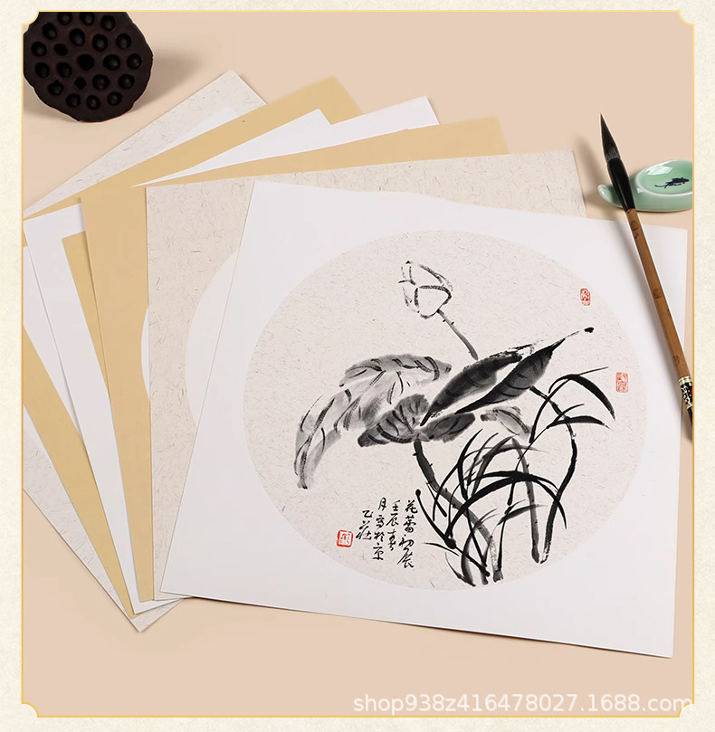 加厚宣纸半生熟卡纸书法国画硬卡宣纸圆形镜片扇形扇面硬卡熟宣卡