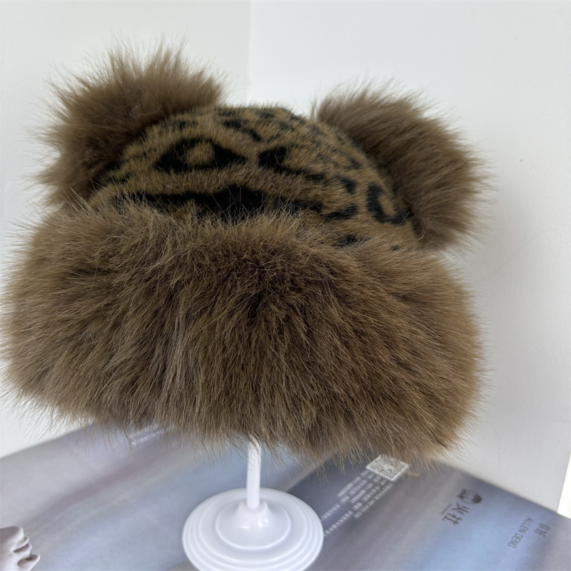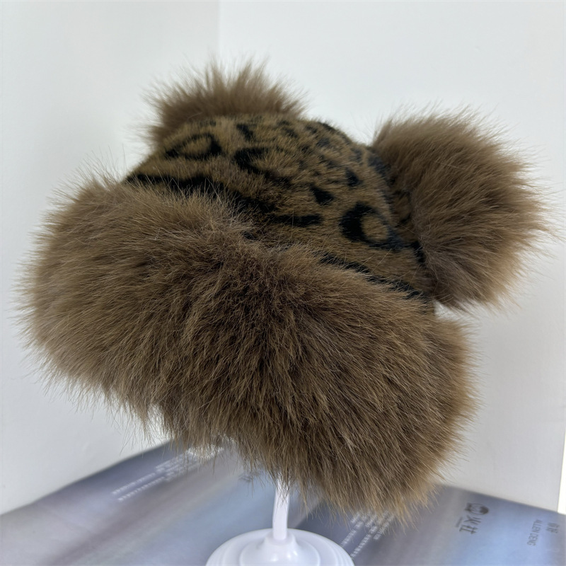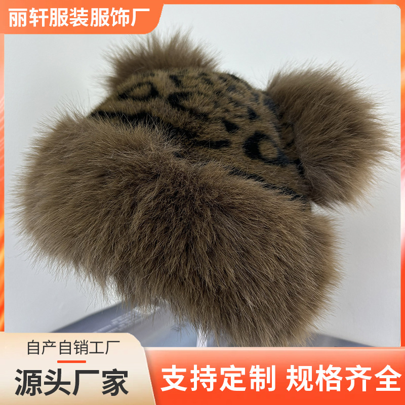 貂毛蒙古帽女秋冬季大头围帽子显脸小保暖护耳套头帽防寒复古风
