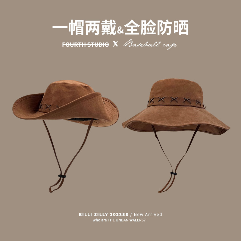 遮阳帽子女大帽檐防晒夏季钓鱼户外登山徒步渔夫帽复古西部牛仔帽
