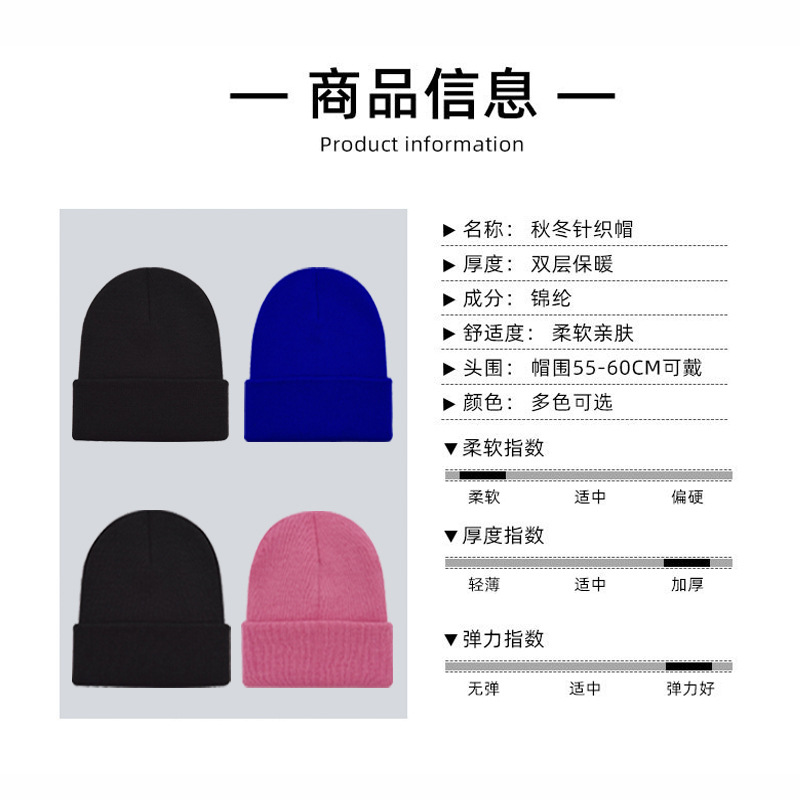 针织帽定制 颜色多选户外护耳保暖套头帽男批发腈纶光板毛线帽女