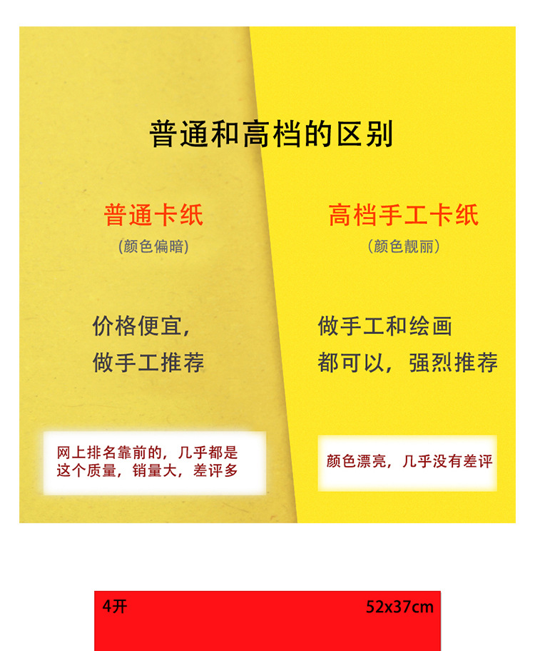 手工4K 8K彩色硬卡纸200g彩色厚手抄报大张4开美术画画纸diy彩纸