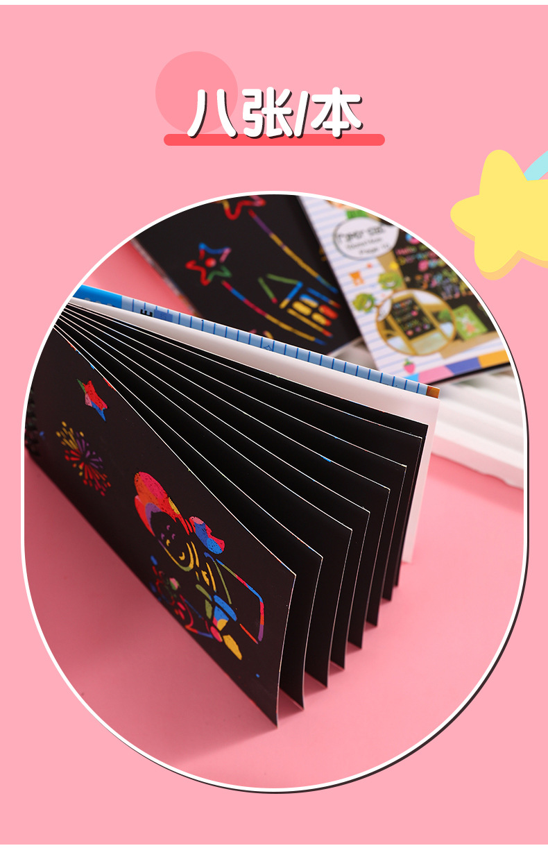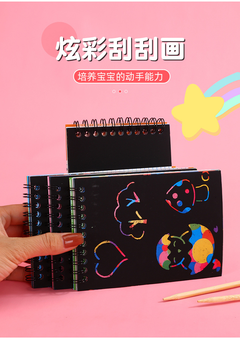 儿童DIY炫彩刮刮画套装创意彩色刮画纸幼儿园趣味美术涂鸦刮画本