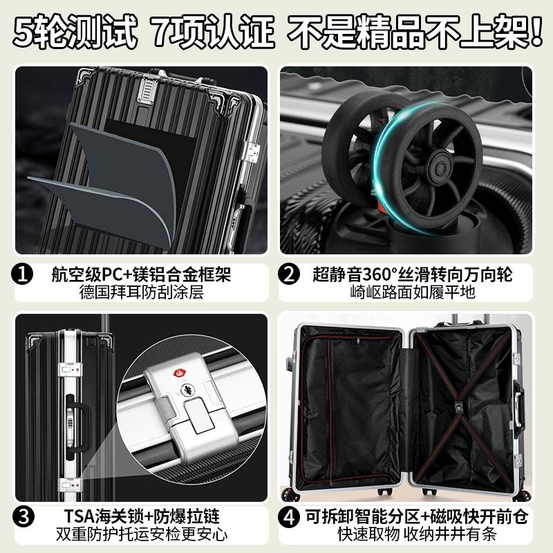 跨境新款铝框行李箱大容量24寸登机箱20寸学生密码拉杆箱男女批发