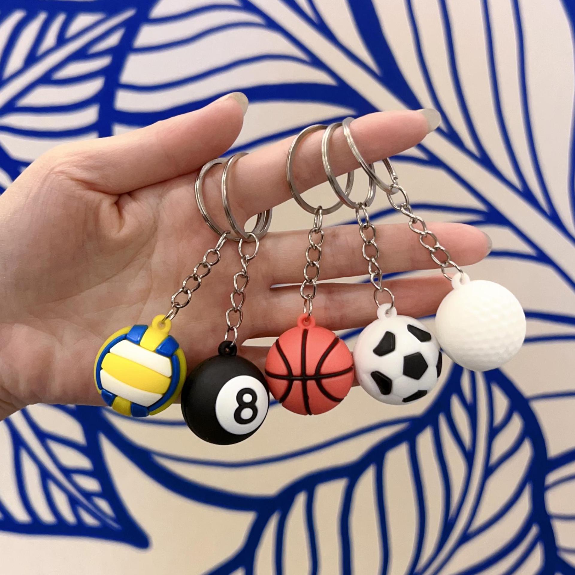 创意仿真pvc钥匙扣立体篮球挂饰足球书包挂件可爱网球卡通台球批