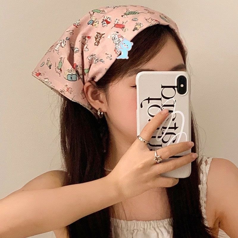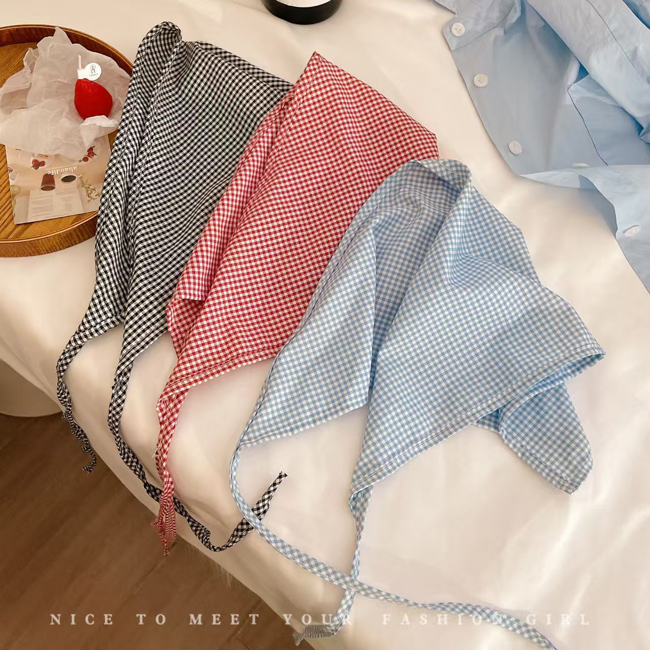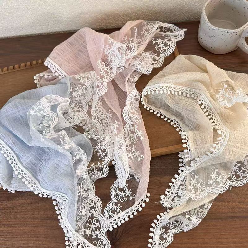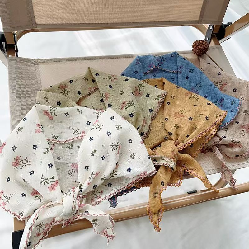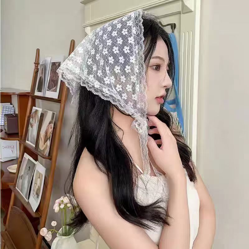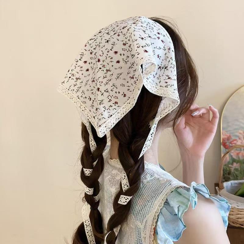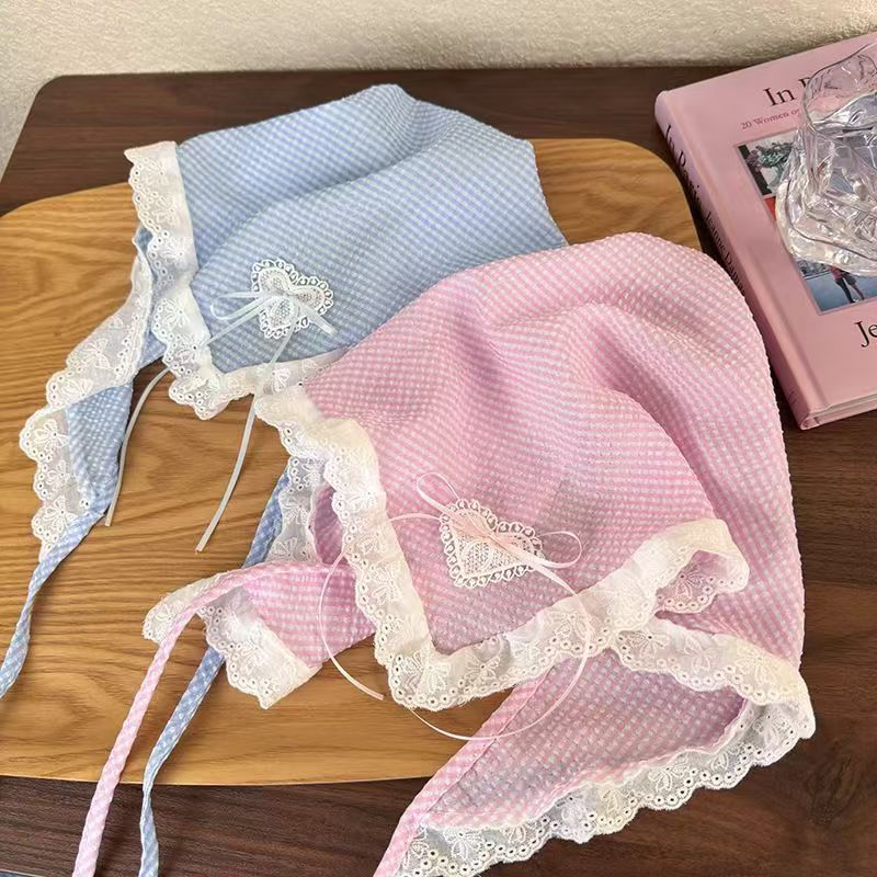 2025新款田园风发饰甜美气质爆款蕾丝三角巾发带复古格子飘带发箍