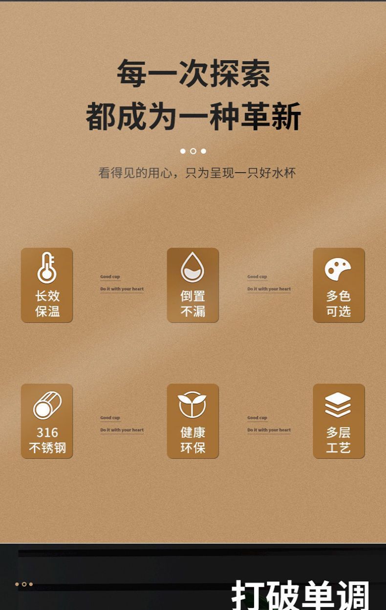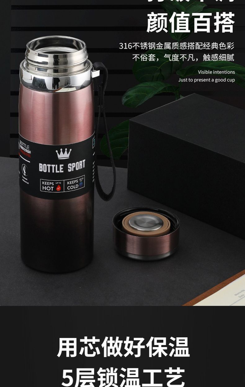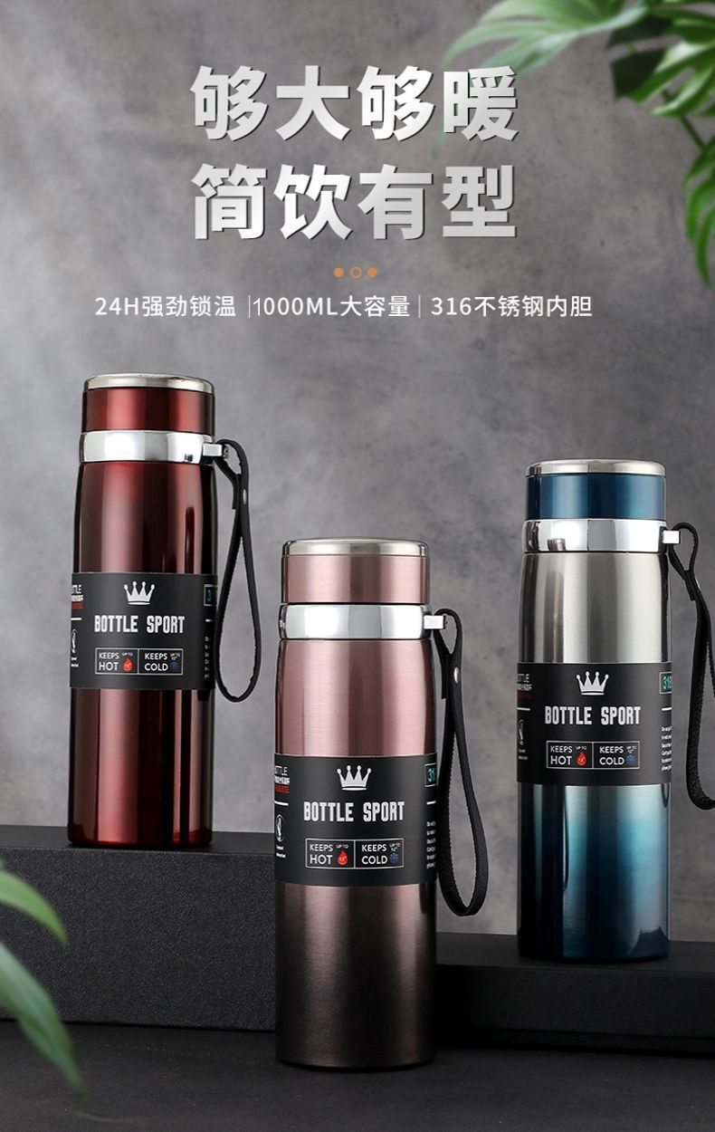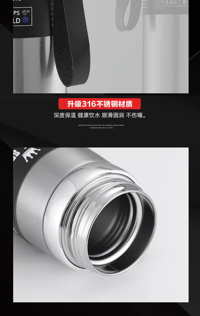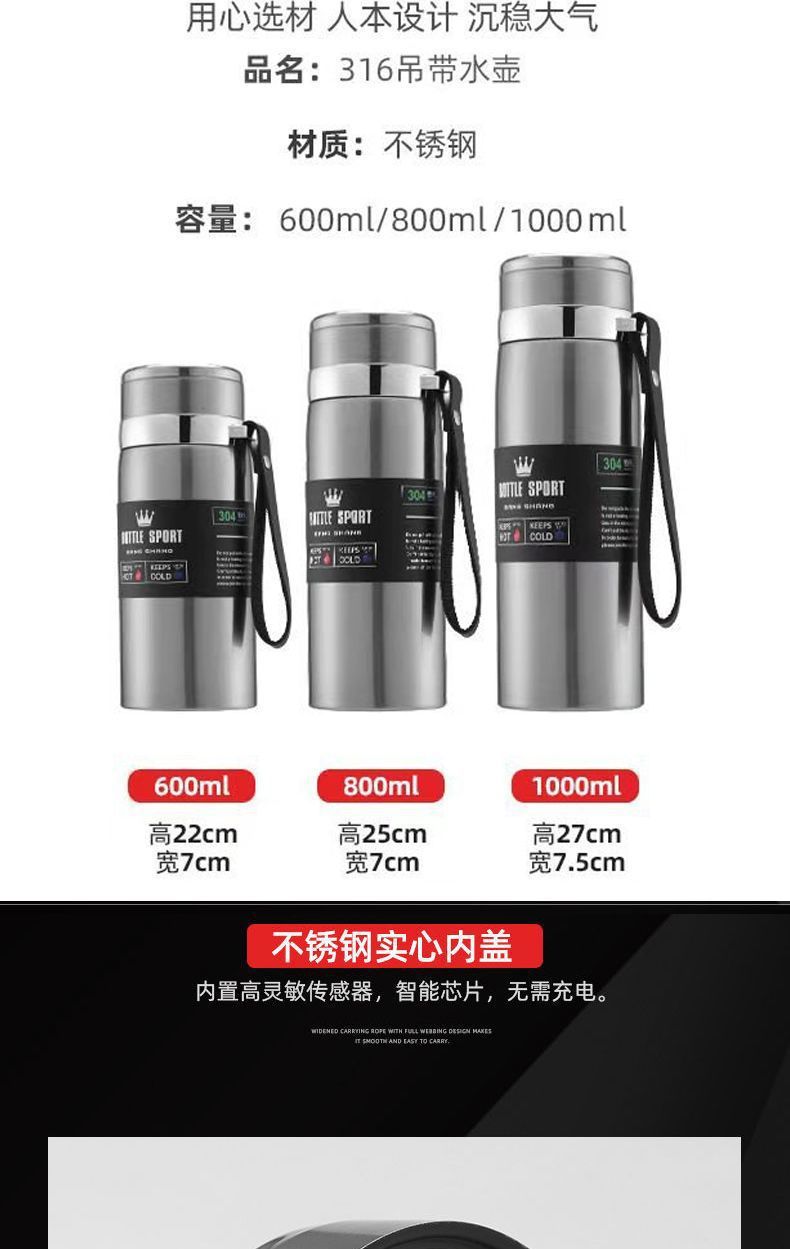 吊带壶热销316不锈钢保温杯大毫升户外运动家用礼品保温水杯定 制