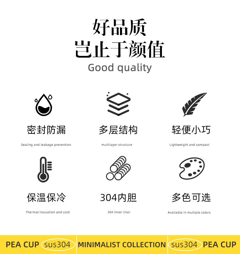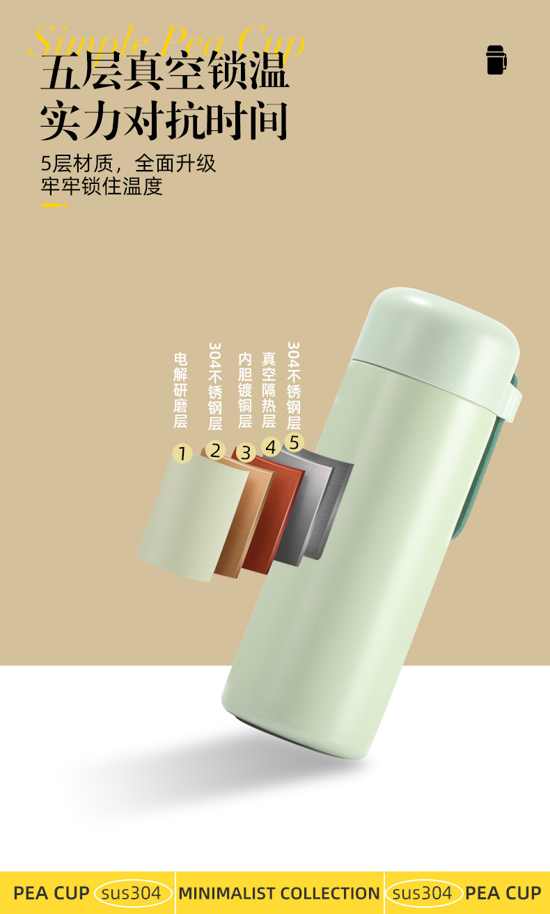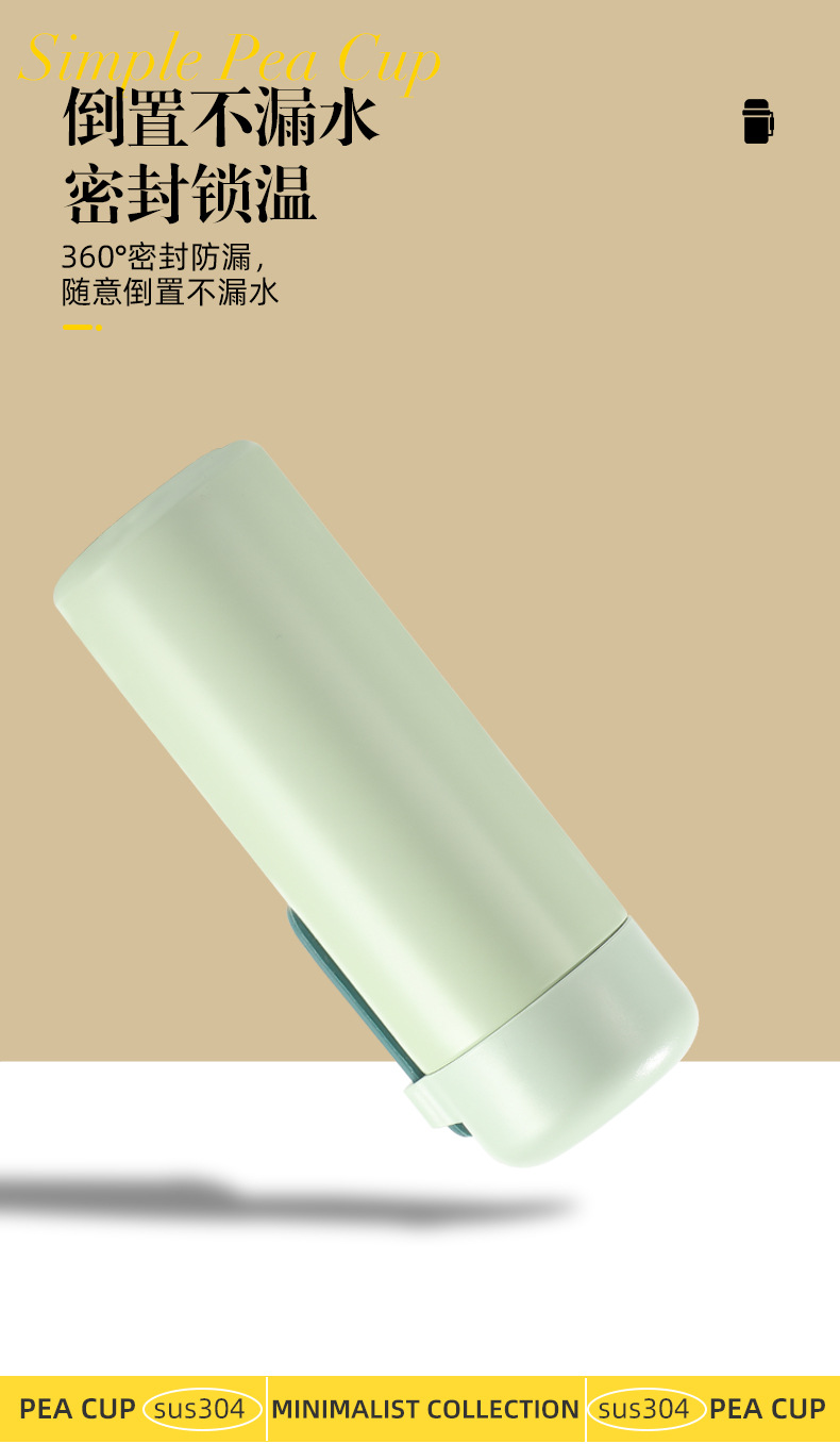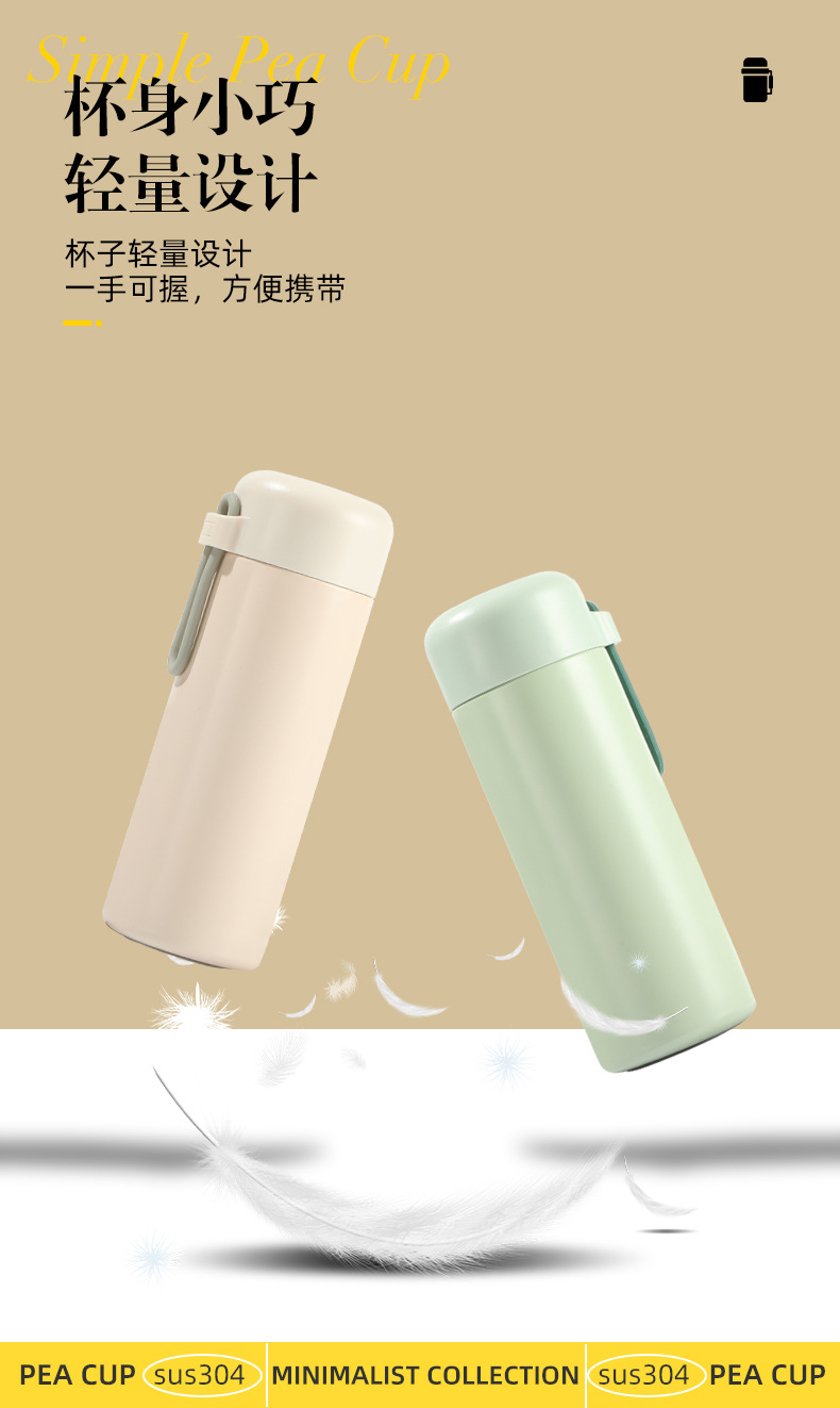 爆款高颜值提绳豌豆杯便携式口袋杯304不锈钢保温杯子礼品杯批发