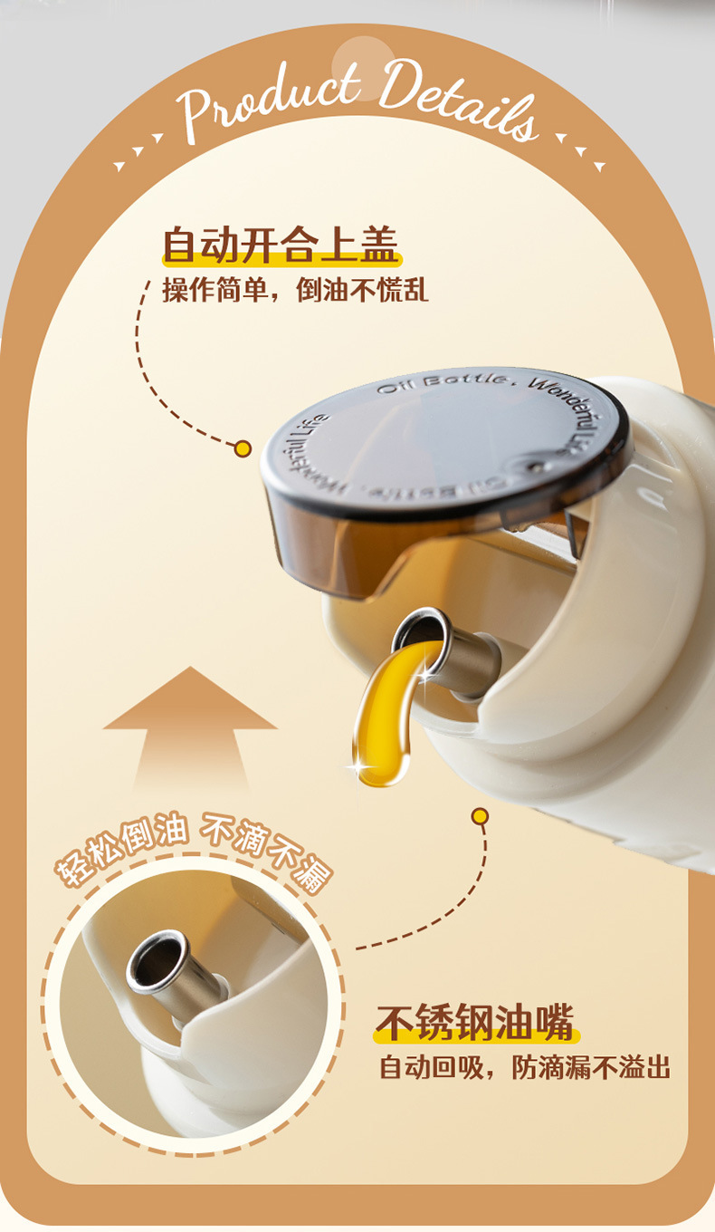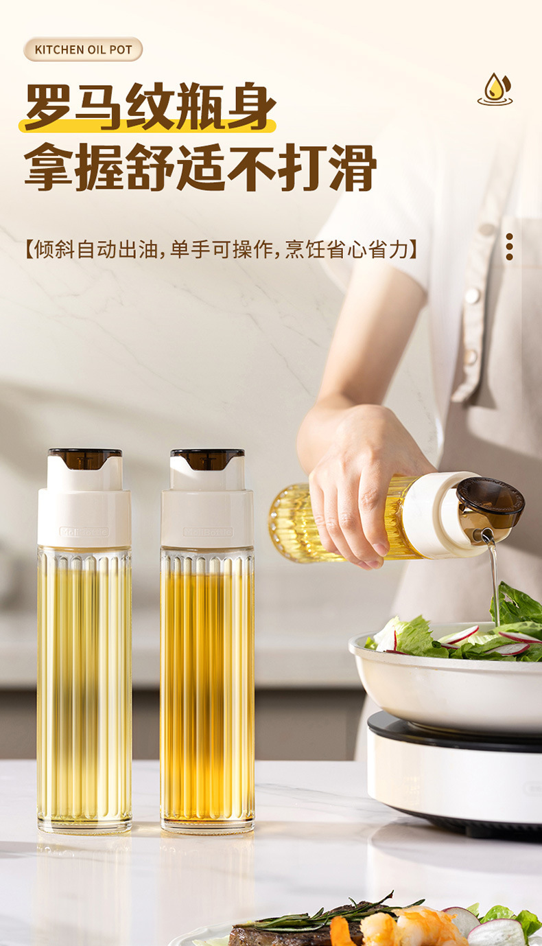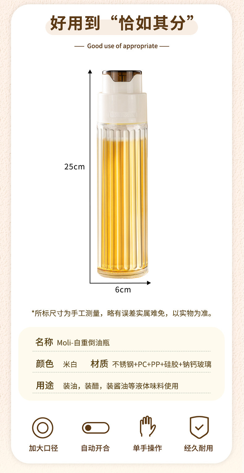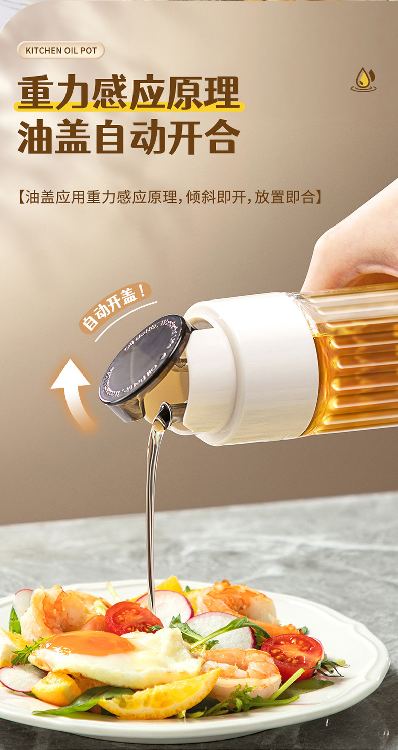 玻璃厨房油壶不锈钢油嘴自动开合不挂油 不锈钢304重力油瓶酱料瓶
